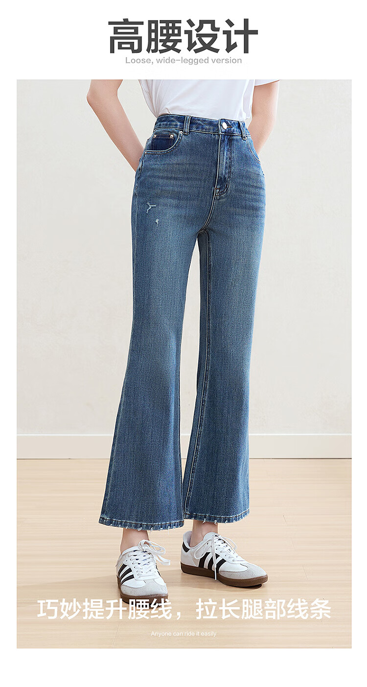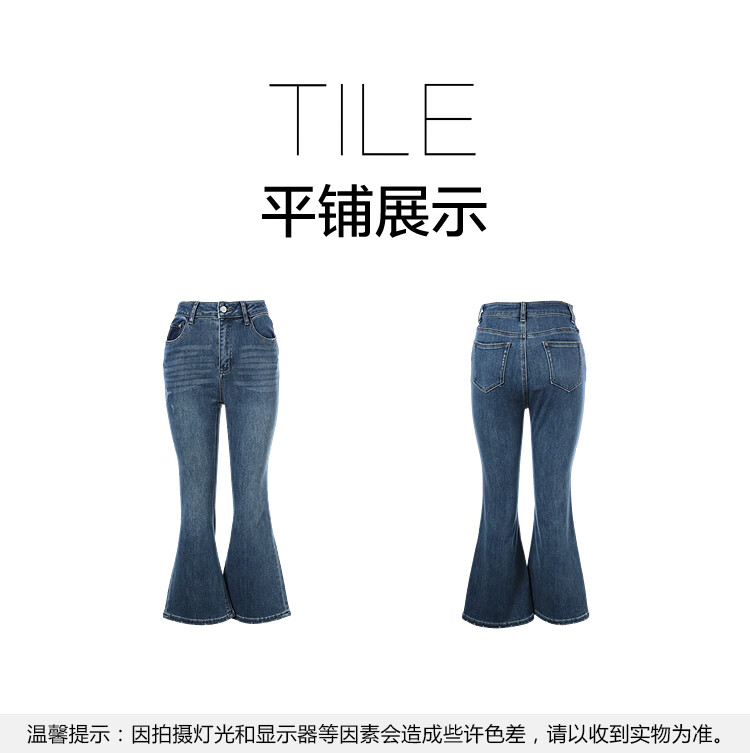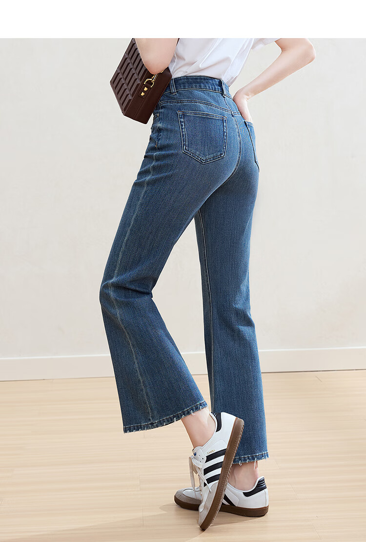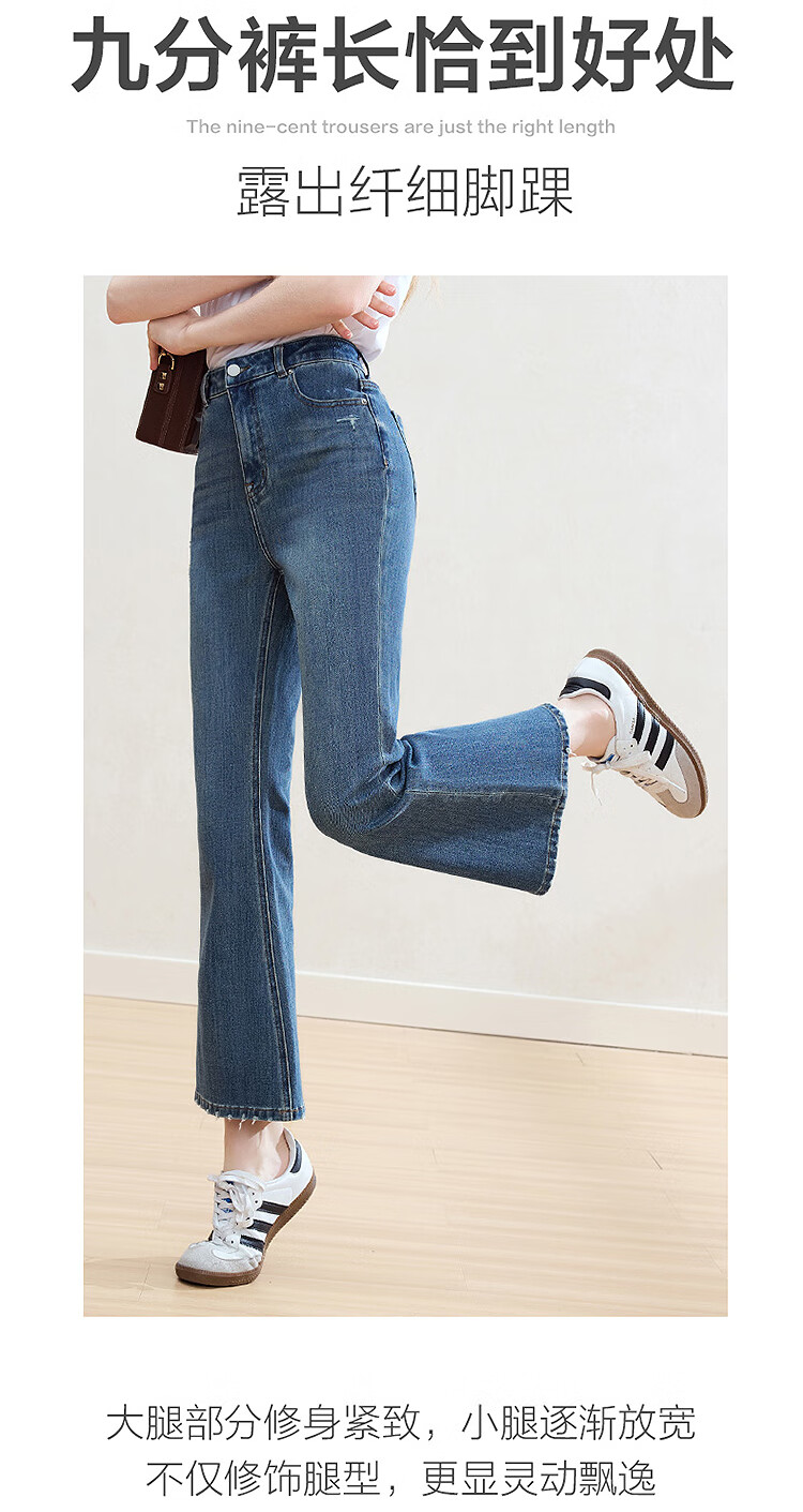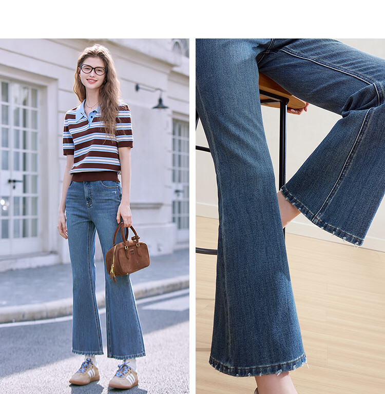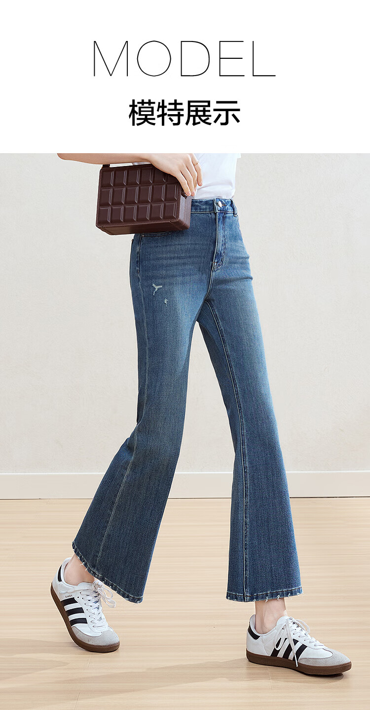 百图betu女装2025春夏新款牛仔裤裱袋撞色高腰九分喇叭裤裤子2502T68 牛仔色 L