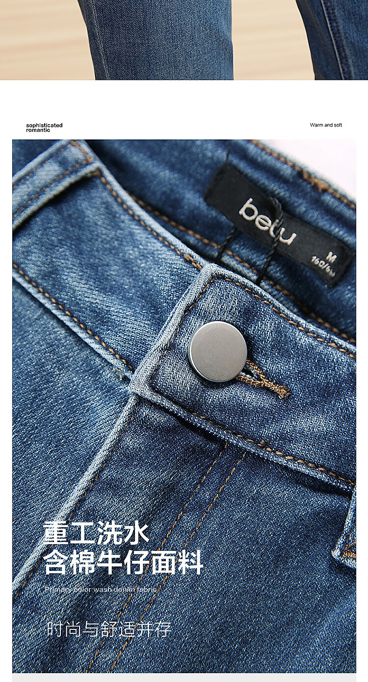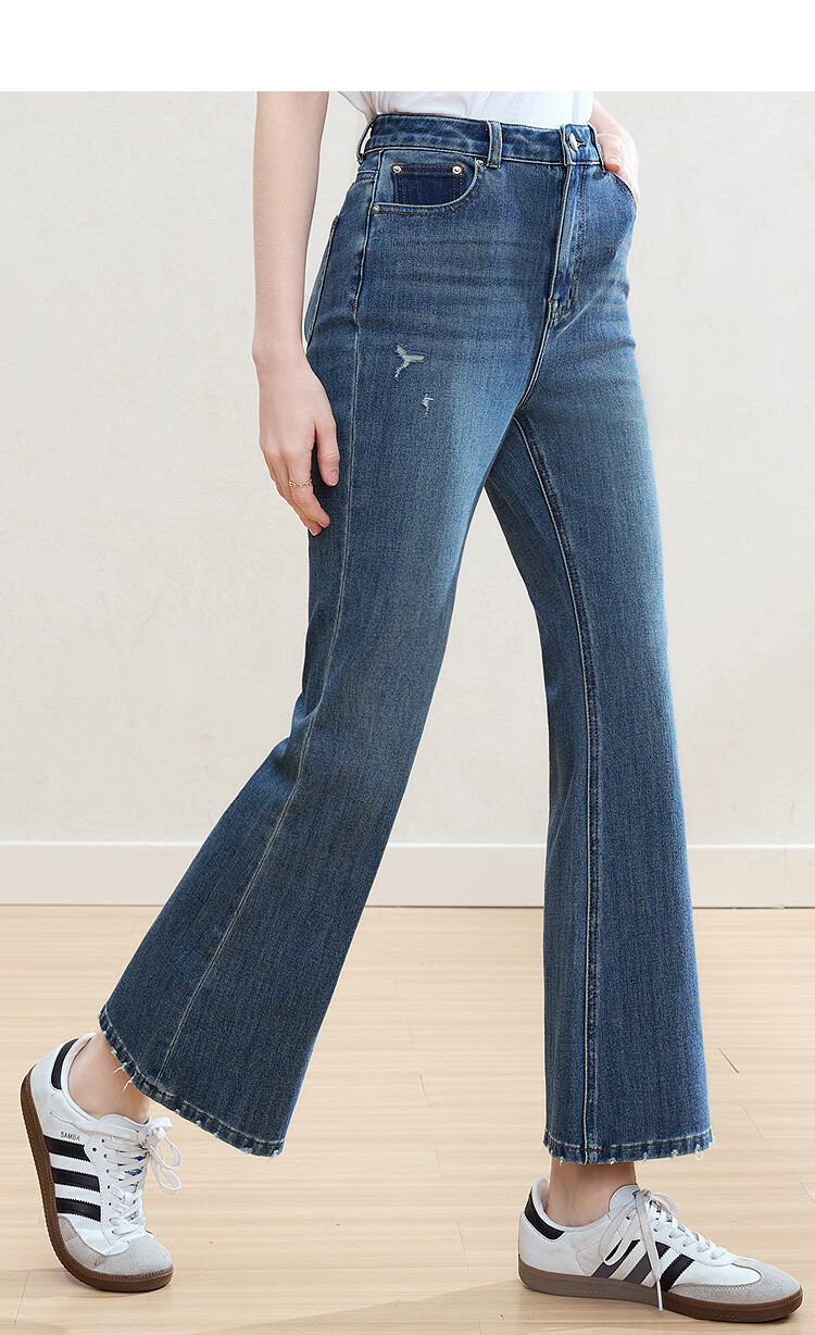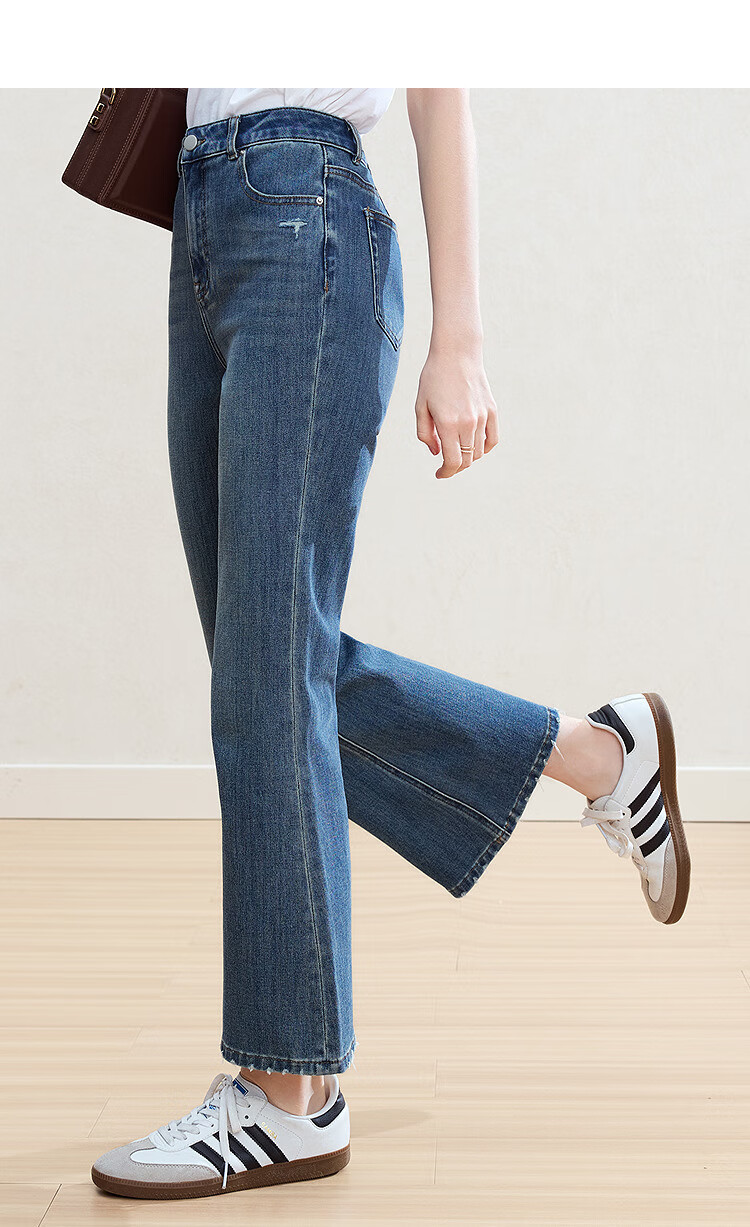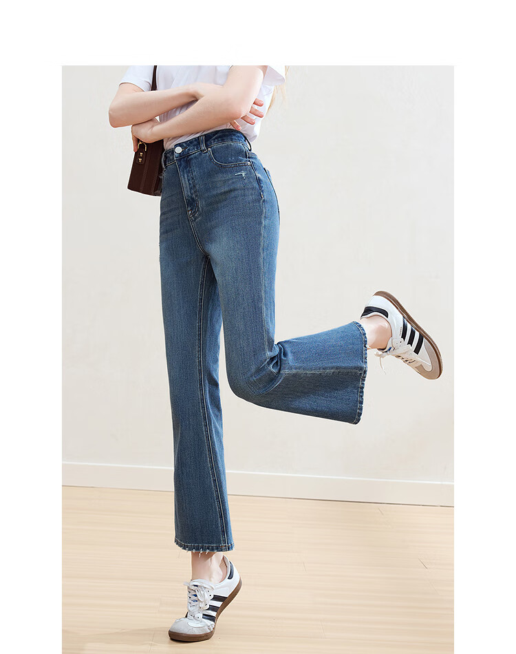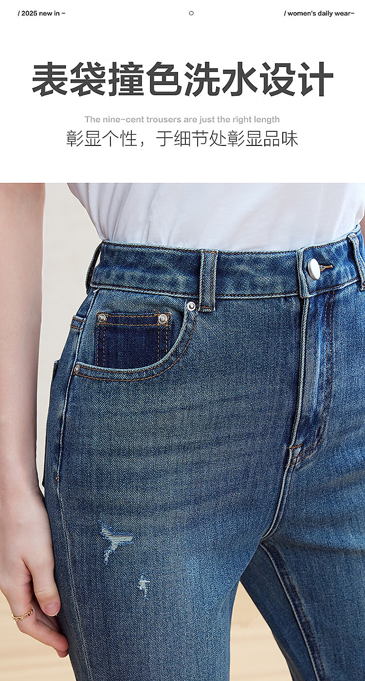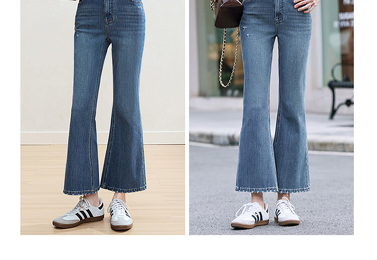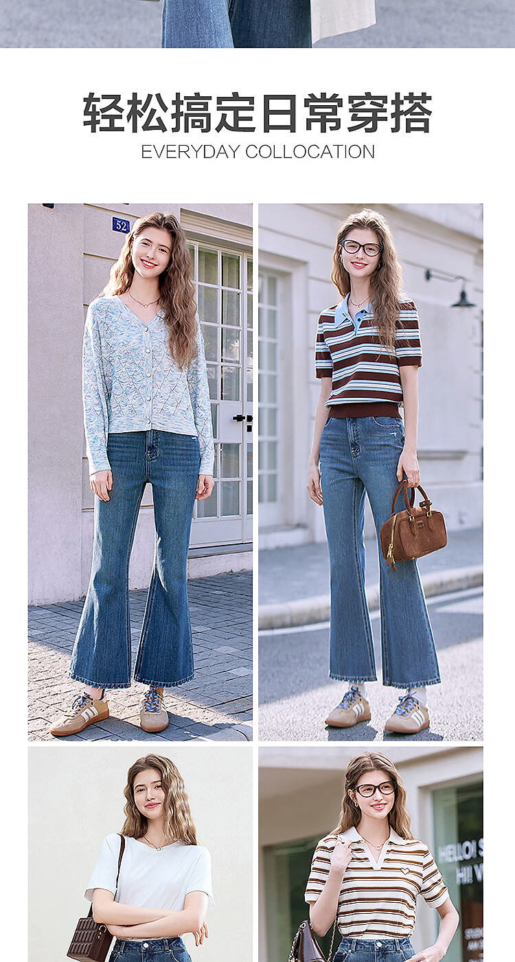 百图betu女装2025春夏新款牛仔裤裱袋撞色高腰九分喇叭裤裤子2502T68 牛仔色 L