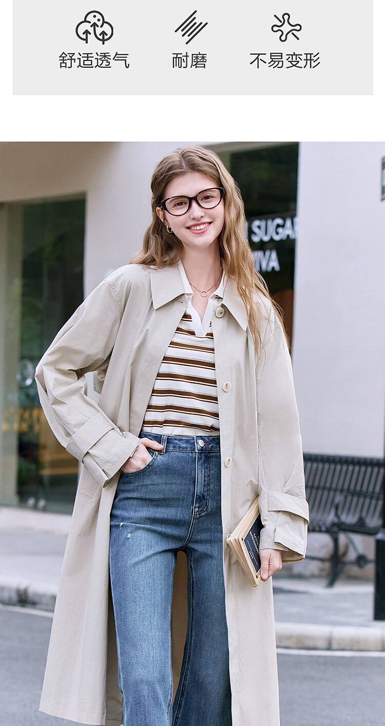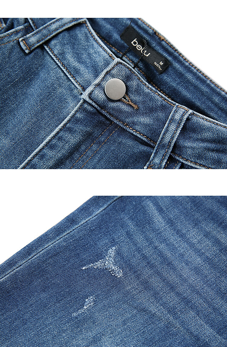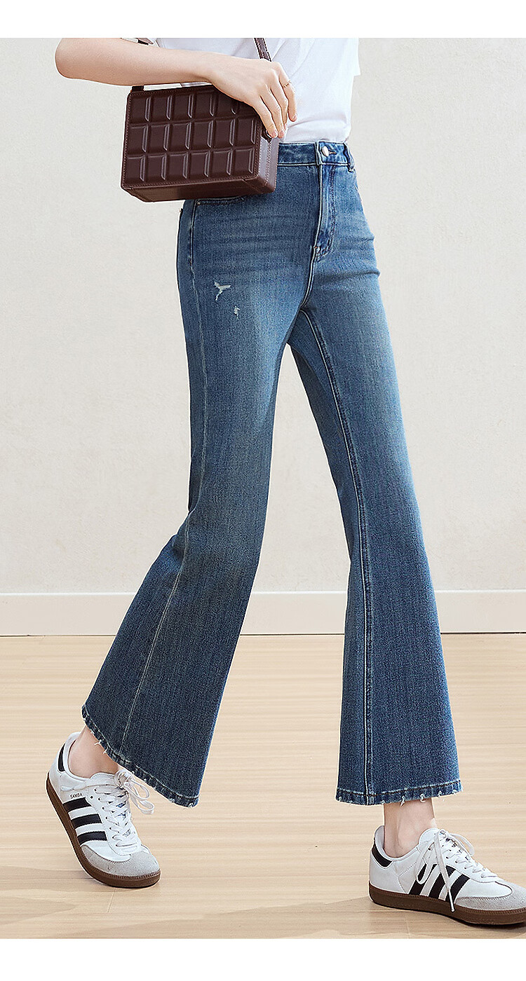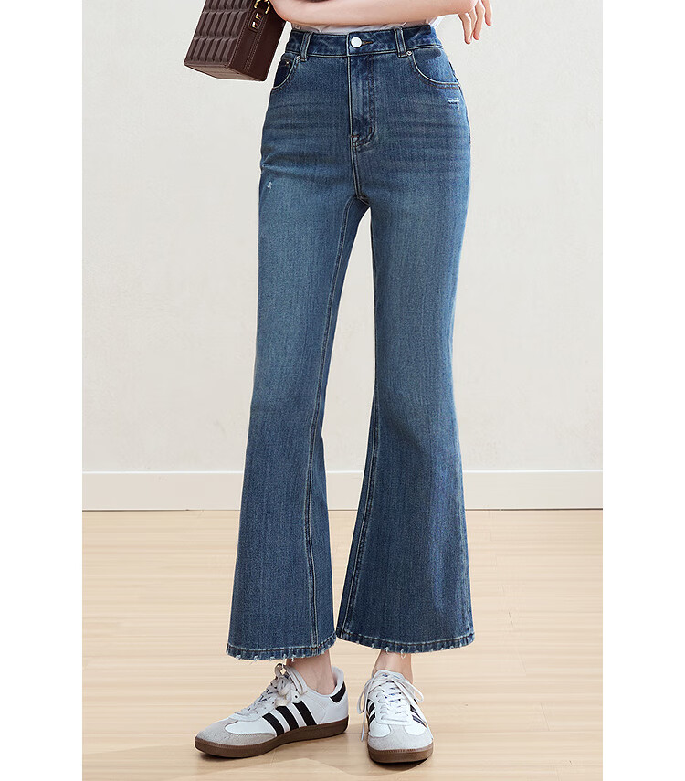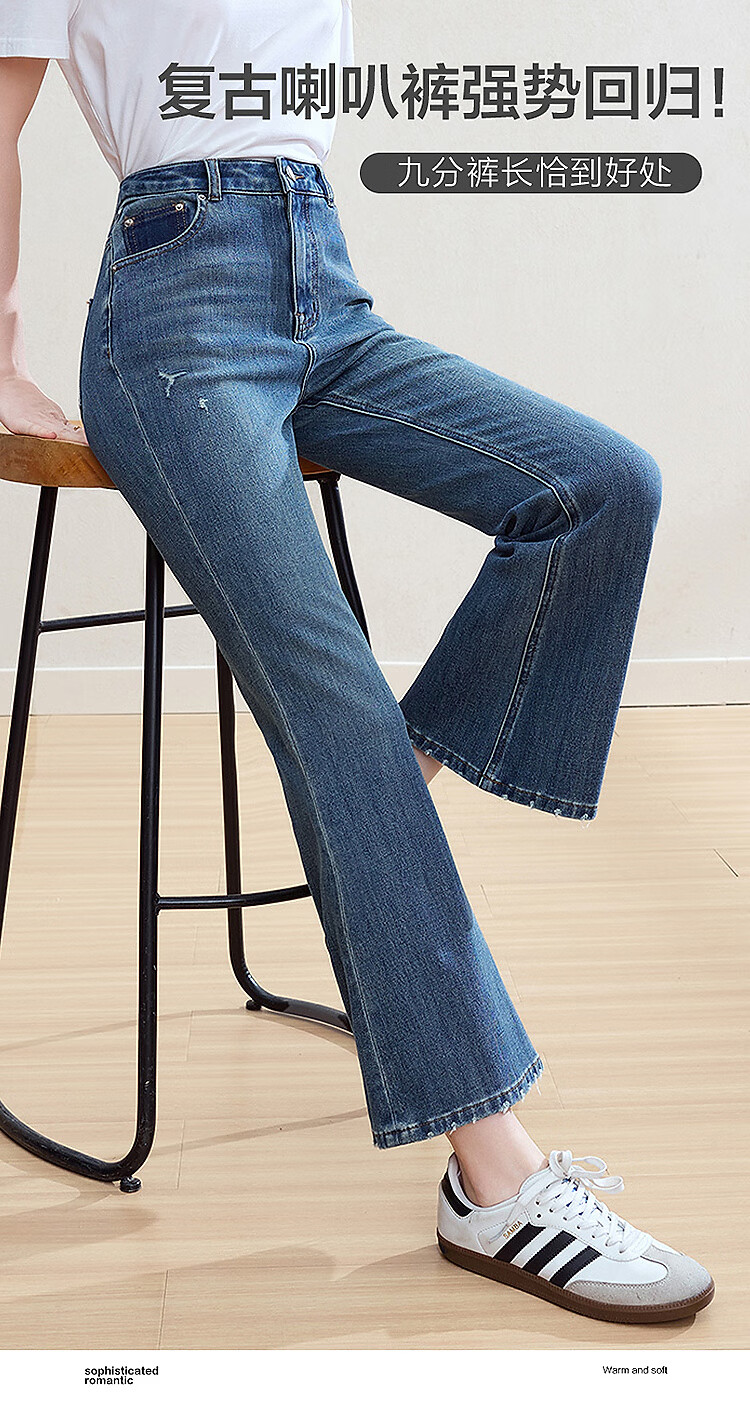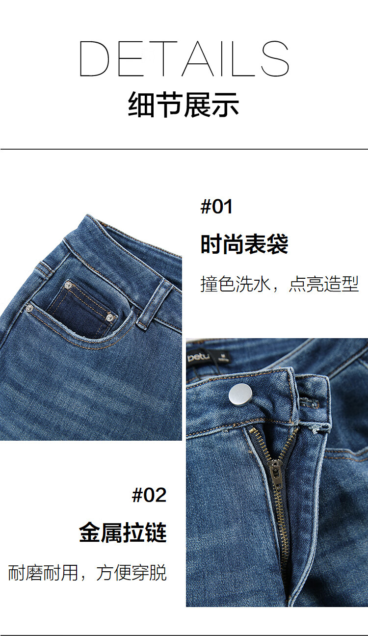 百图betu女装2025春夏新款牛仔裤裱袋撞色高腰九分喇叭裤裤子2502T68 牛仔色 L