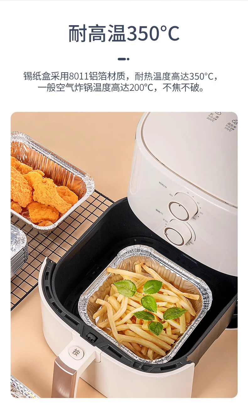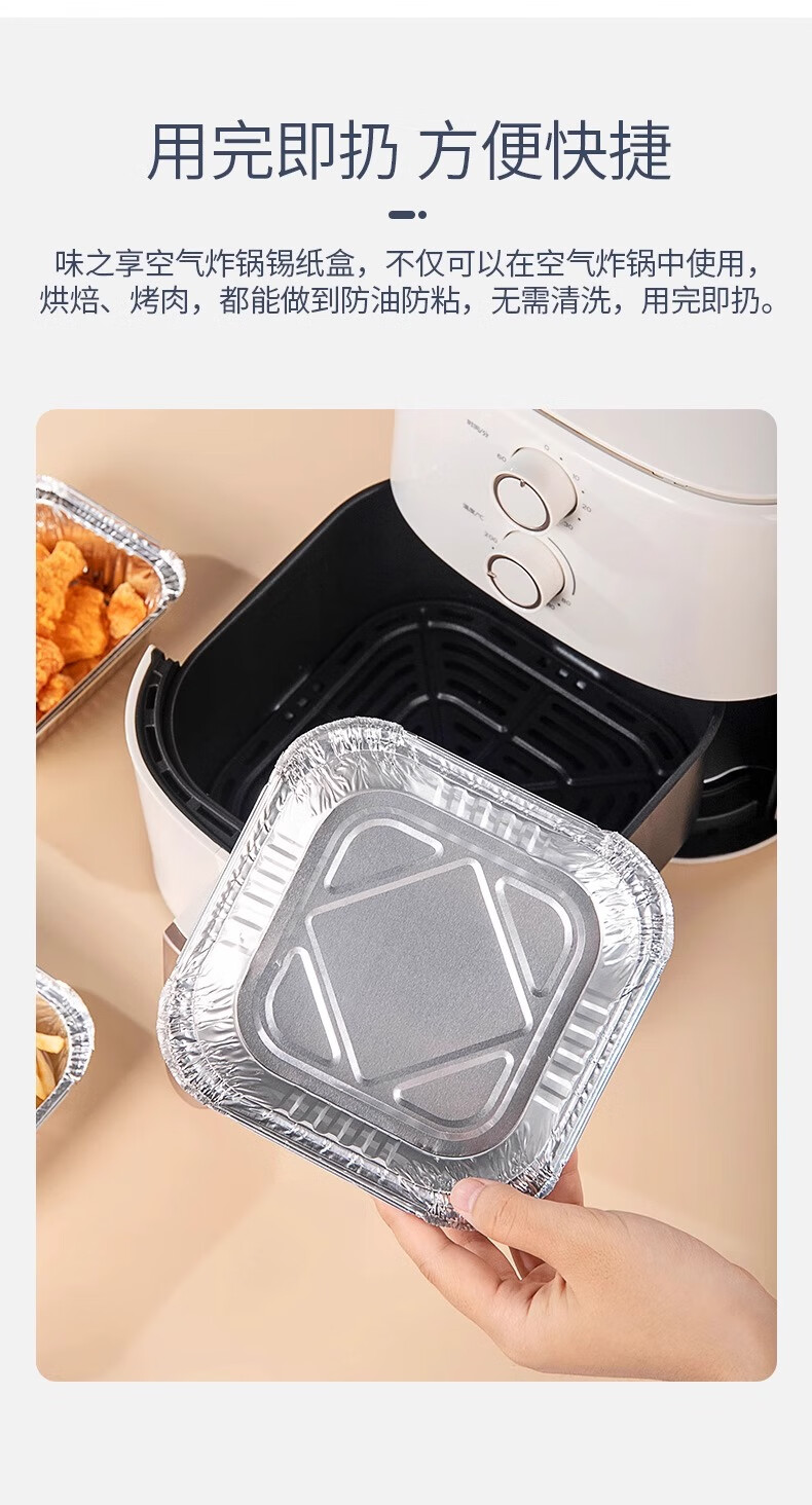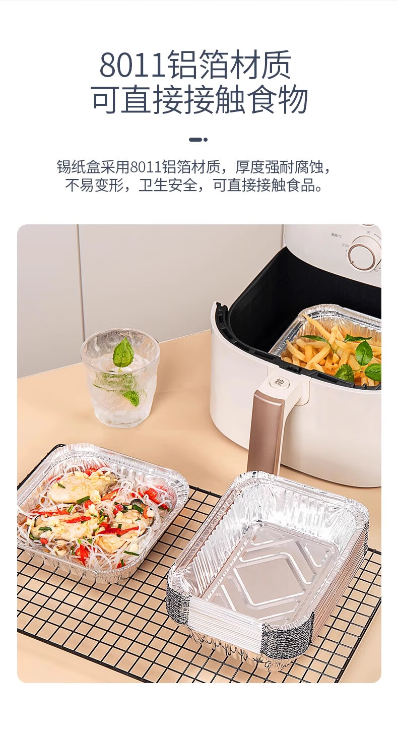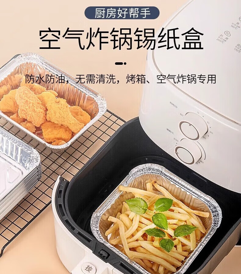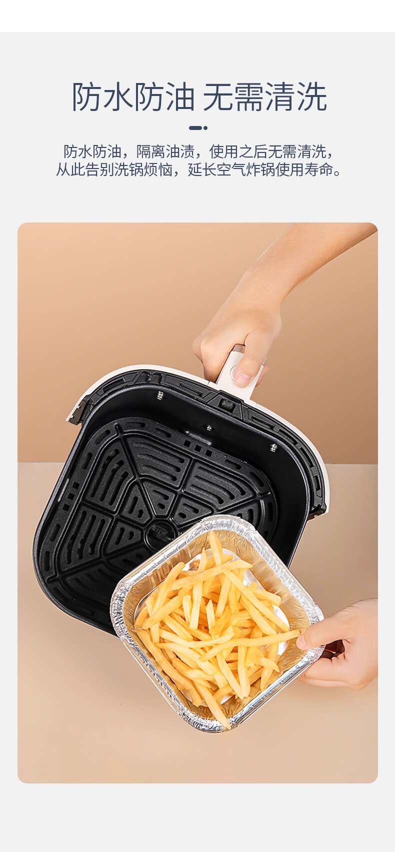 空气炸锅专用纸锡纸盘方形烧烤箱铝箔盒家用烘焙吸油纸烤盘锡纸碗 【中号宽18.5cm】4-6L锅用:30个