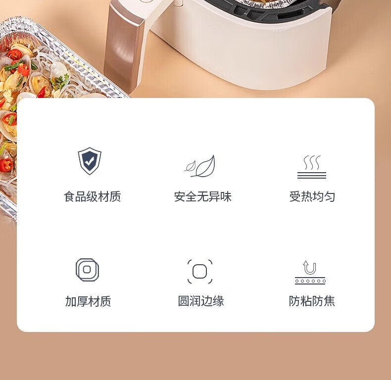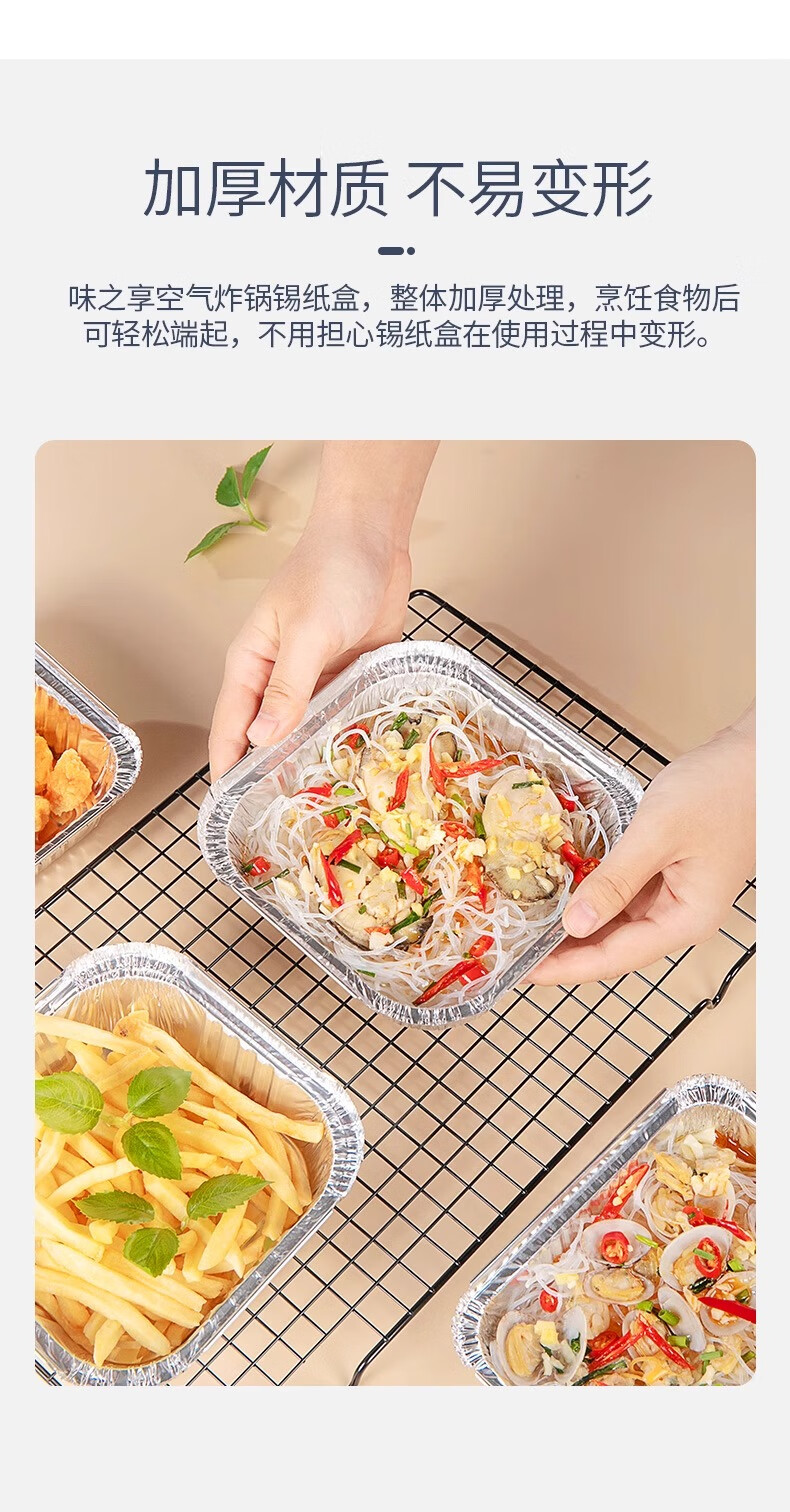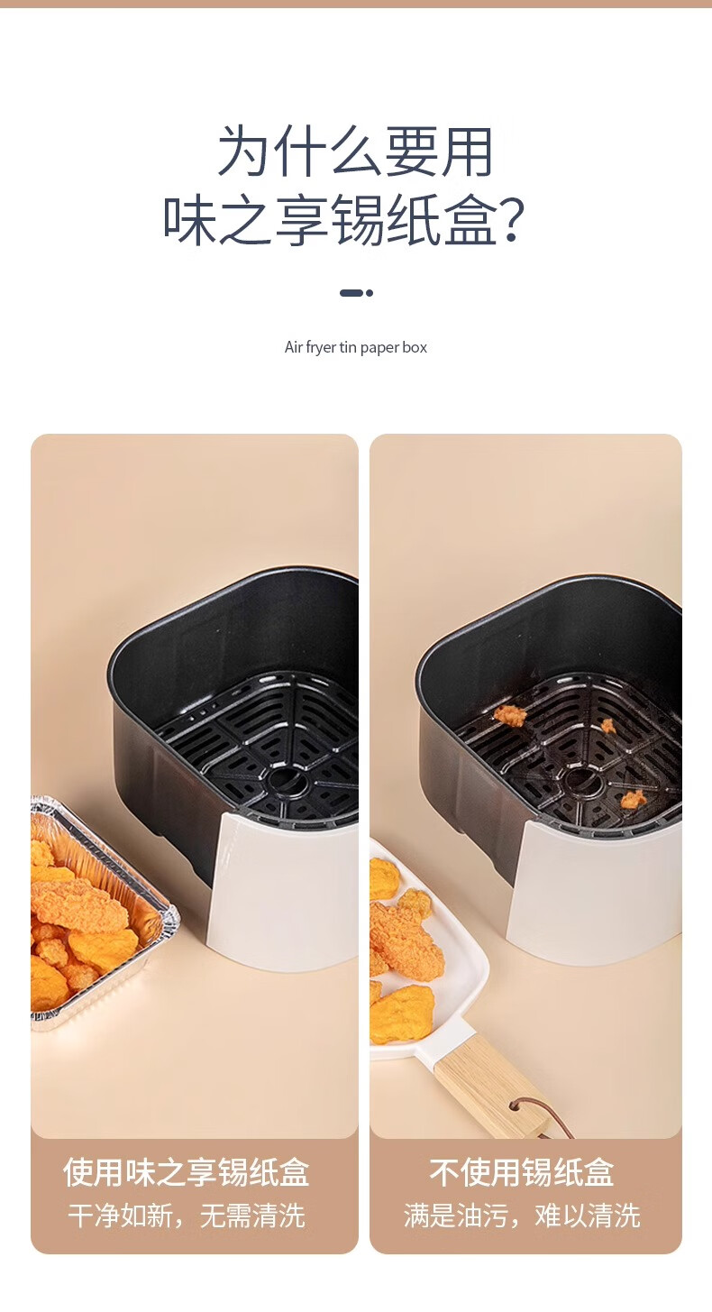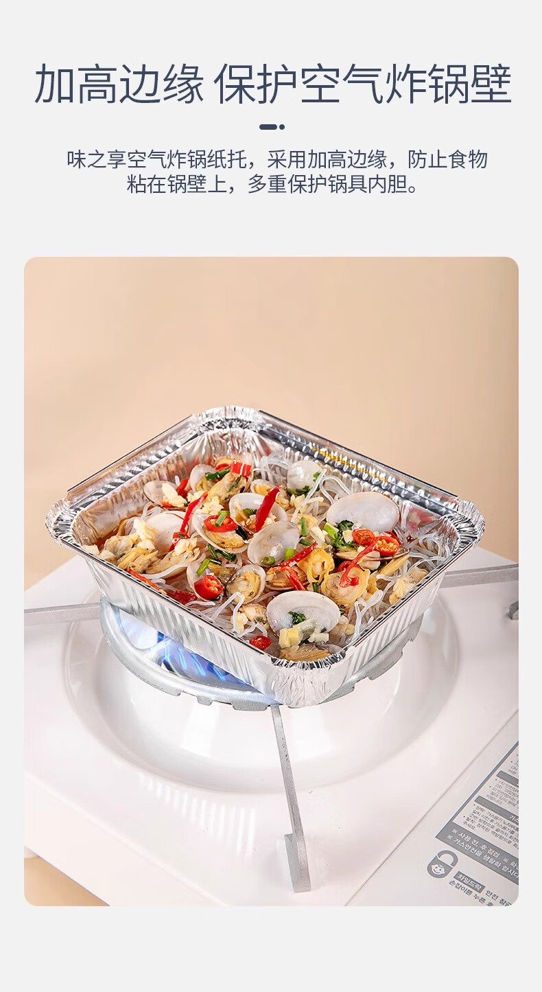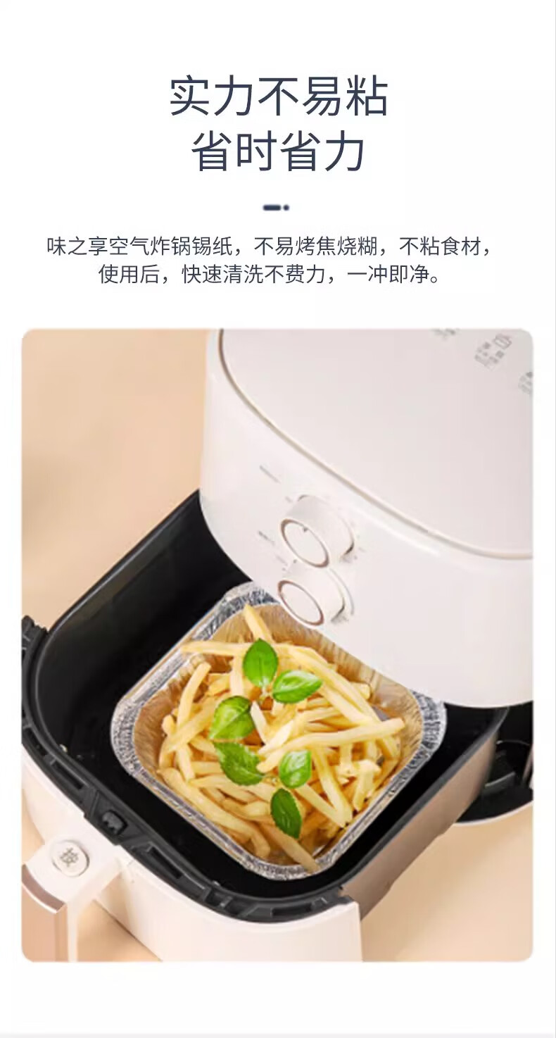 空气炸锅专用纸锡纸盘方形烧烤箱铝箔盒家用烘焙吸油纸烤盘锡纸碗 【中号宽18.5cm】4-6L锅用:30个