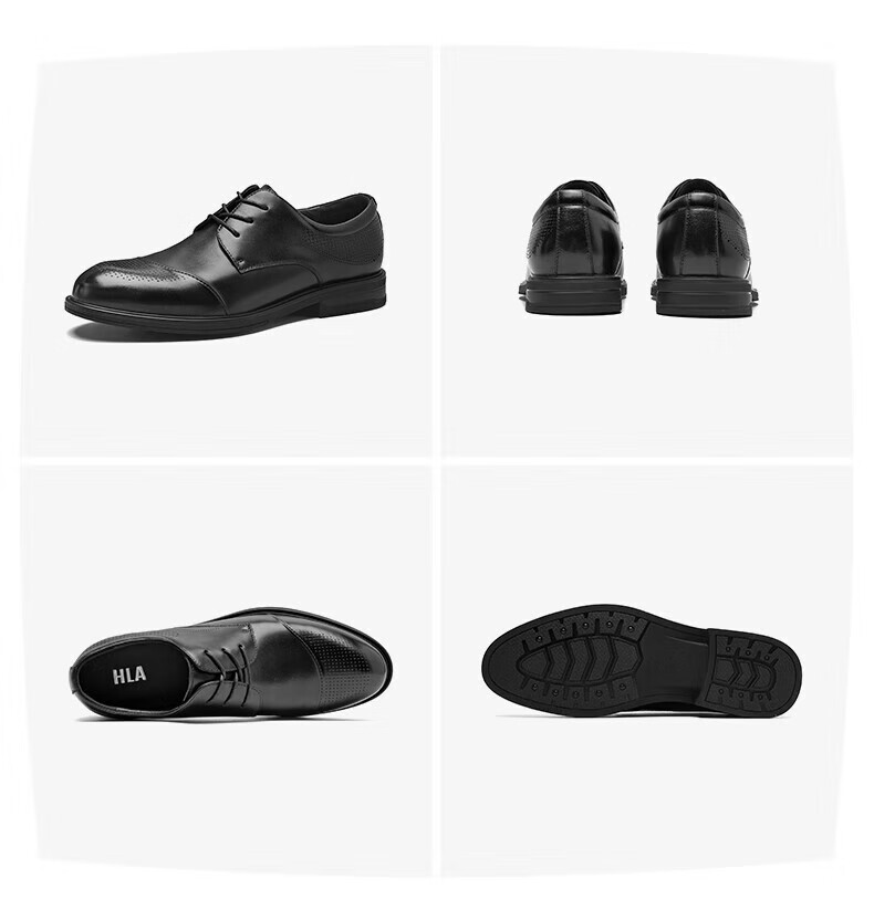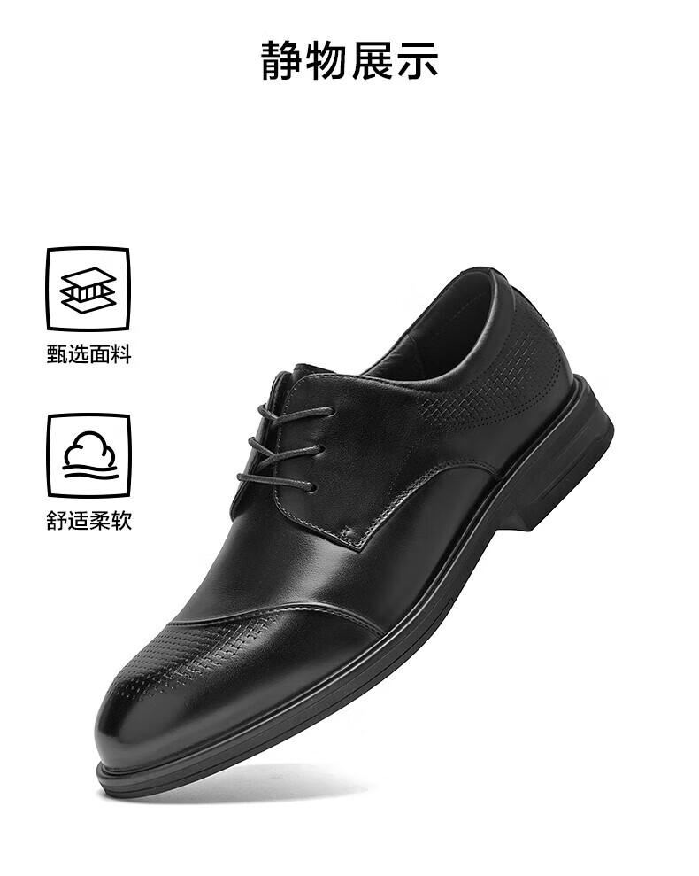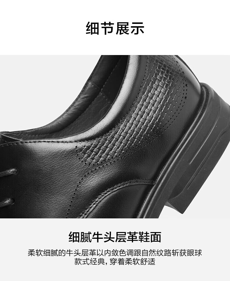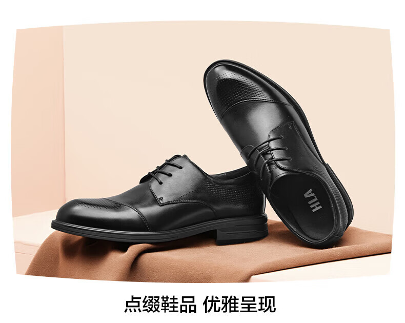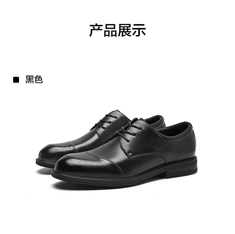 海澜之家(HLA)男鞋2025秋季新款英伦头层牛皮商务皮鞋男通勤正装鞋子 黑色 38