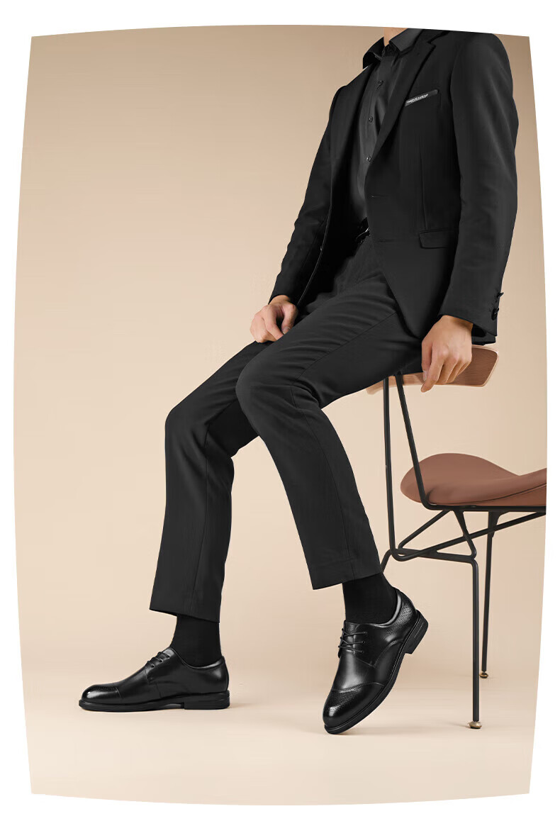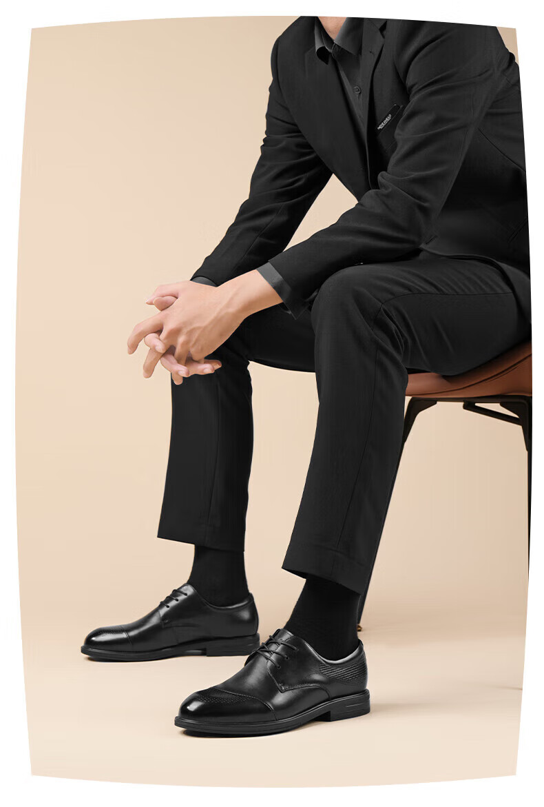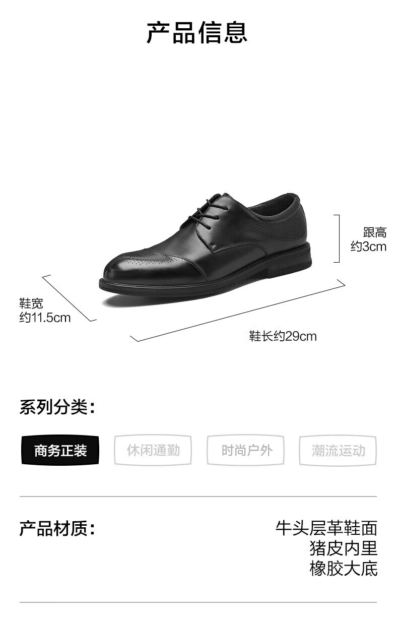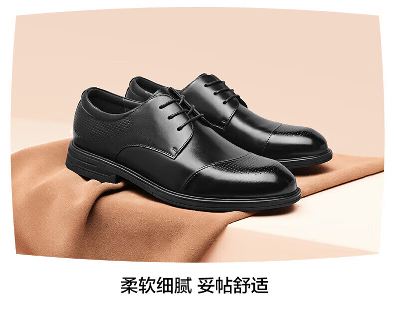 海澜之家(HLA)男鞋2025秋季新款英伦头层牛皮商务皮鞋男通勤正装鞋子 黑色 38