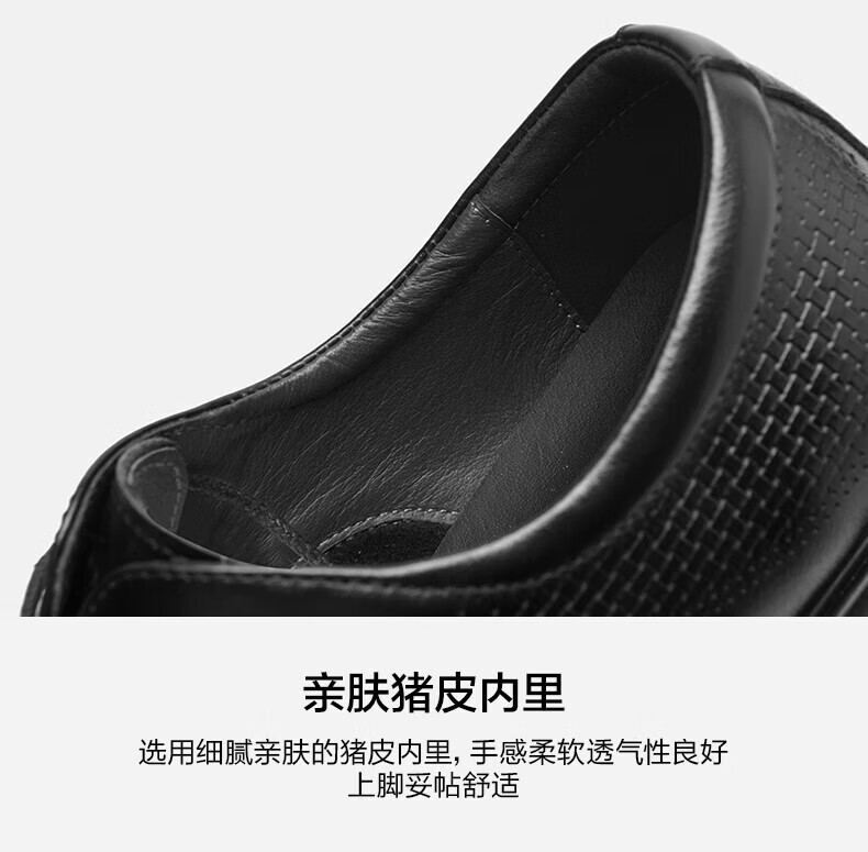 金利来(Goldlion)男鞋轻奢商务正装皮鞋鸵鸟皮革拼接牛皮革套脚乐福鞋男士皮鞋 黑色 43
