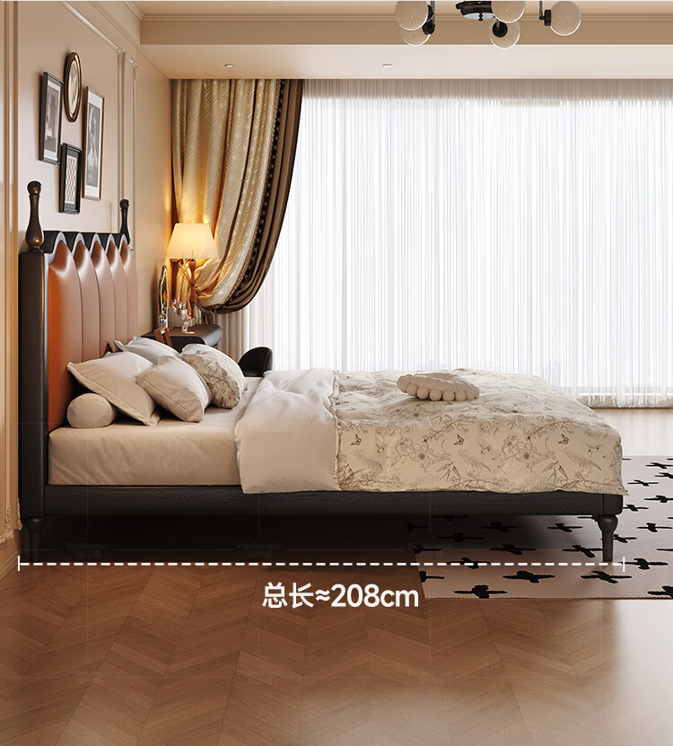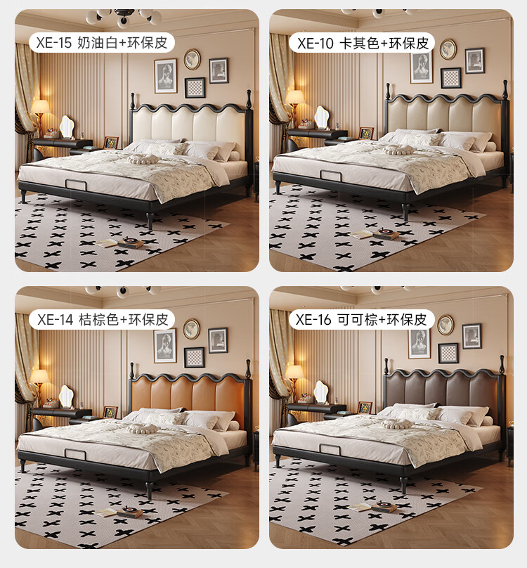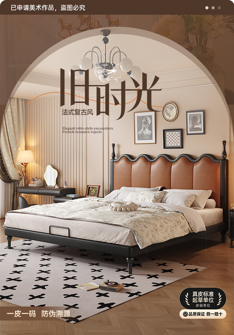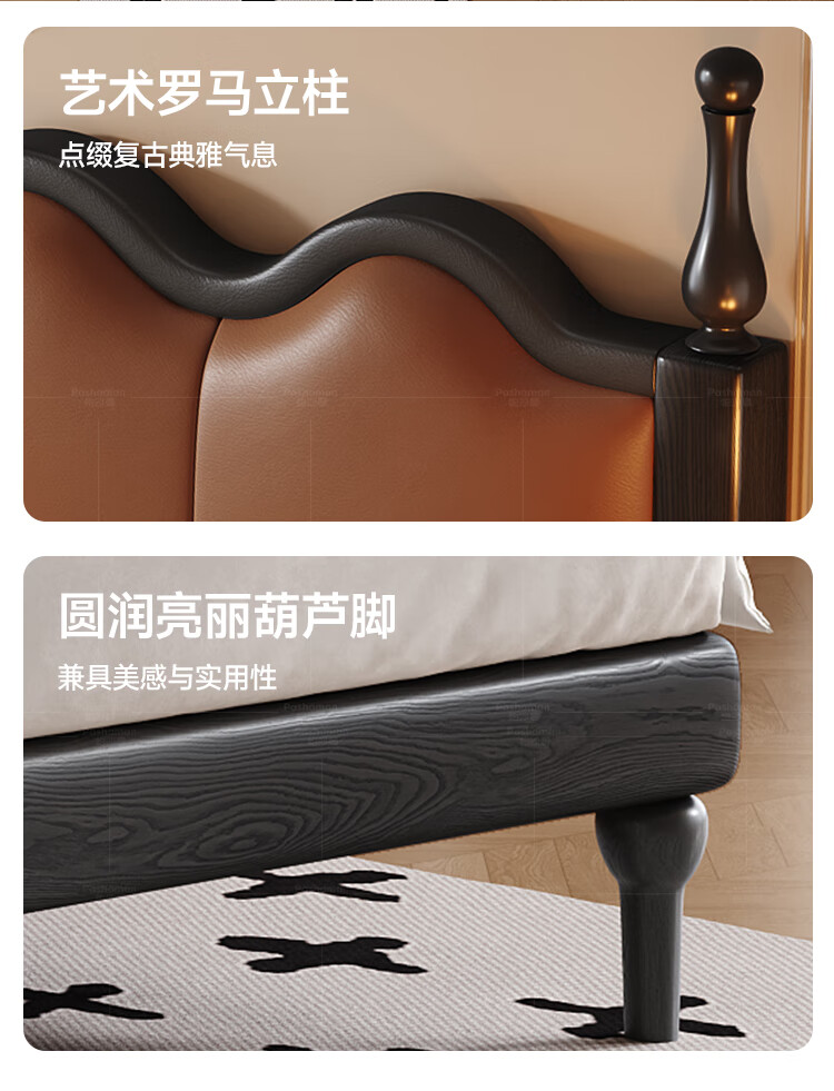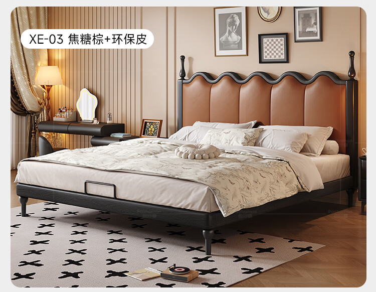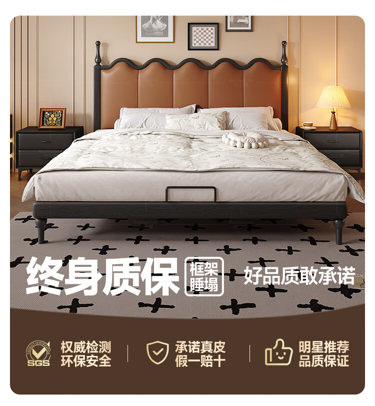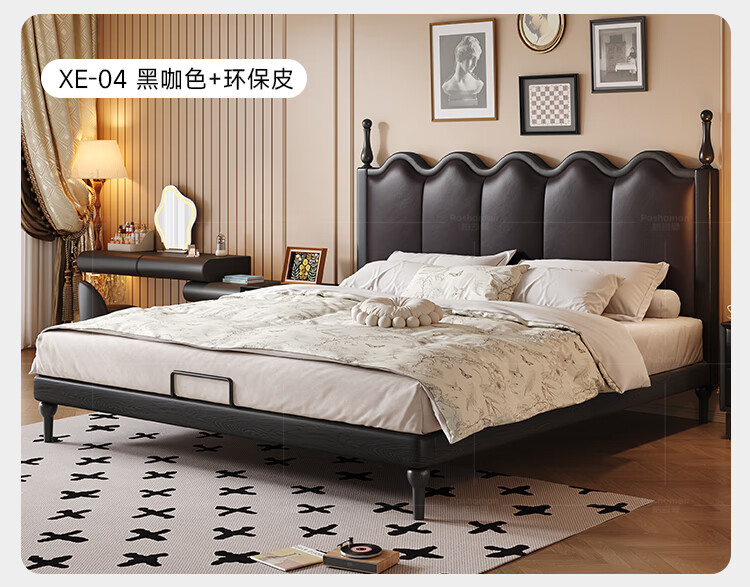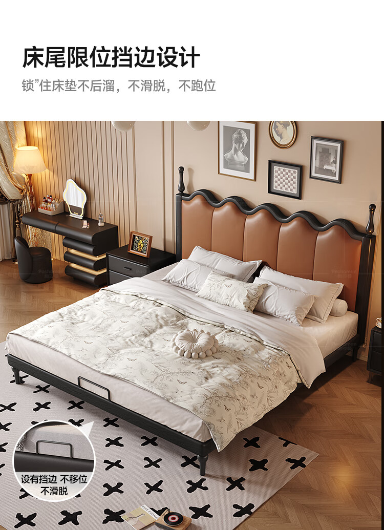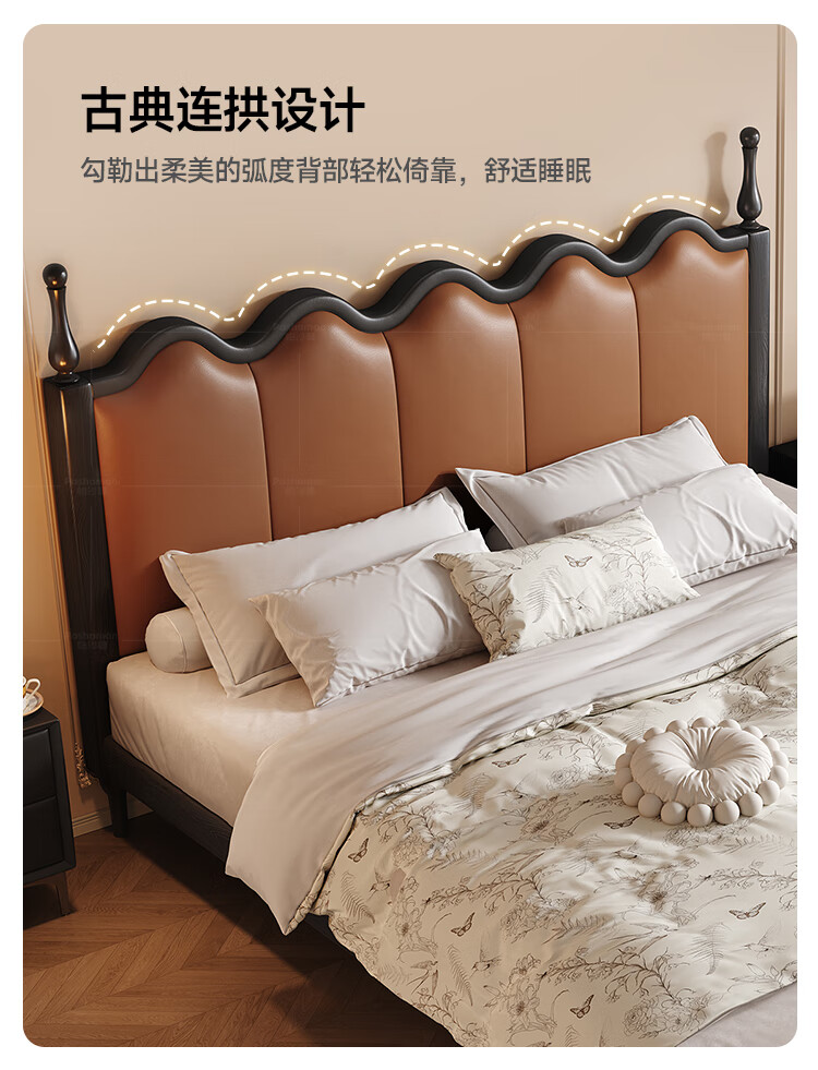 帕沙曼实木床法式复古床1米8双人床真皮家用主卧室大床2025新款床8411CP 【15CM钢木排骨架】单床 1500mm*2000mm