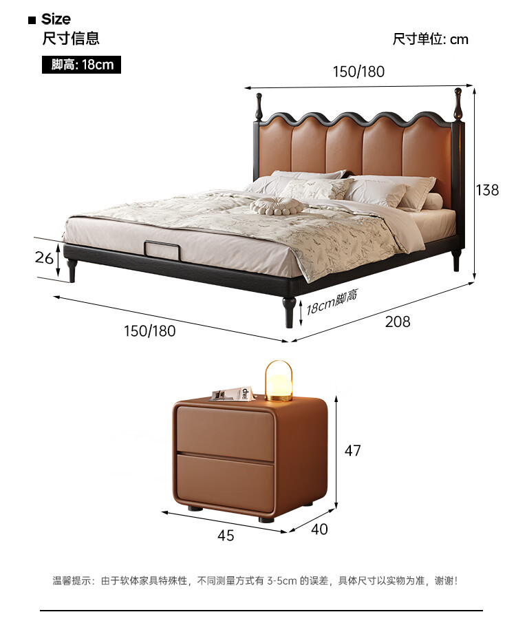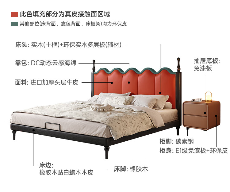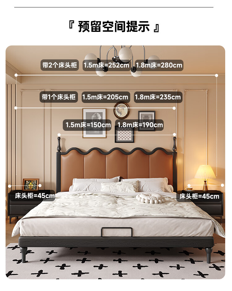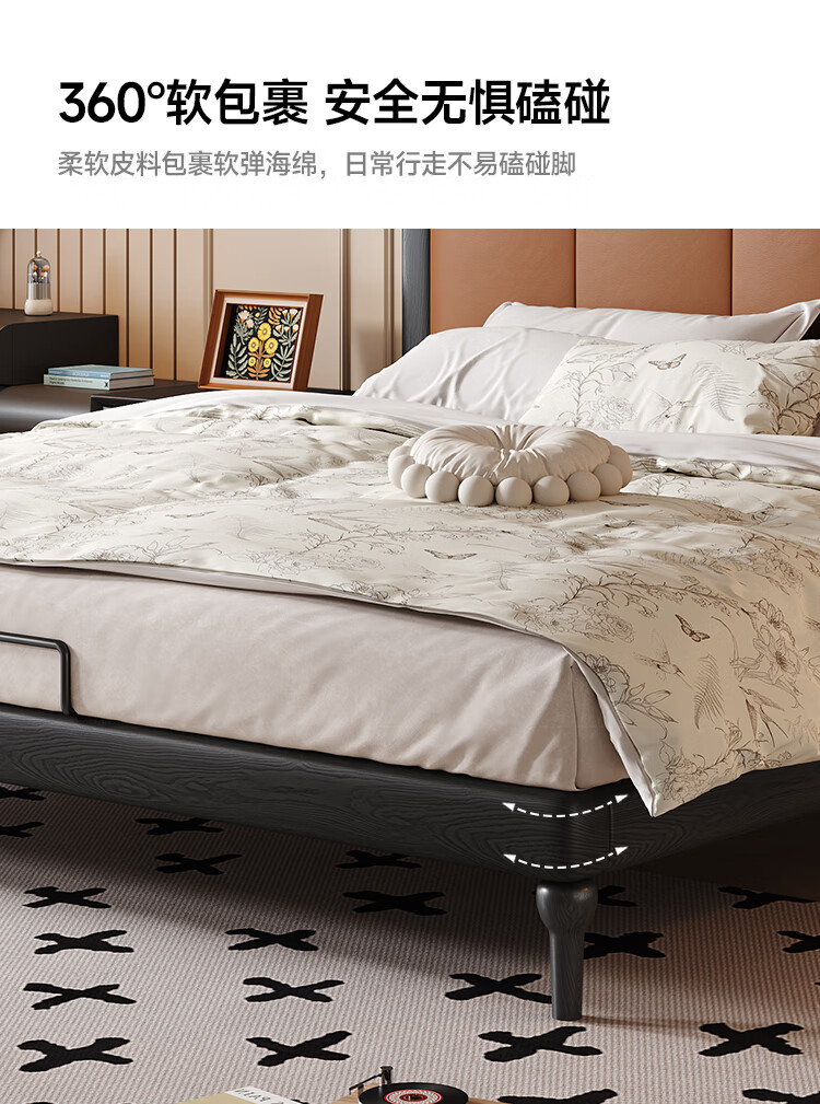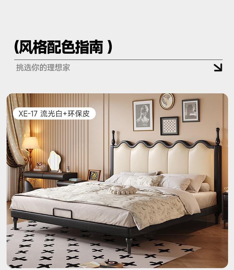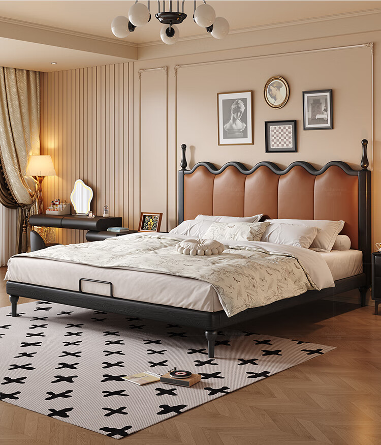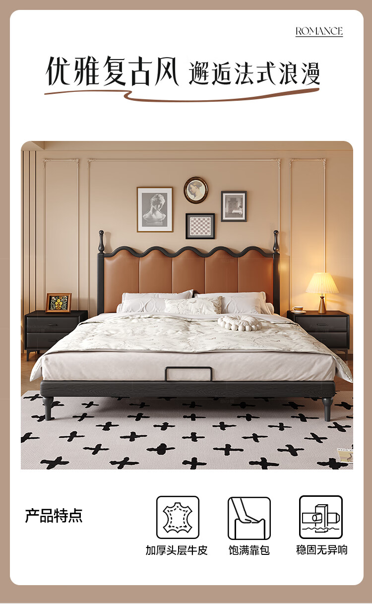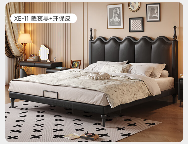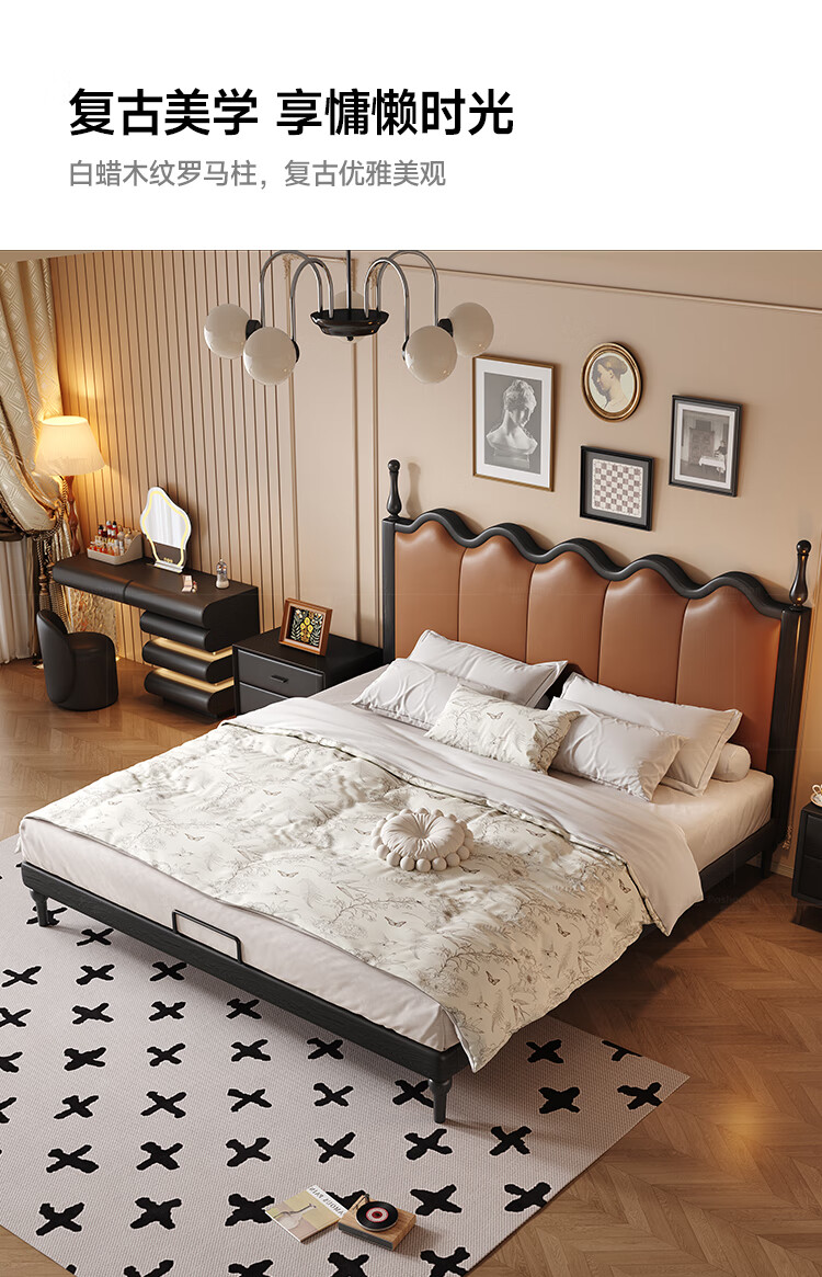 帕沙曼实木床法式复古床1米8双人床真皮家用主卧室大床2025新款床8411CP 【15CM钢木排骨架】单床 1500mm*2000mm