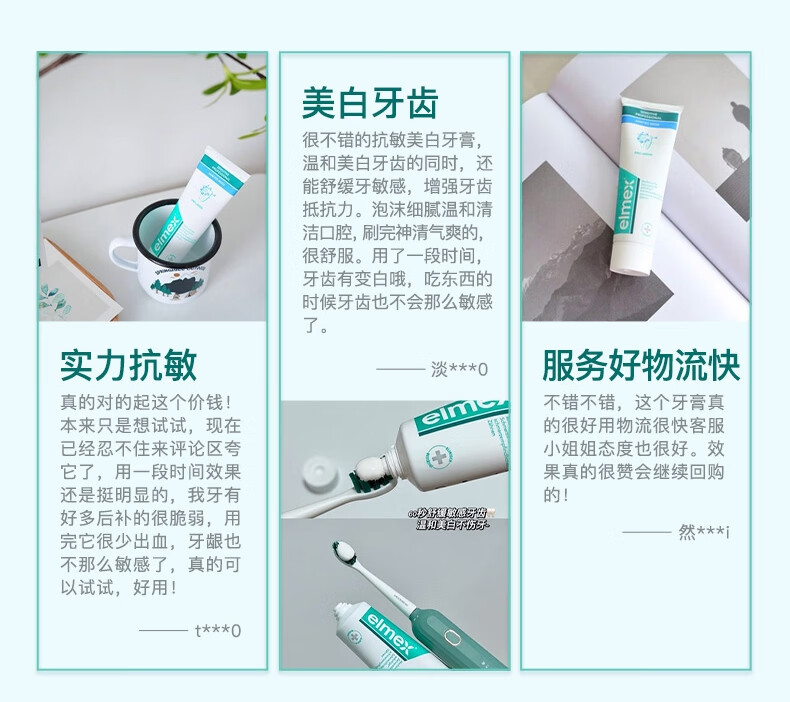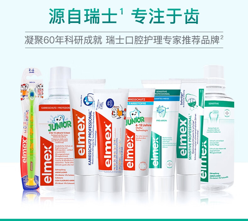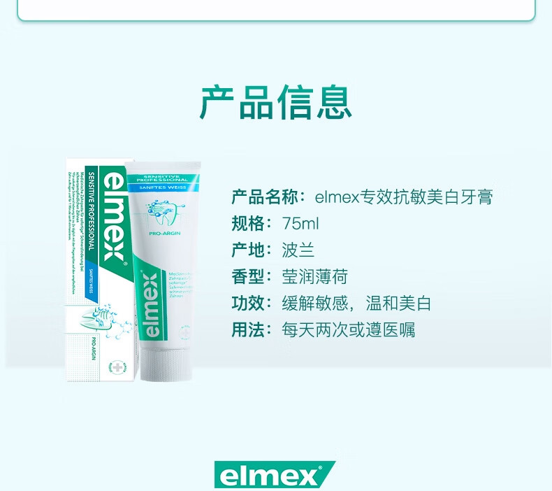 ELMEX艾美适抗过敏去垢亮白 美白牙膏75ml*2
