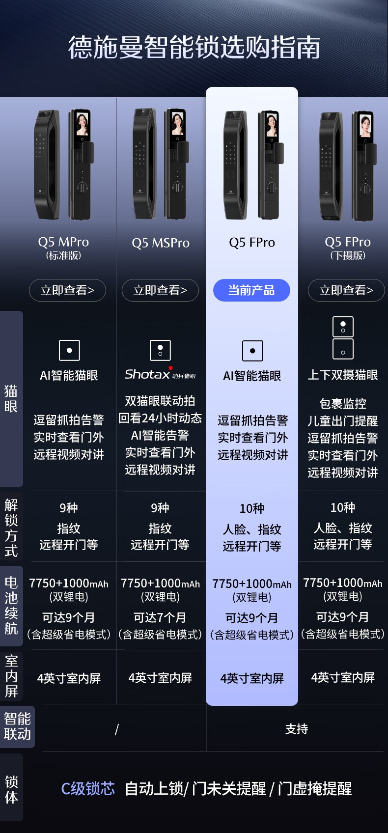德施曼(DESMAN)智能门锁C级锁芯3D人脸识别大屏指纹密码防盗电子锁 大圣 Q5FPro