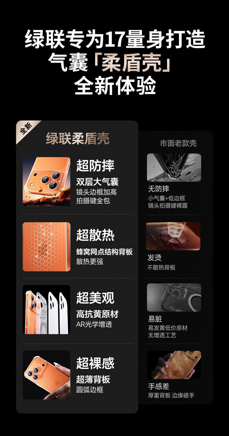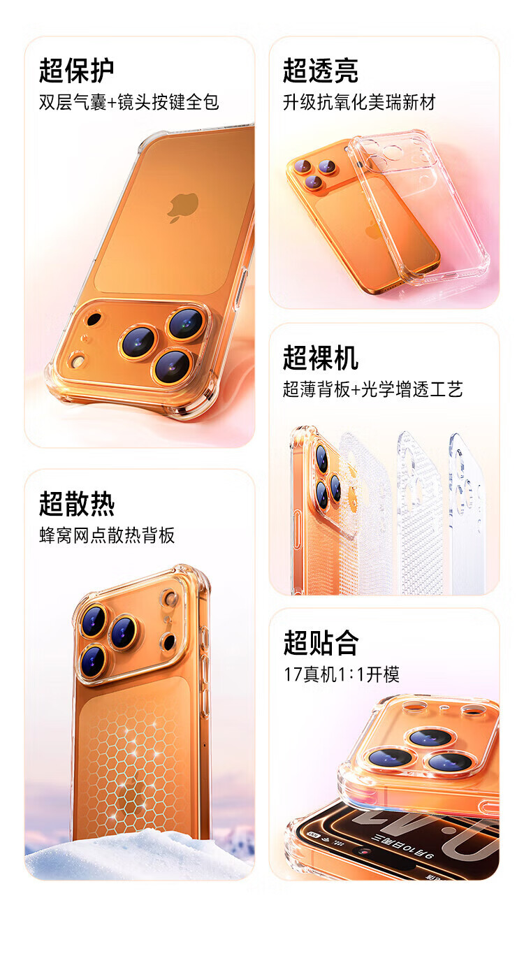 绿联(UGREEN)【适用iPhone17Pro手机壳】相机按键全包双层气囊苹果17Air专属保护套镜头全包超薄透明防摔软壳 【晶薄裸感】气囊防摔-升级散热 【适用iPhone17Air】-顶配防摔|全面保护