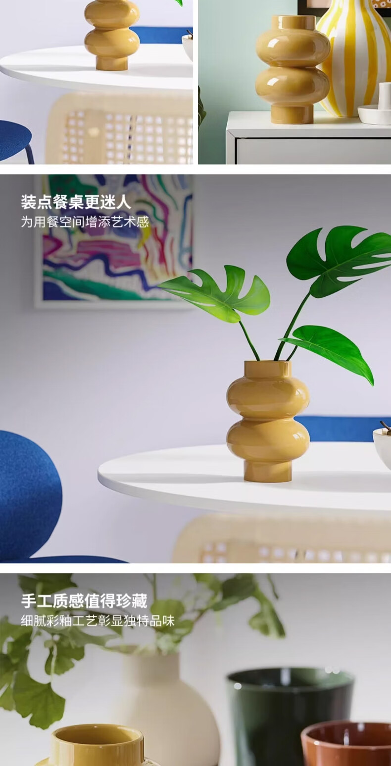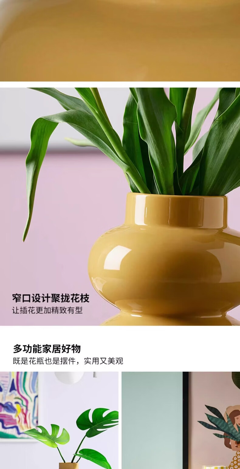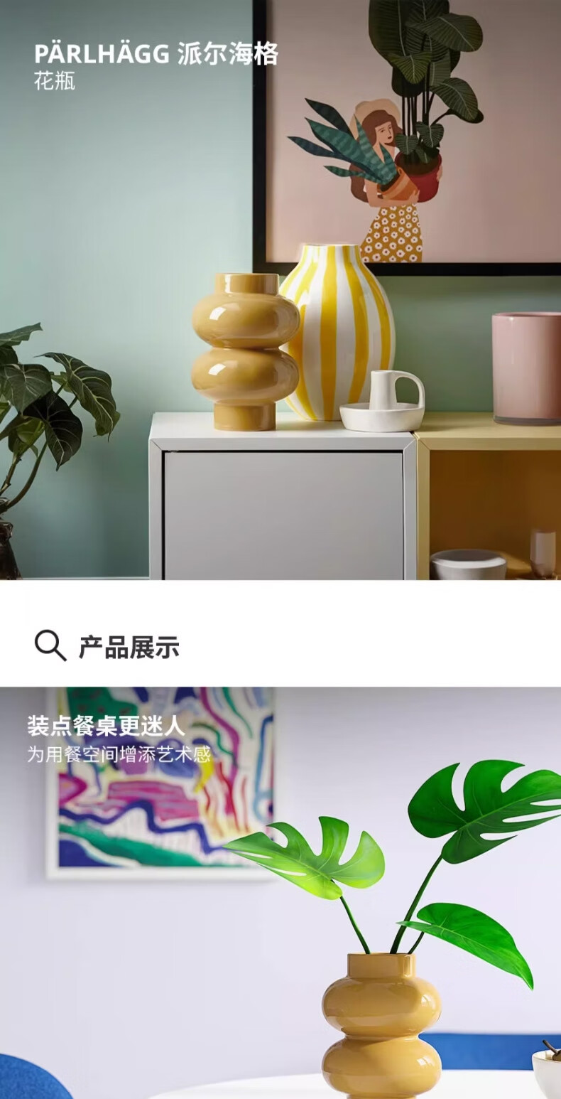 宜家(IKEA)PARLHAGG派尔海格装饰花瓶餐厅摆件水养鲜花家用 米黄花瓶22cm