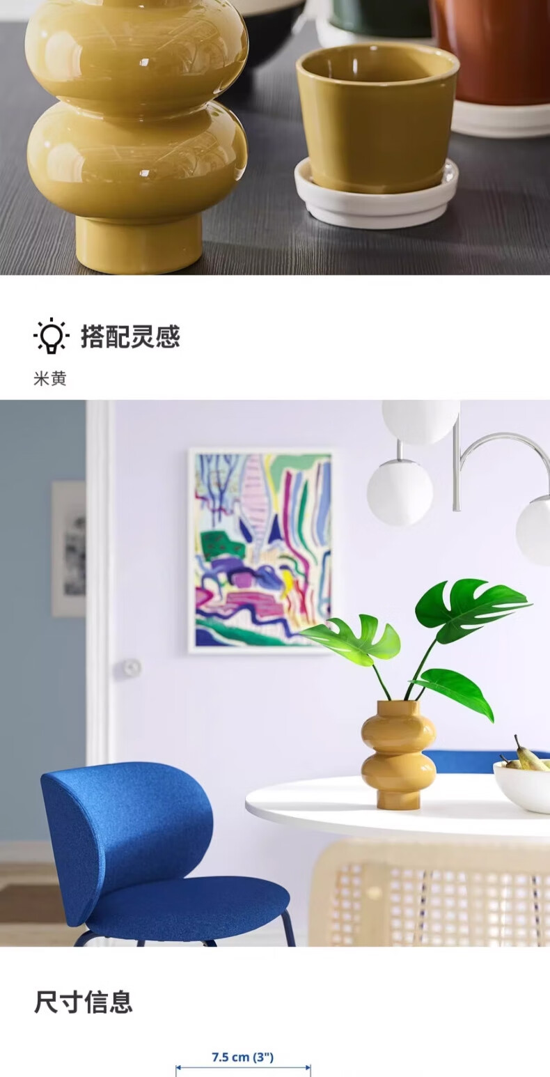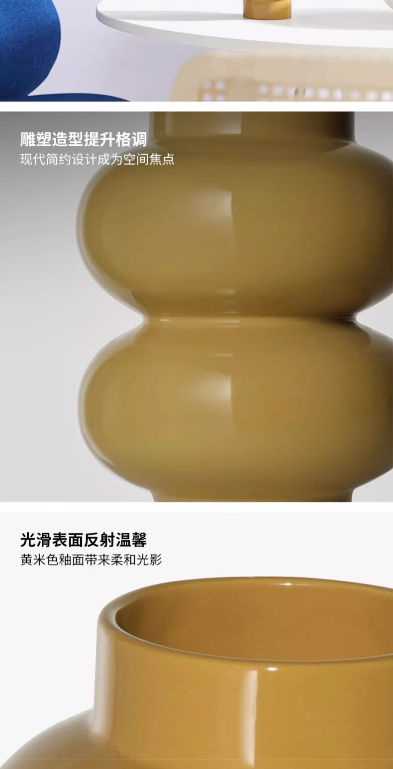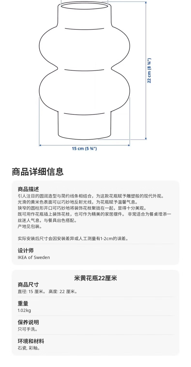 宜家(IKEA)PARLHAGG派尔海格装饰花瓶餐厅摆件水养鲜花家用 米黄花瓶22cm