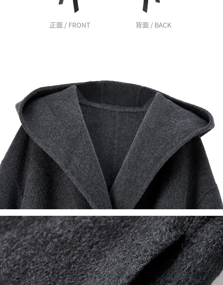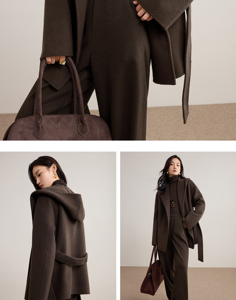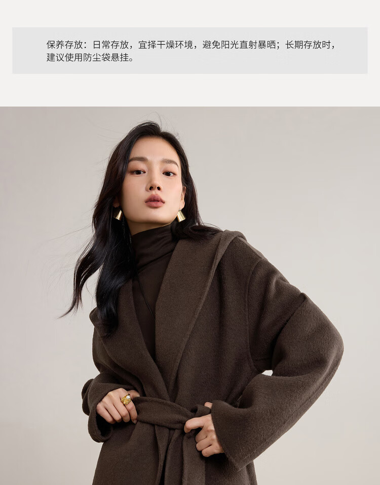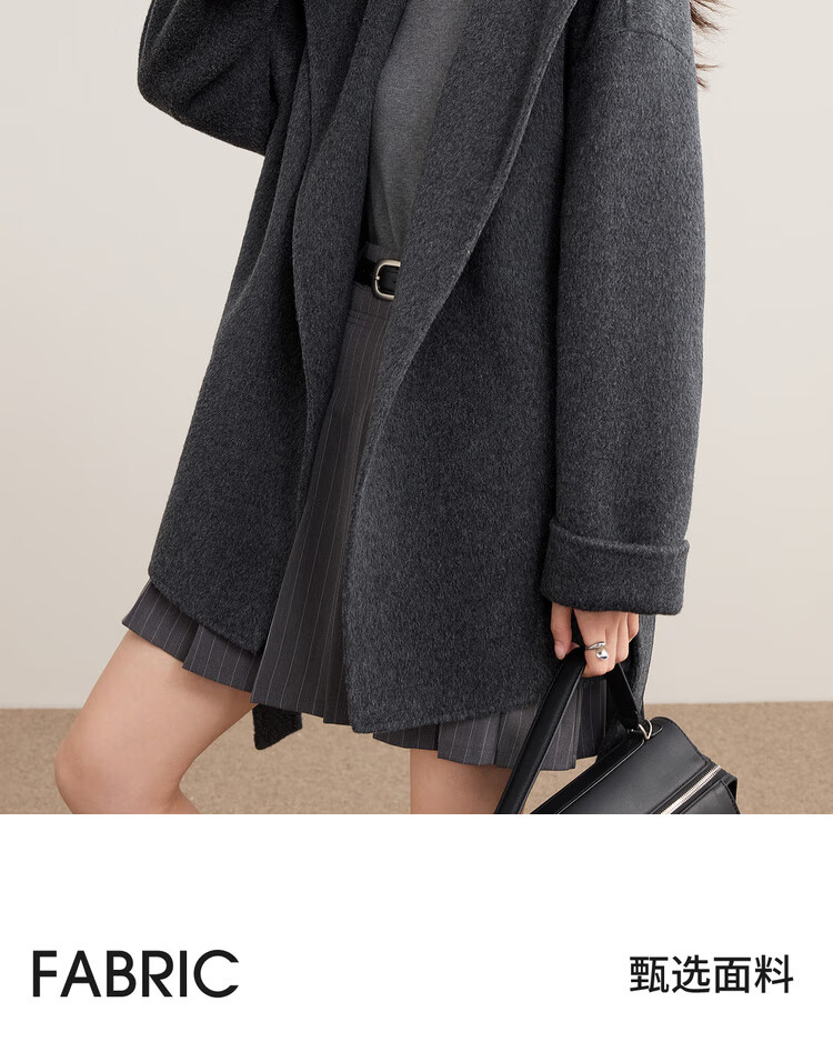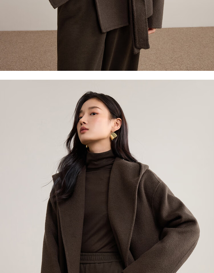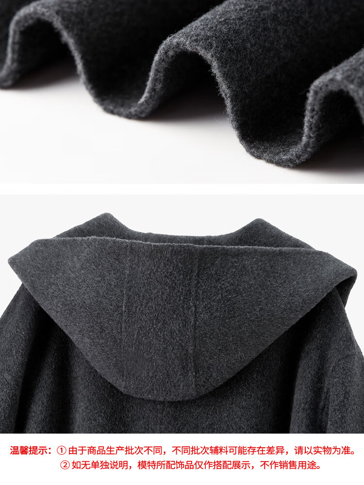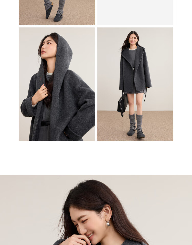 尚都比拉英伦风纯羊毛毛呢大衣女冬季保暖厚款双面呢外套连帽宽松中款大衣