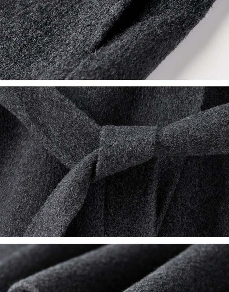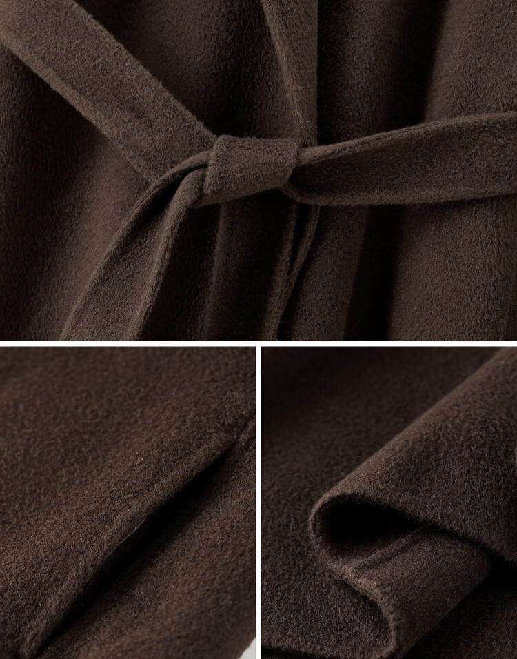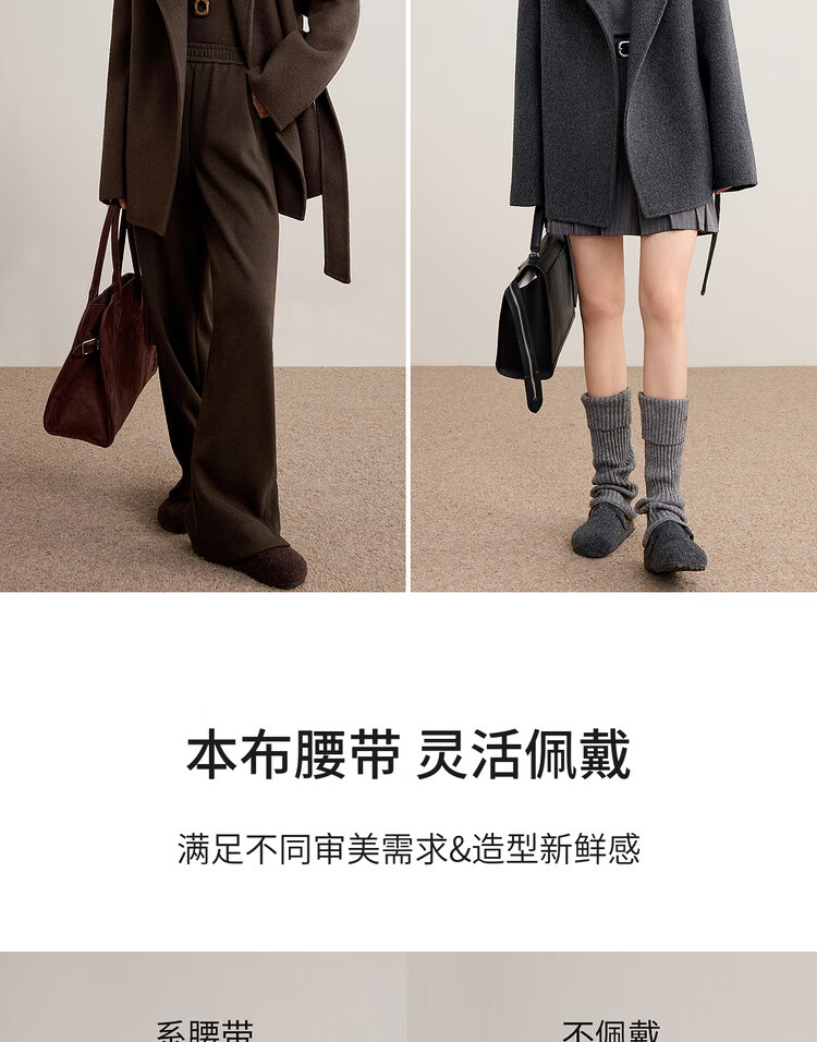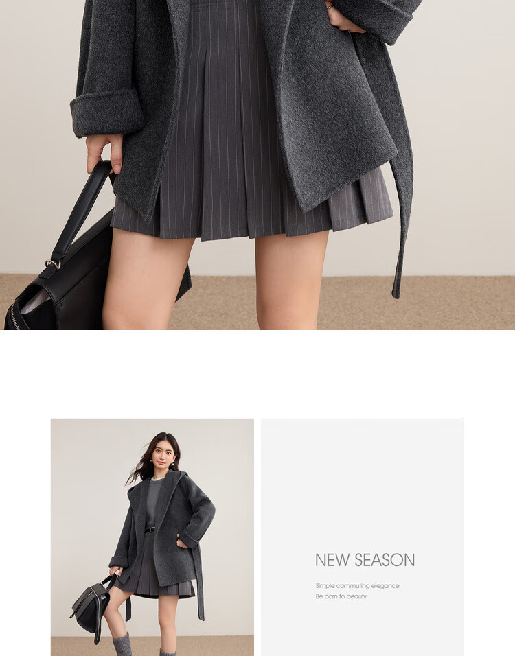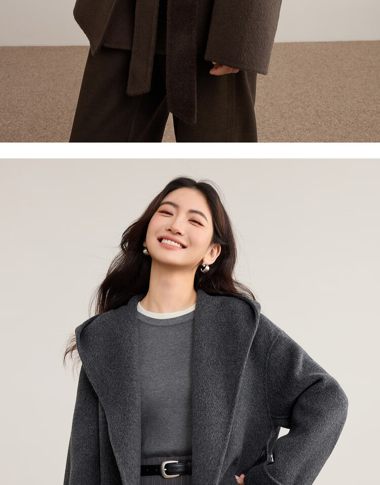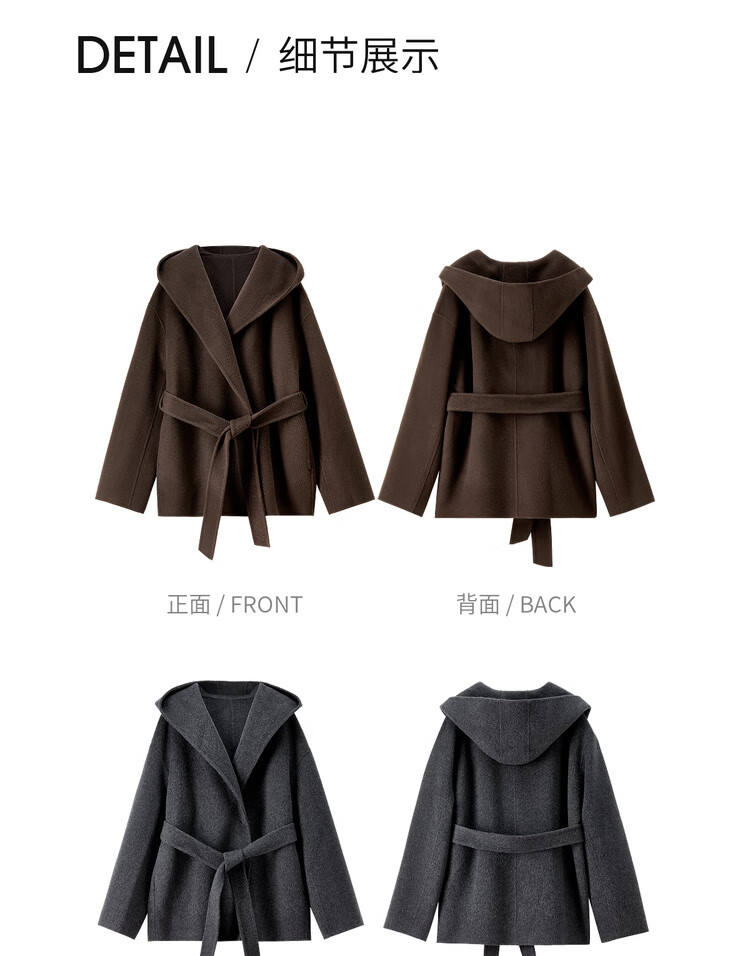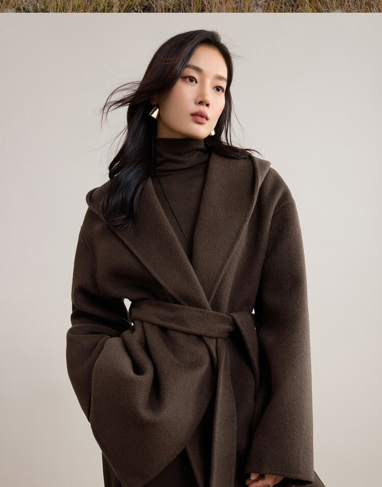 尚都比拉英伦风纯羊毛毛呢大衣女冬季保暖厚款双面呢外套连帽宽松中款大衣