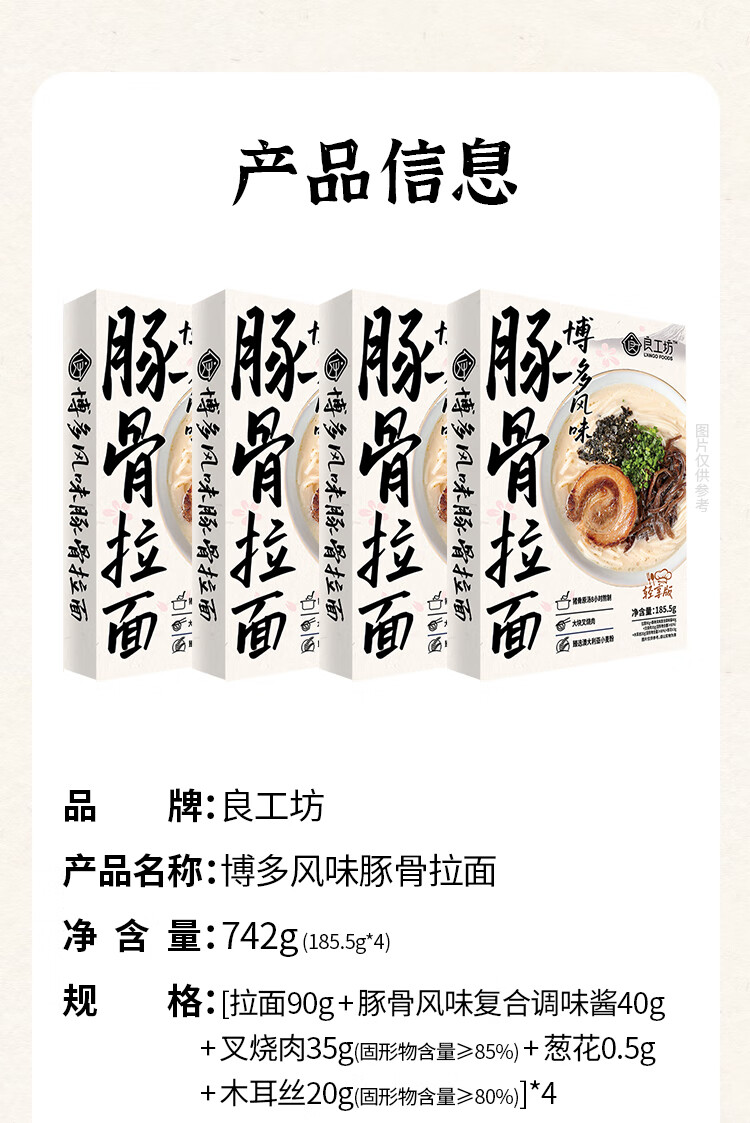 良工坊博多豚骨拉面185.5g*4 日式拉面方便面速食面早餐晚餐懒人豚骨面