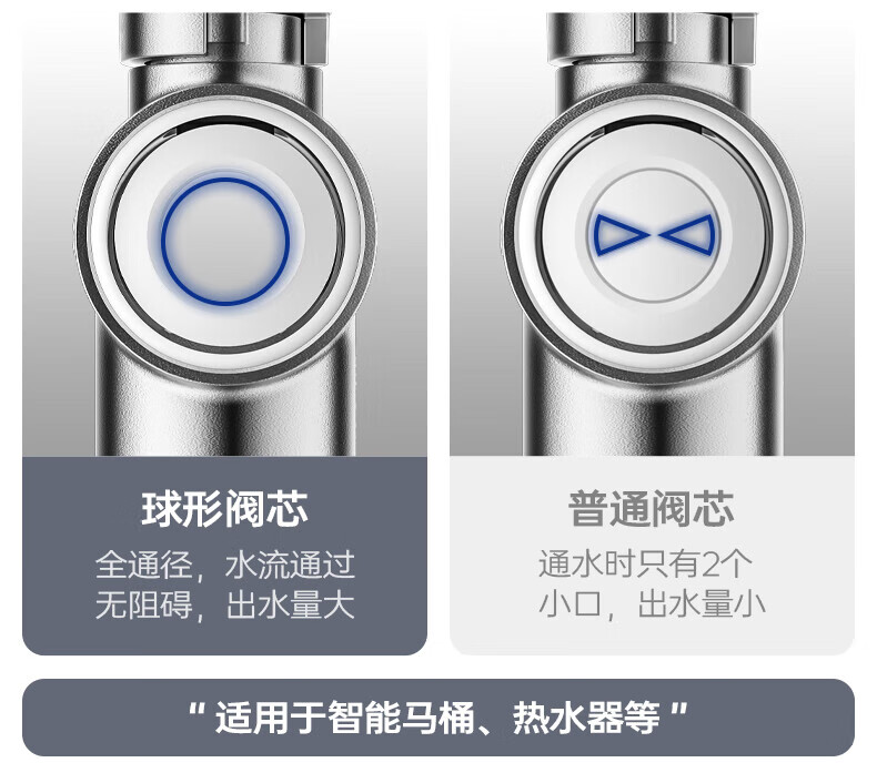 九牧(JOMOO)角阀球形阀铜阀体大流量三角阀燃气热水器壁挂炉亮银色八字阀HG 74113【大流量单冷球阀】