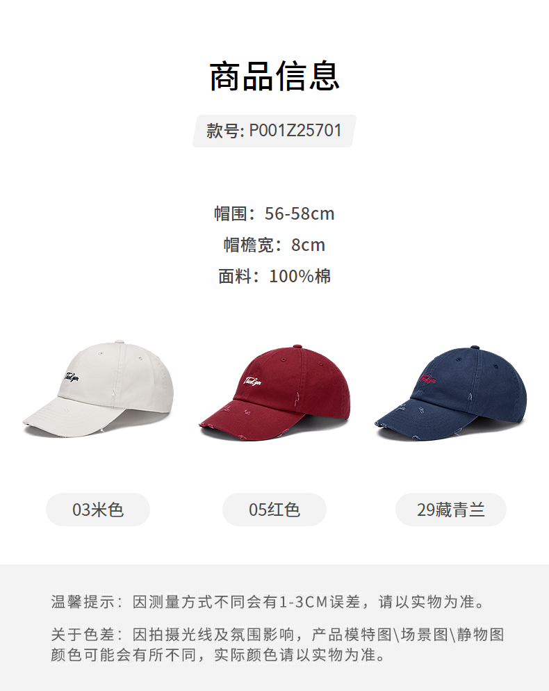 热风(Hotwind)棒球帽情侣款鸭舌帽2025年秋季新款破洞做旧字母棒球帽鸭舌帽 29藏青兰 均码