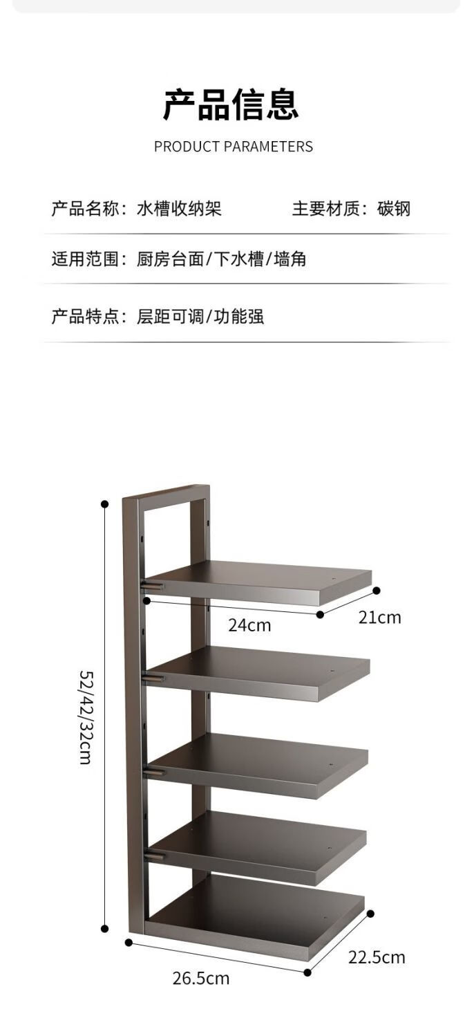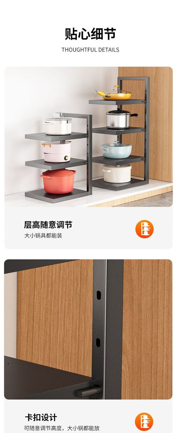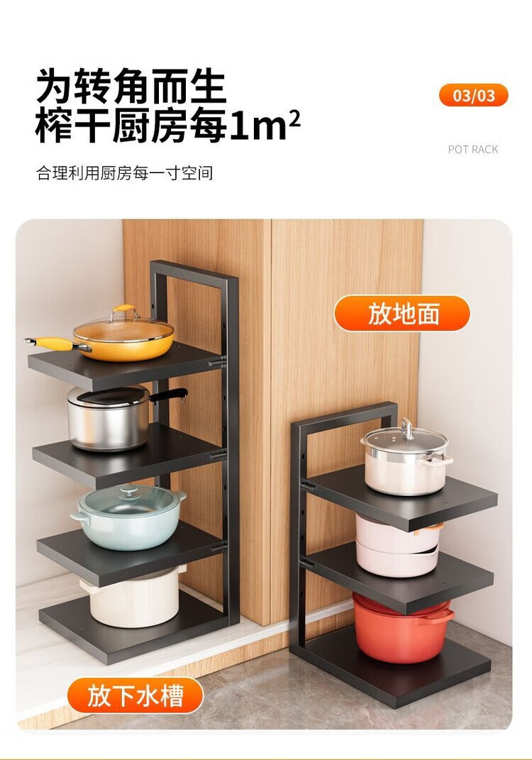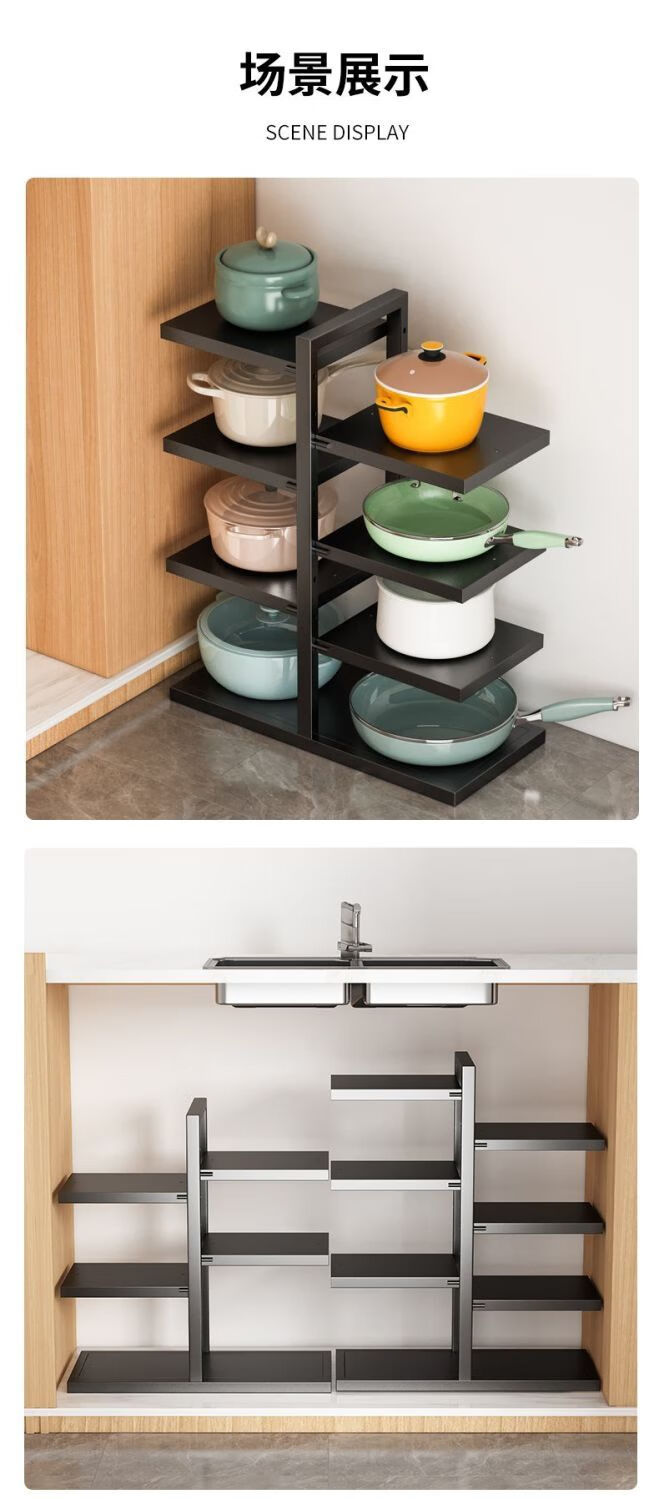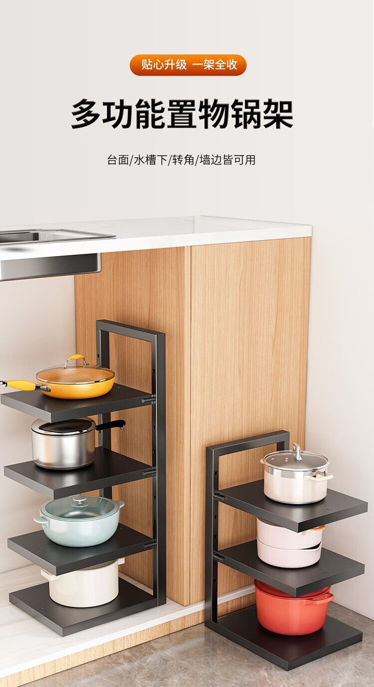 简漾厨房家用台面水槽橱柜角落多层分层收纳锅具杂物专用加粗加厚架子 平面2层 防潮耐腐/多层钢材
