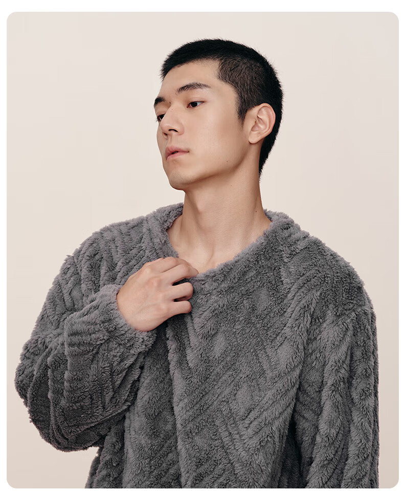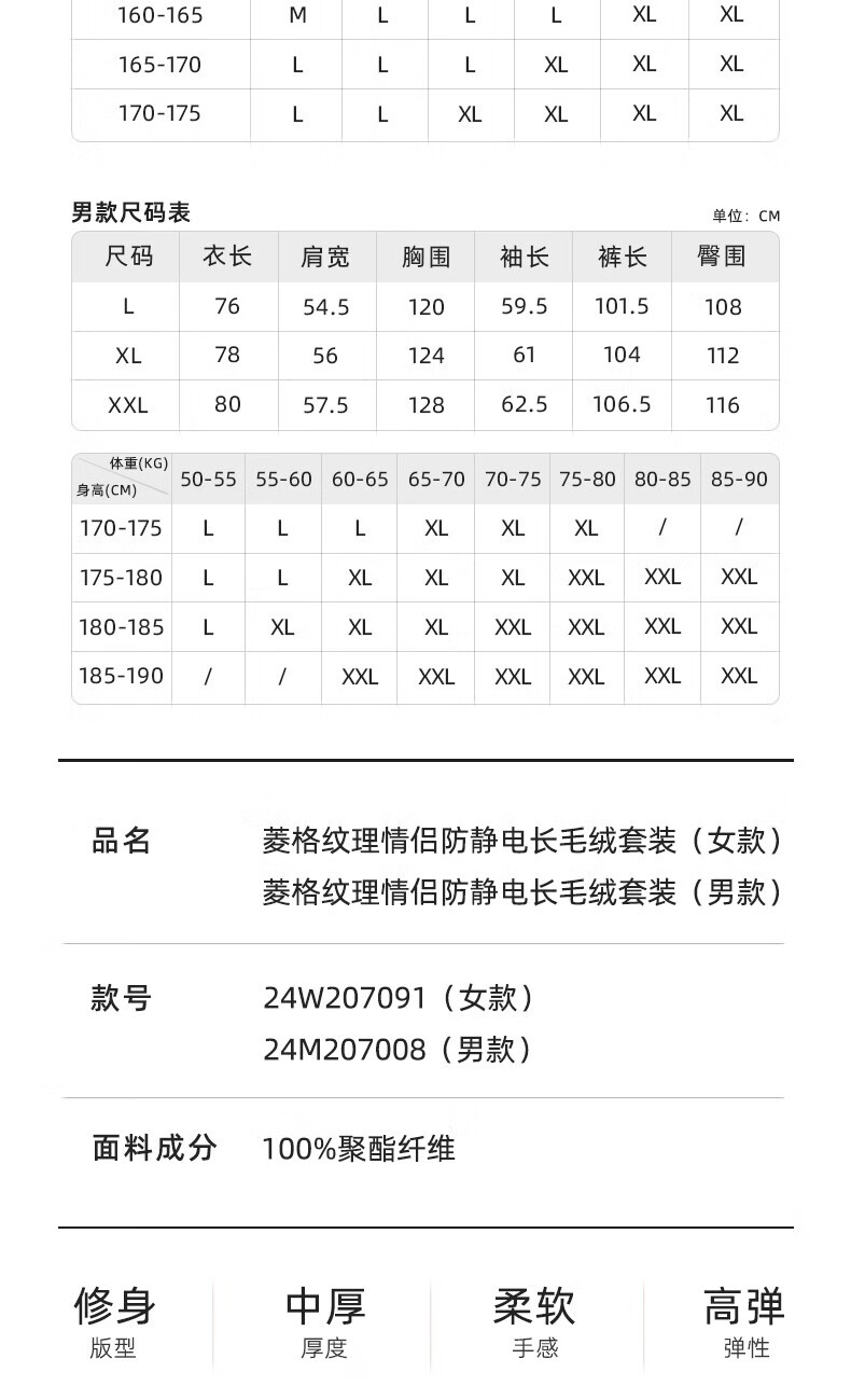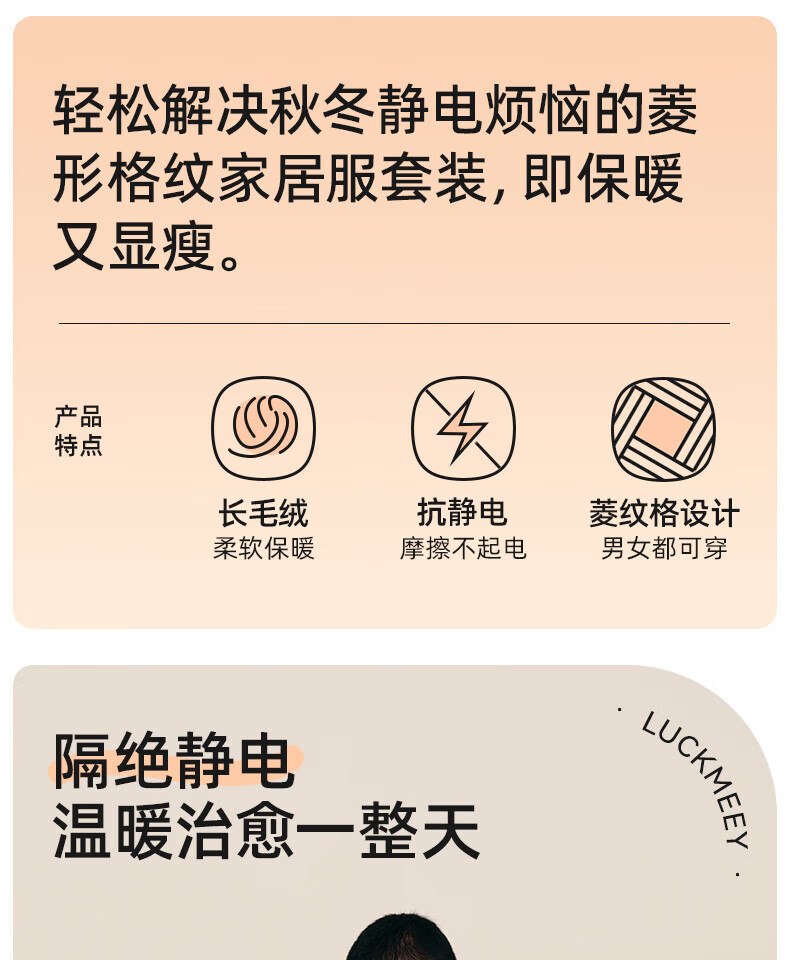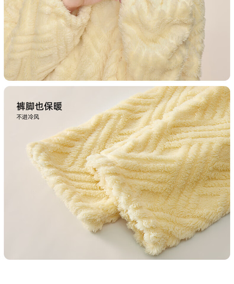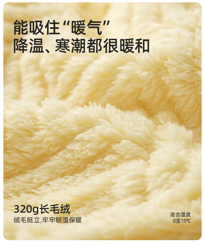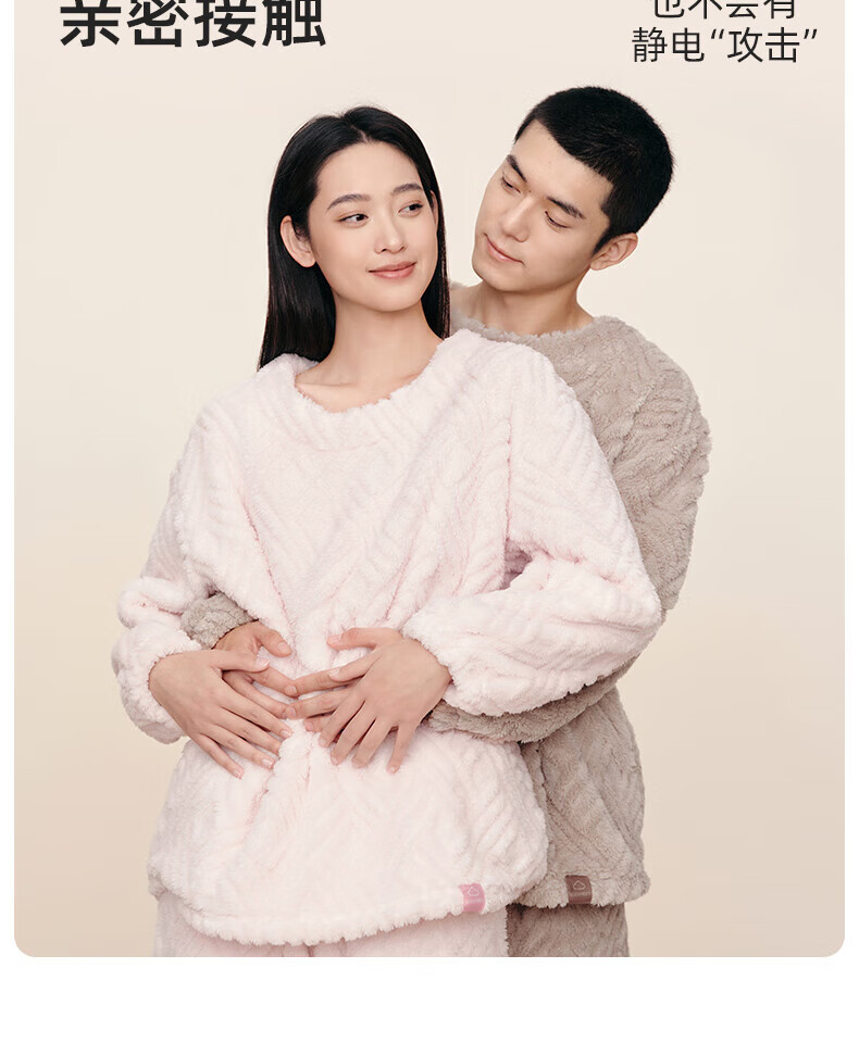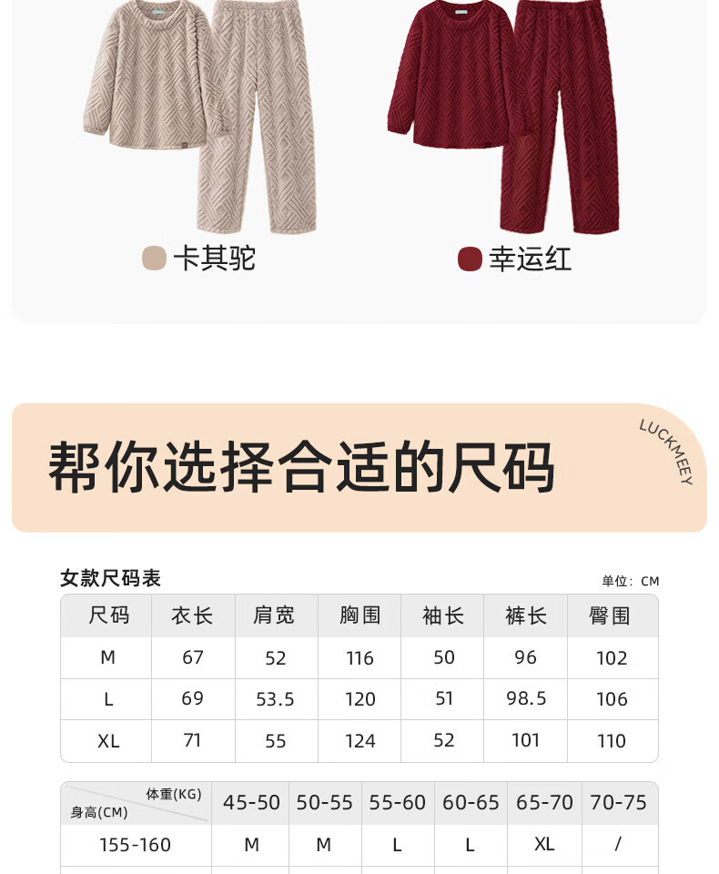 幸棉(LUCKMEEY)女秋冬家居服菱格麻花长毛绒情侣套装可外穿保暖柔软长袖圆领睡衣 奶油白(女款) L (女100-130斤/男100-130斤)