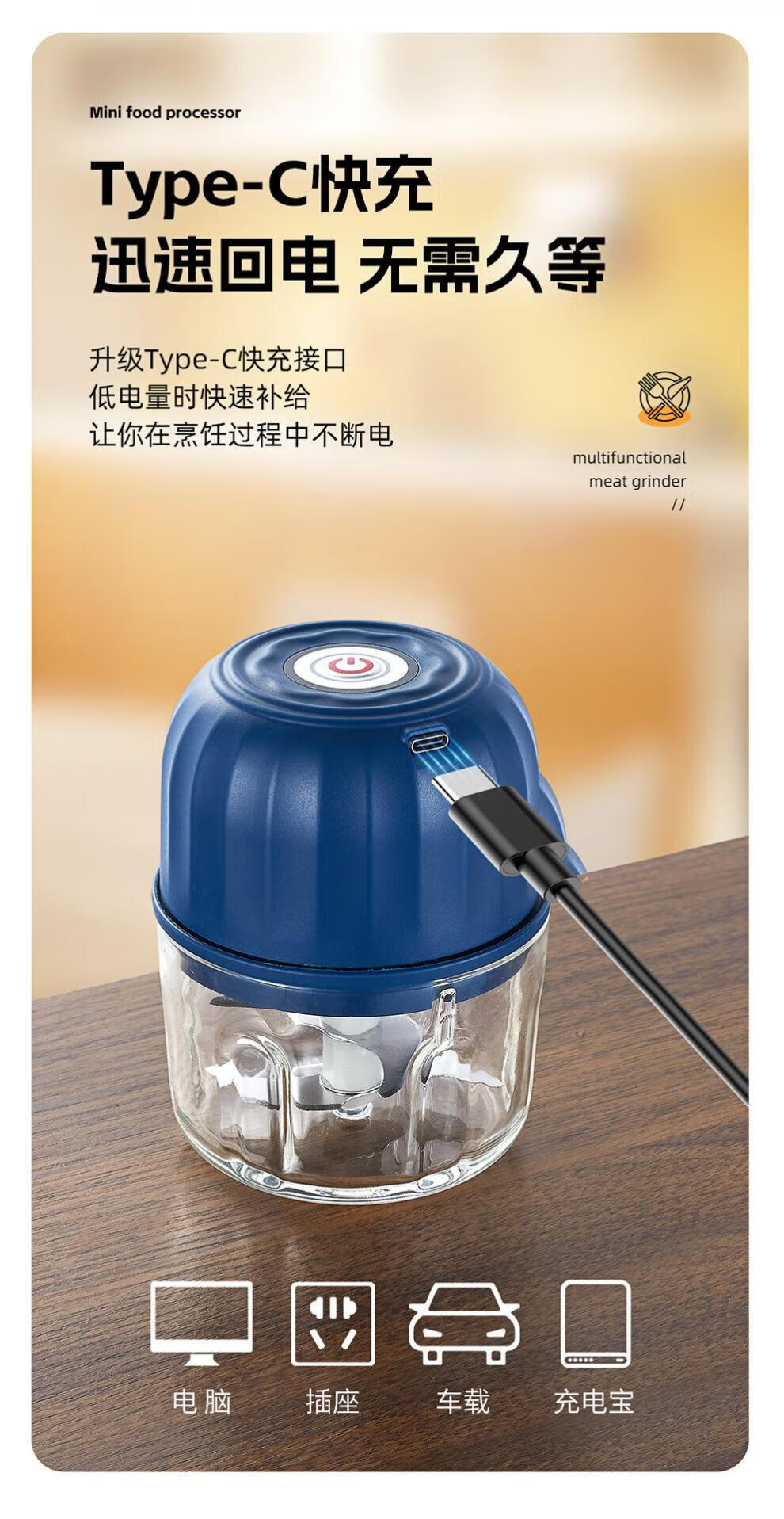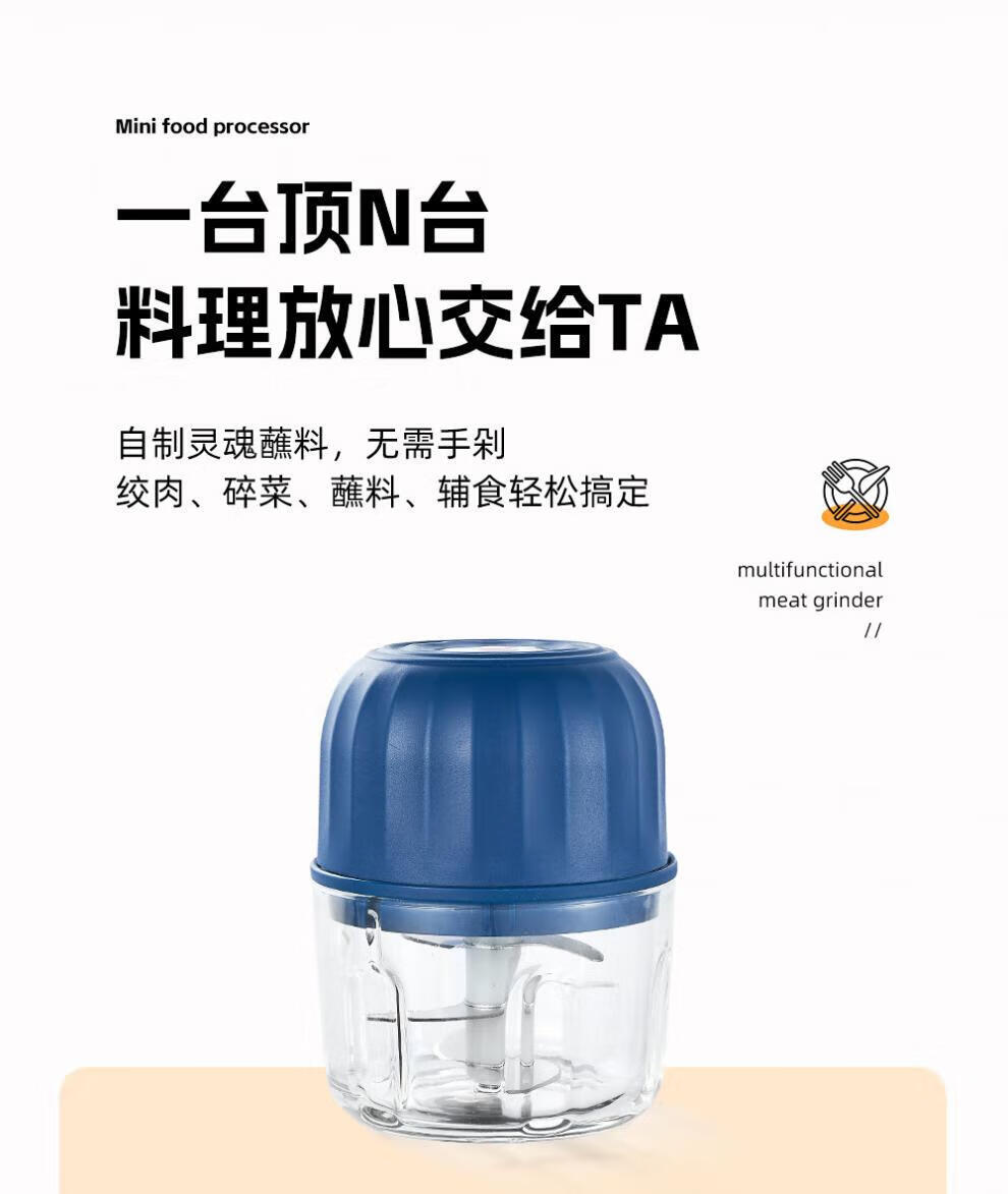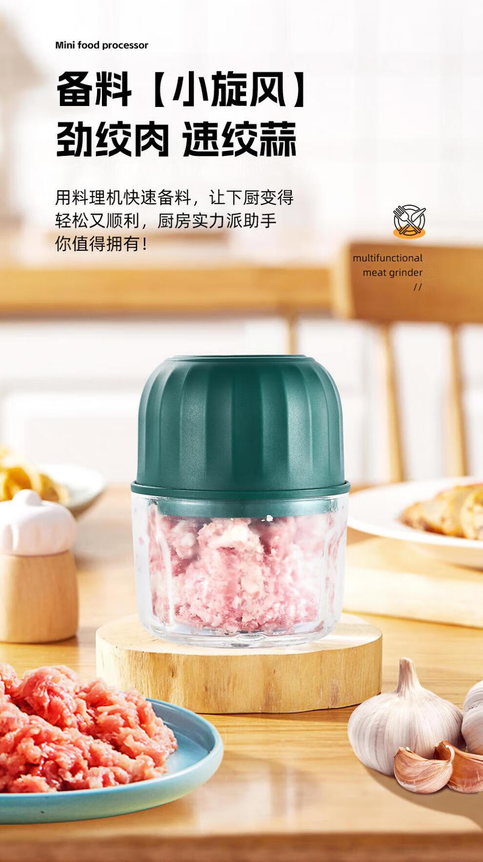 电动捣蒜神器蒜末打蒜器捣蒜搅碎机家用小型辅绞肉机便携搅蒜器 浅绿色6刀