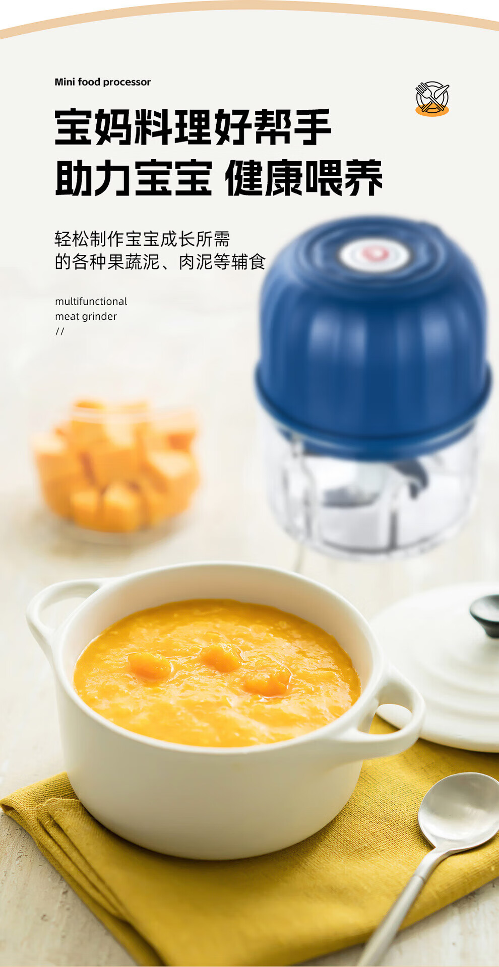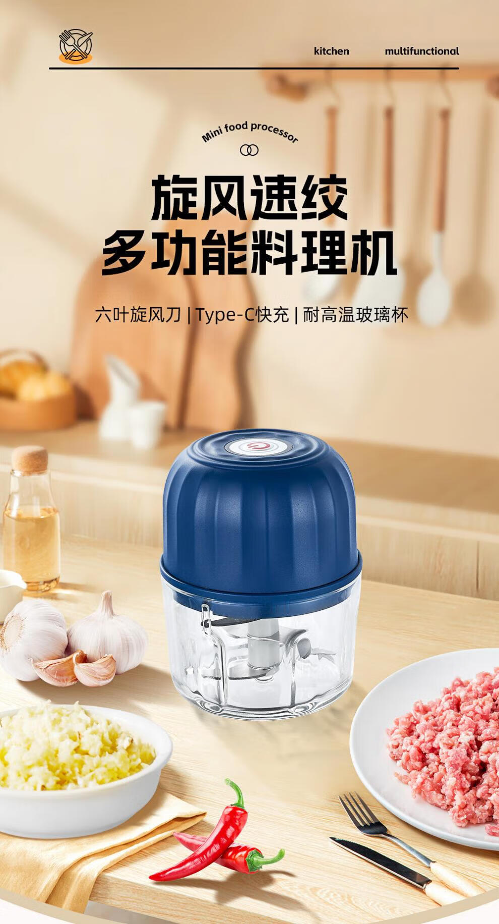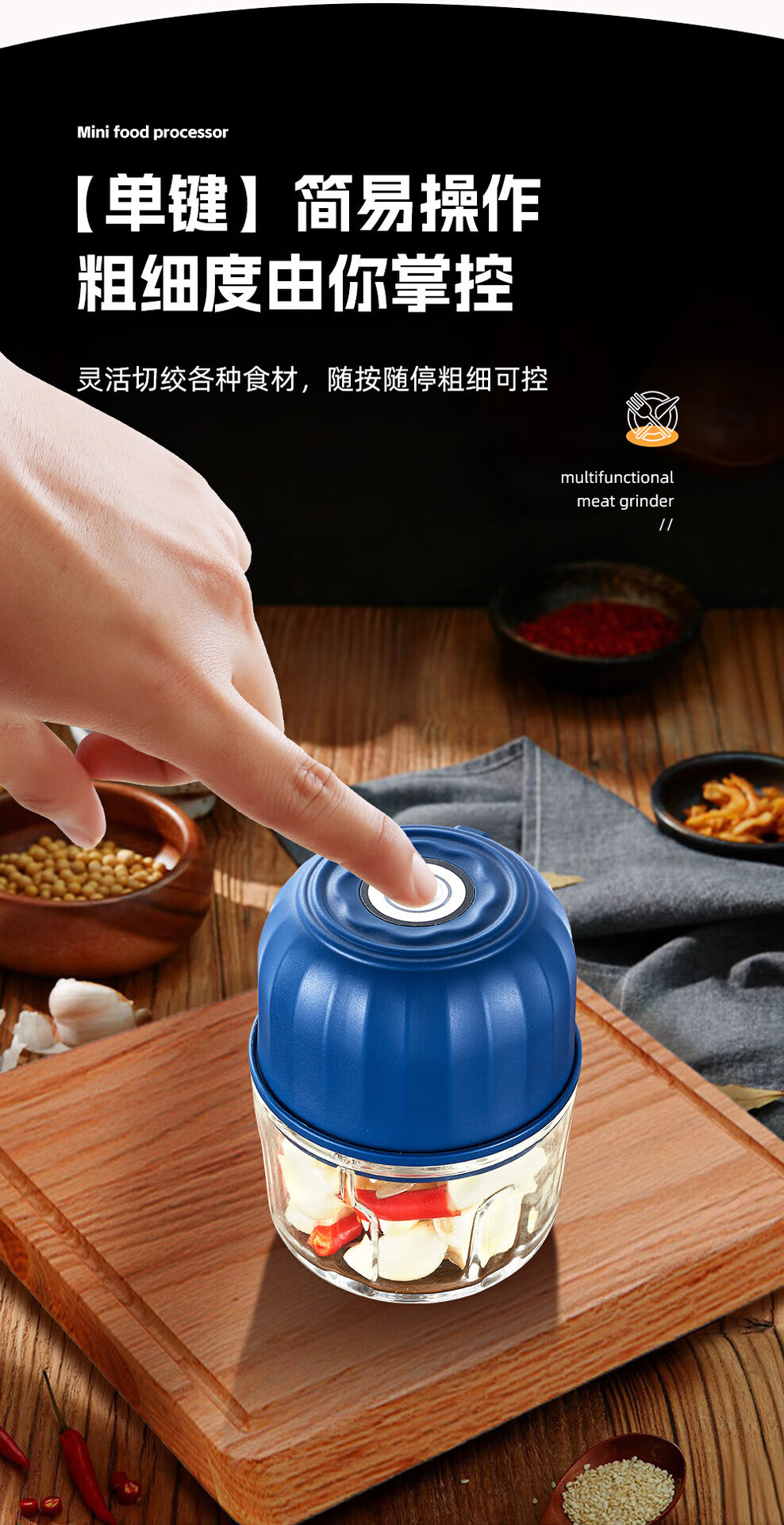 电动捣蒜神器蒜末打蒜器捣蒜搅碎机家用小型辅绞肉机便携搅蒜器 浅绿色6刀