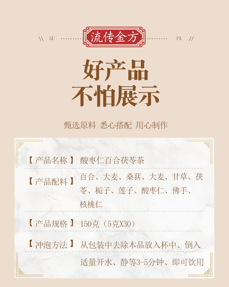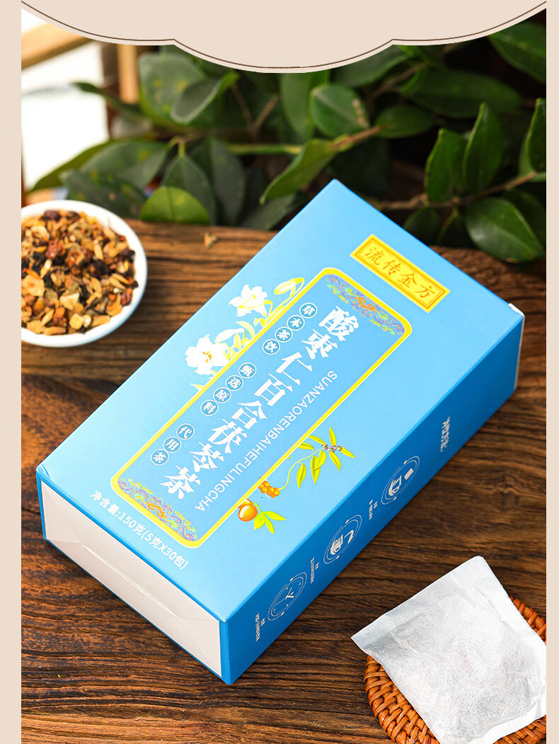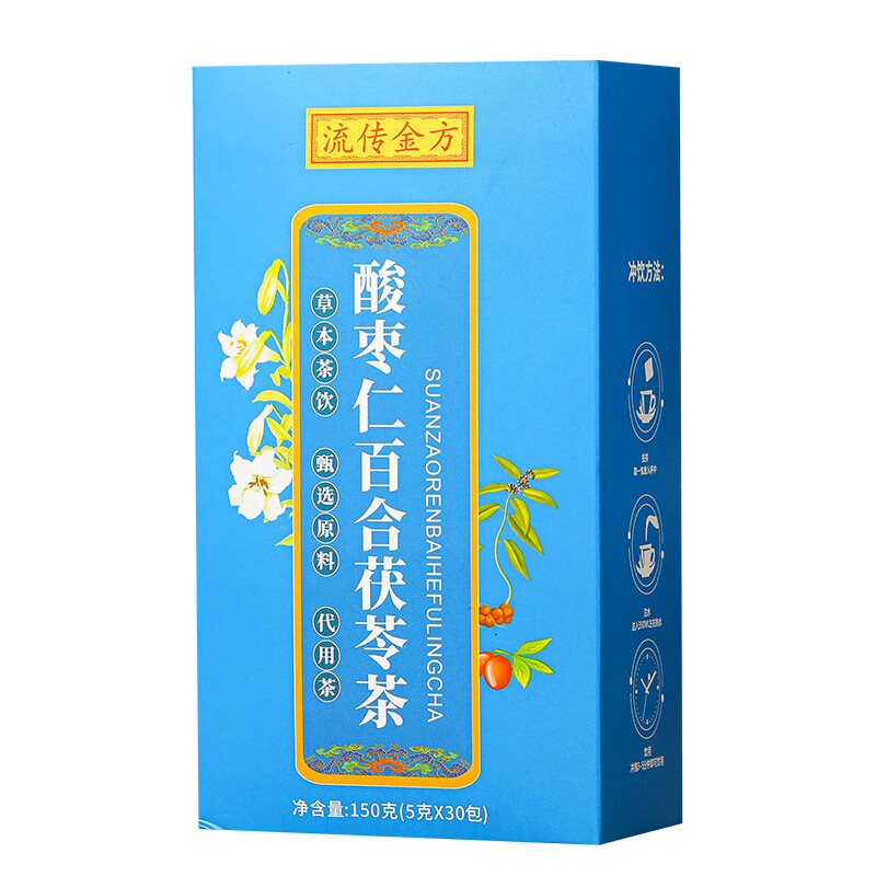 流传金方酸枣仁百合茯苓茶150克30包 枣睡绵茶茶袋泡茶花茶 酸枣仁百合茯苓茶(盒装袋泡茶150克)
