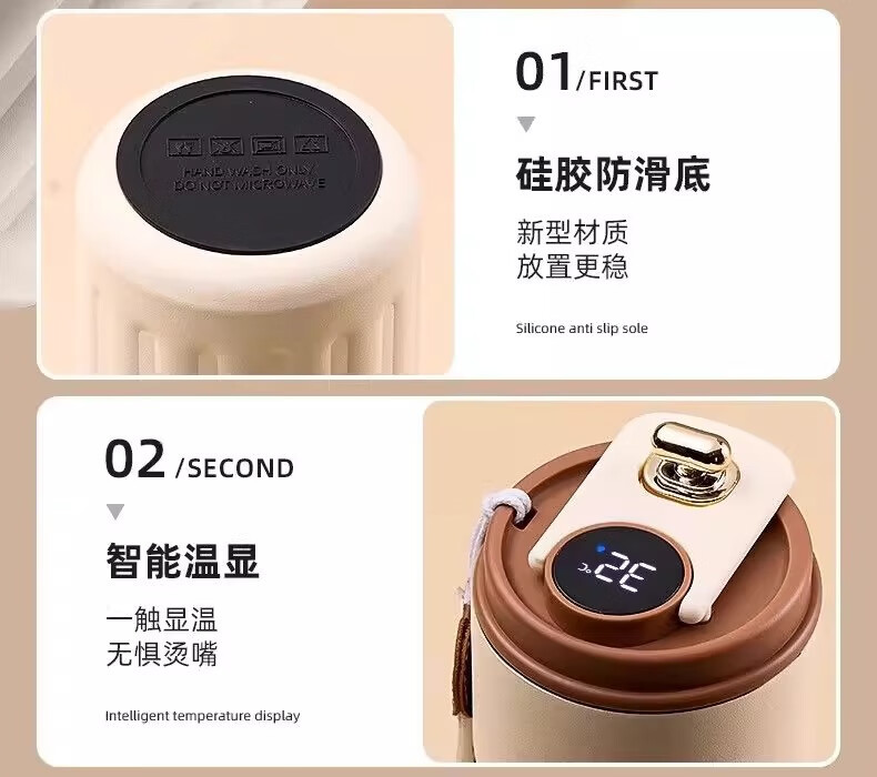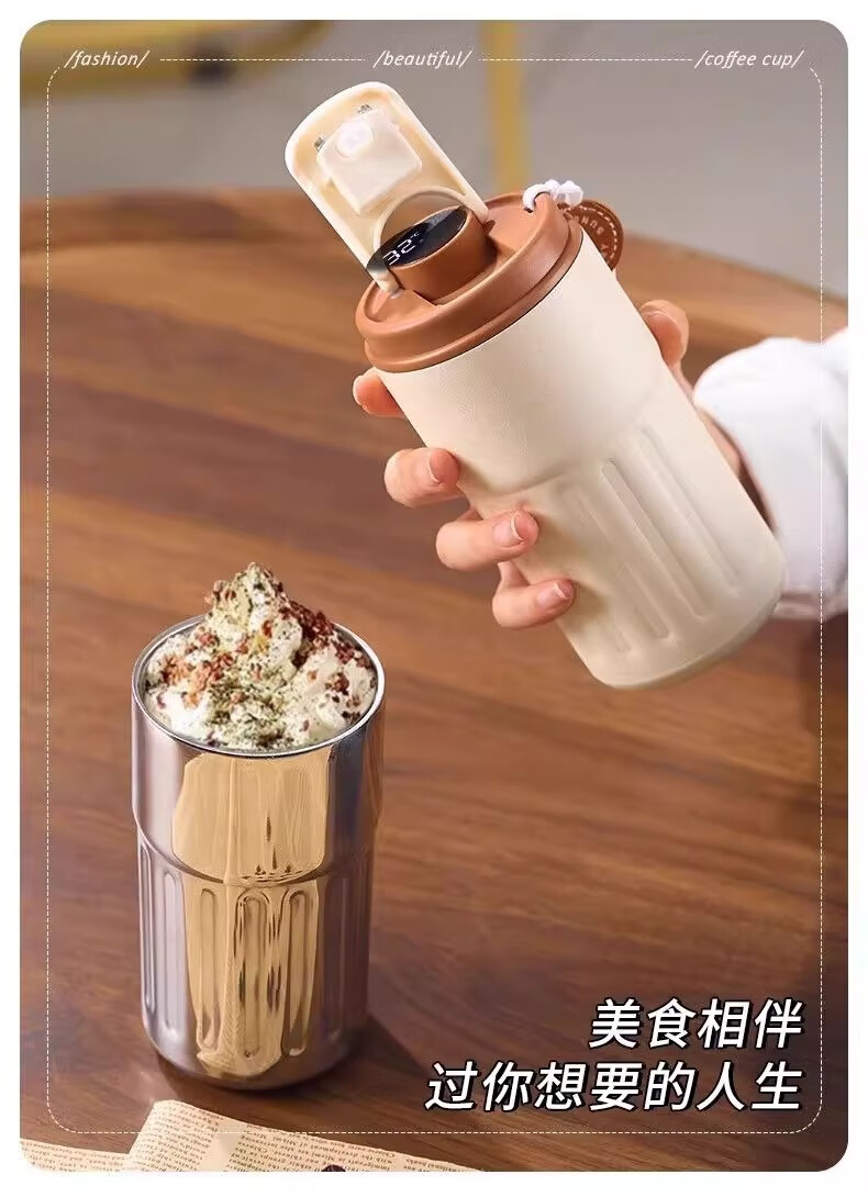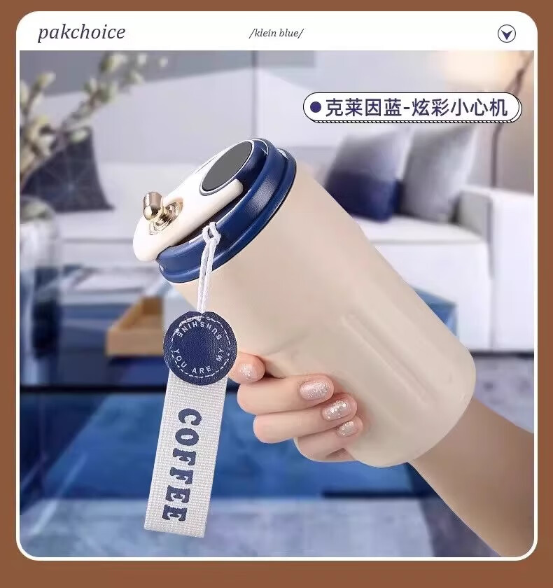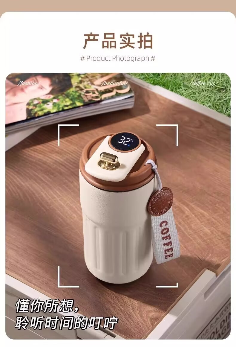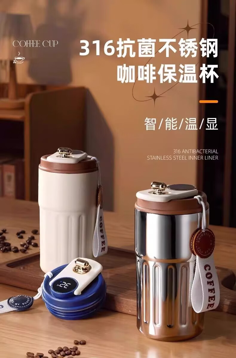 其他家新款智能温显316不锈钢保温杯男女咖啡杯高颜值便携简约水杯 渐变绿450ml【带温显】 ML