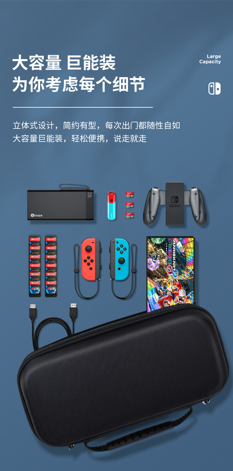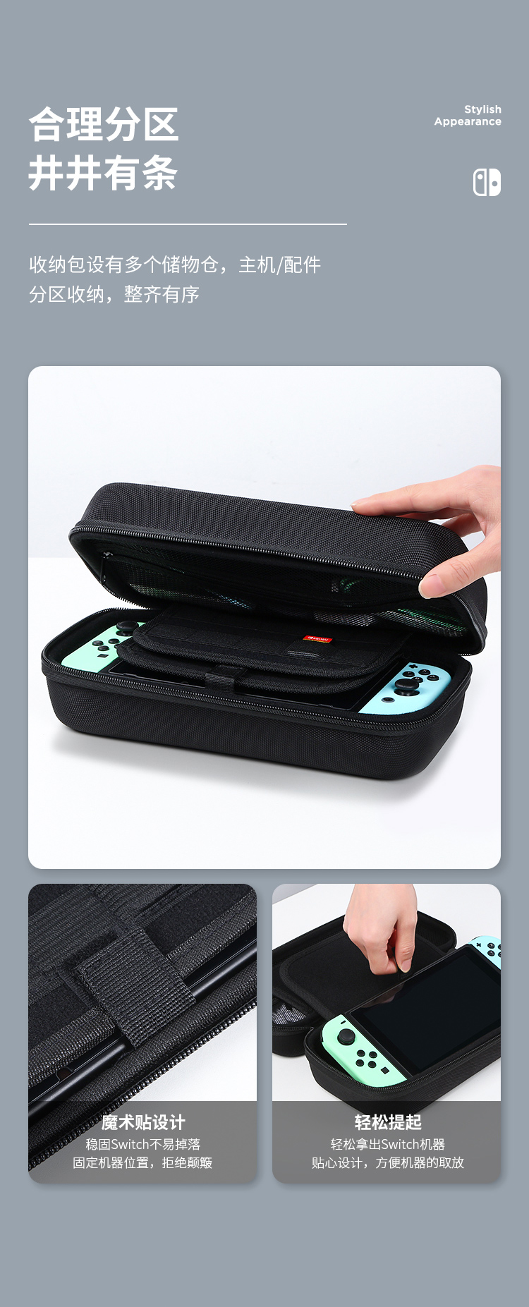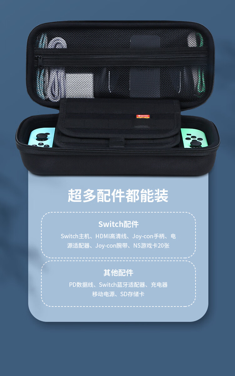 毕亚兹 switch收纳包大容量可放充电器 NS游戏机 OLED保护包硬壳包周边配件 多功能便携收纳盒yx27