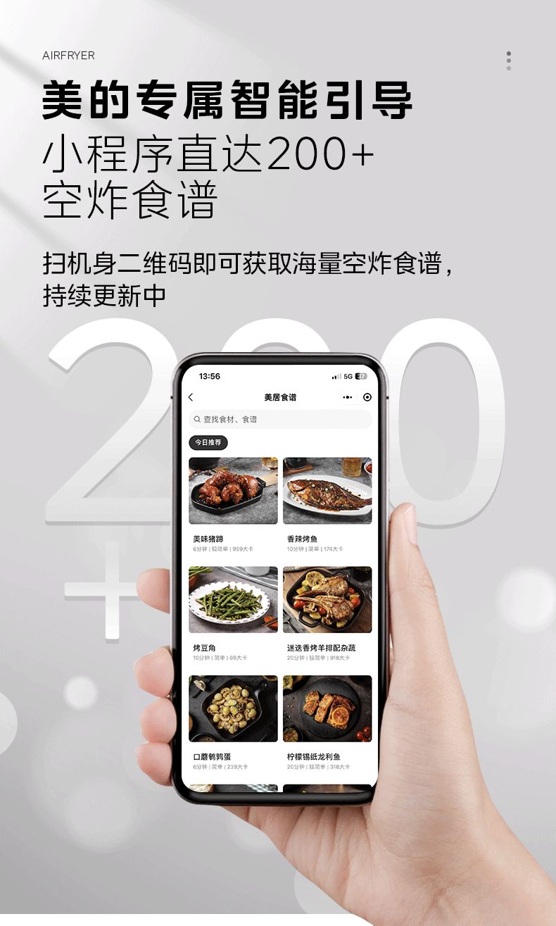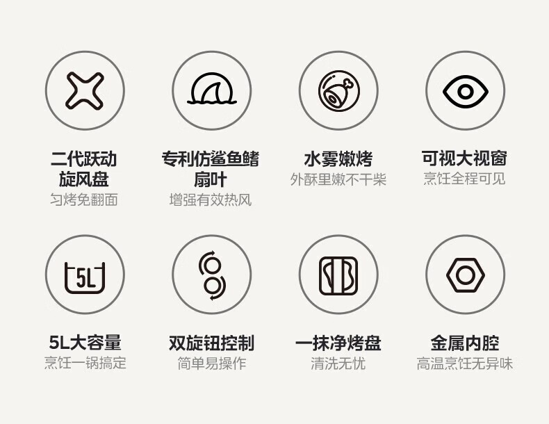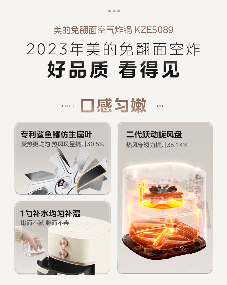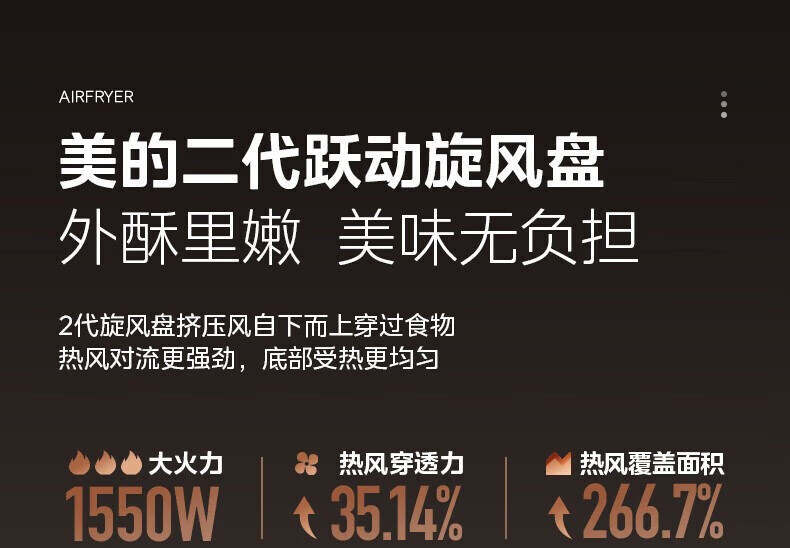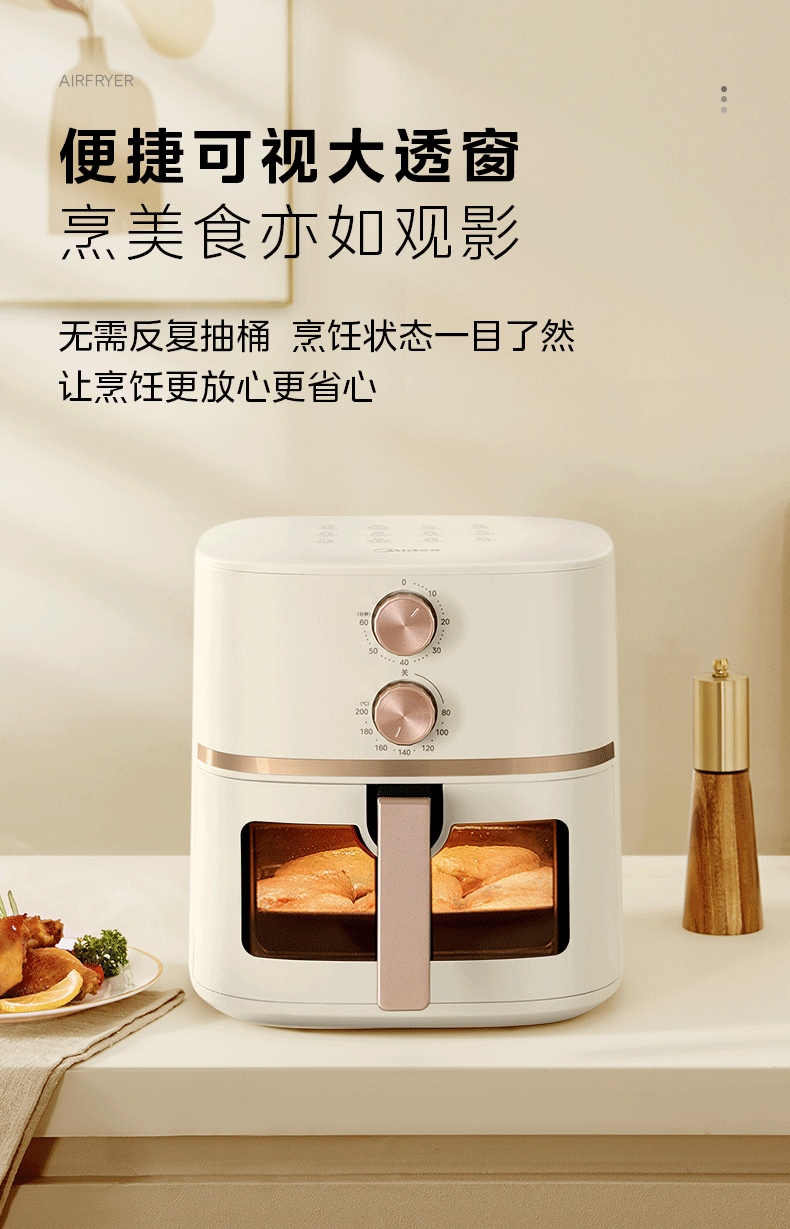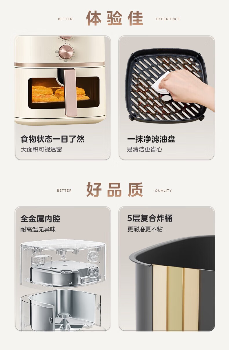美的(Midea)空气炸锅家用 5升可视不用翻面 微蒸汽多功能智能双旋控温电炸锅 可视窗口 电炸锅 5L 【不用翻面 蒸汽嫩炸】