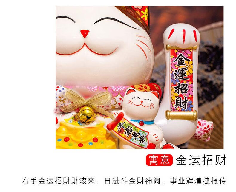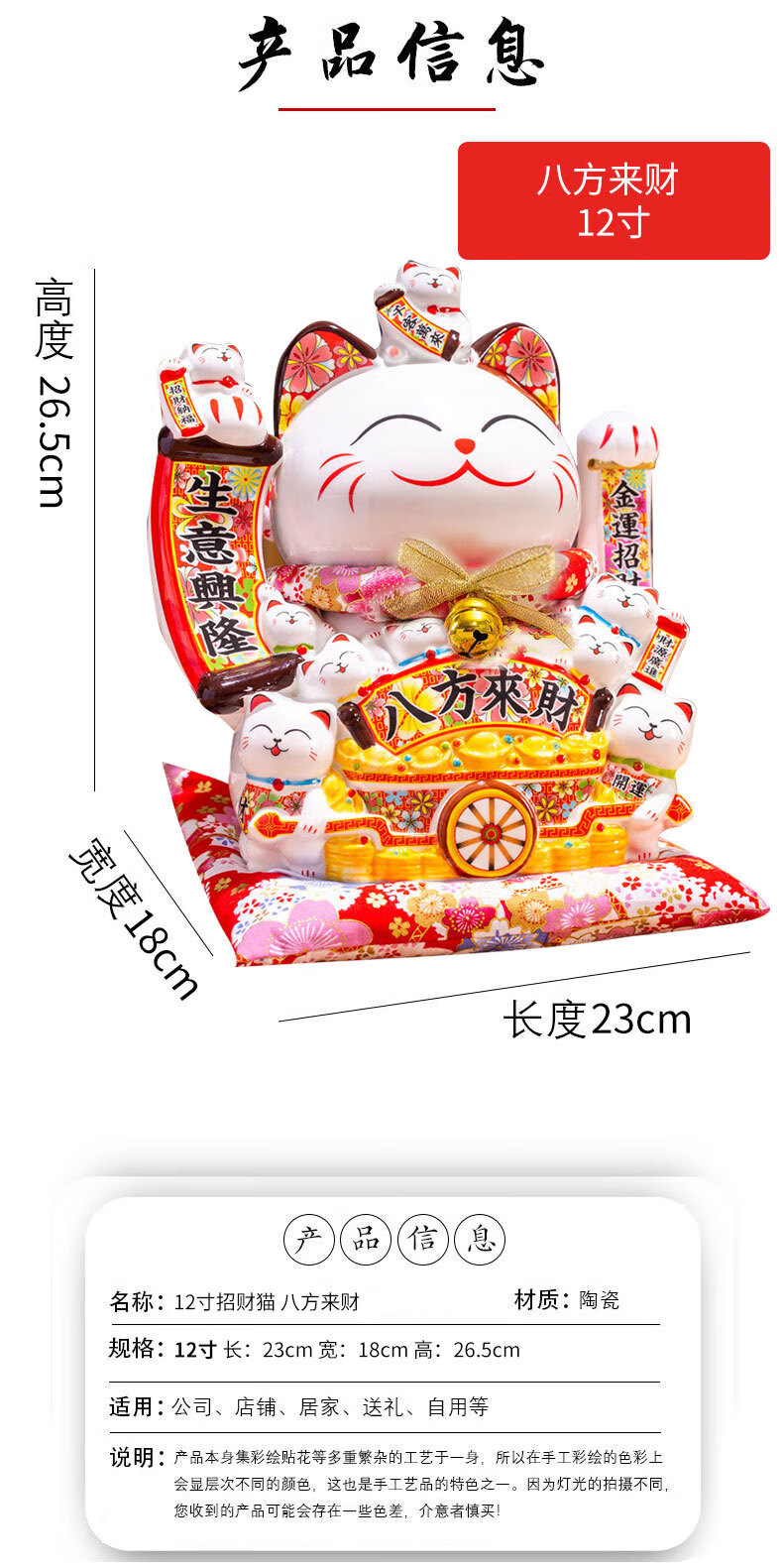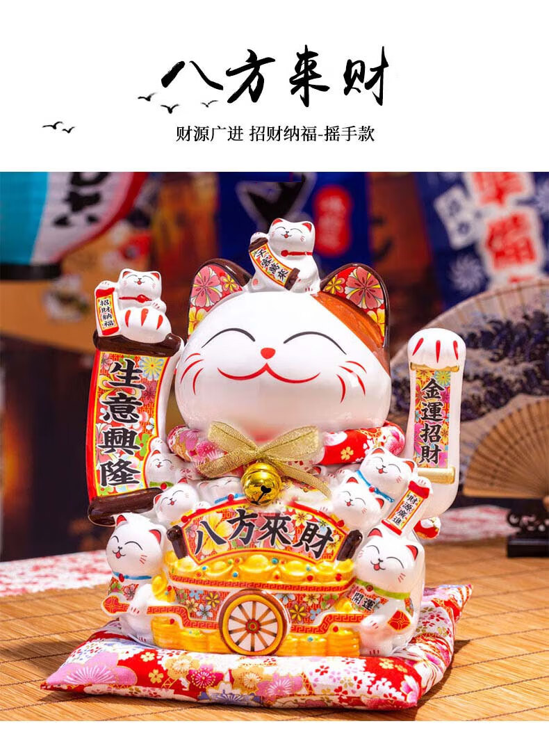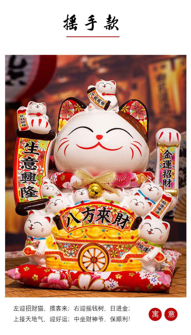 侑家良品招财猫自动摇手发财猫客厅摆件店铺开业热门商品乔迁礼物12寸大号