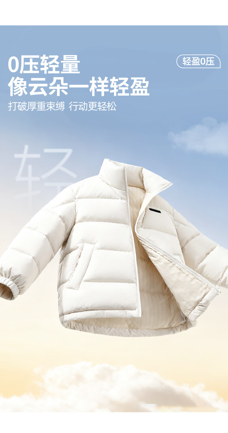 真维斯(Jeanswest)羽绒服男2025冬季日系简约纯色立领上衣男女同款加绒加厚短款外套