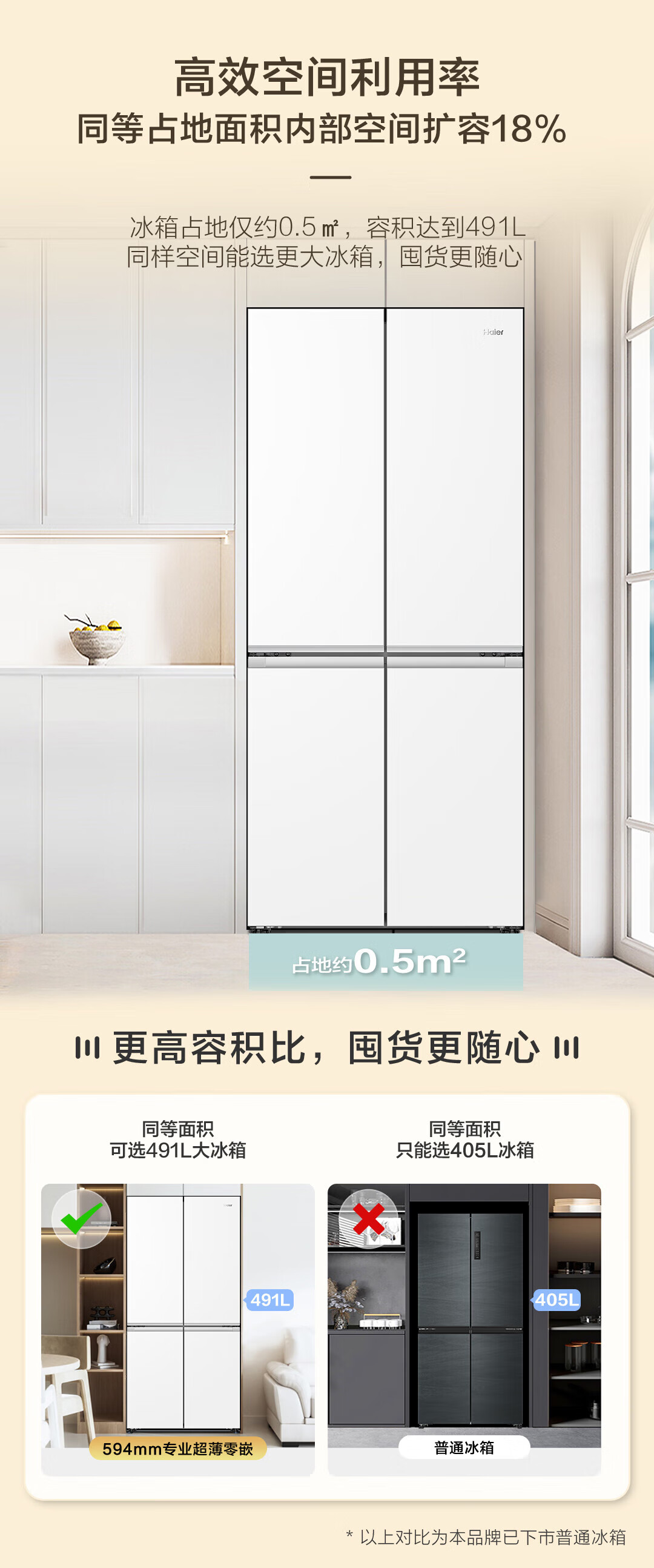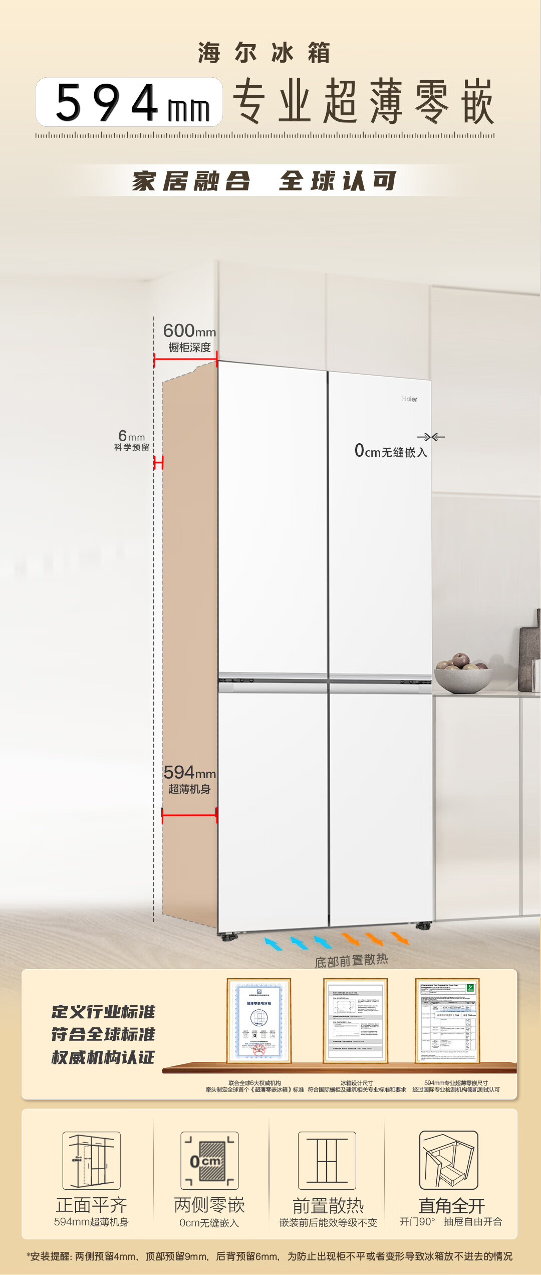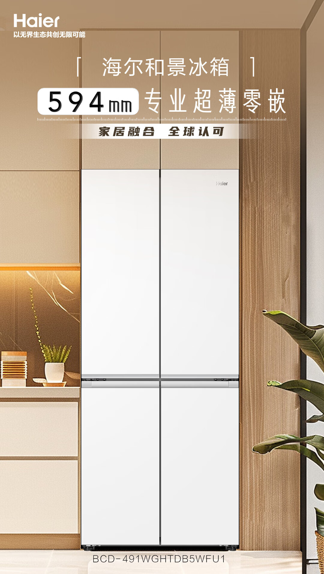 海尔【国家补贴20%】海尔冰箱491L大容量家用电器零嵌法式十字电冰箱风冷无霜超薄594cmm零嵌一级能效 491升超薄零嵌入式冰箱