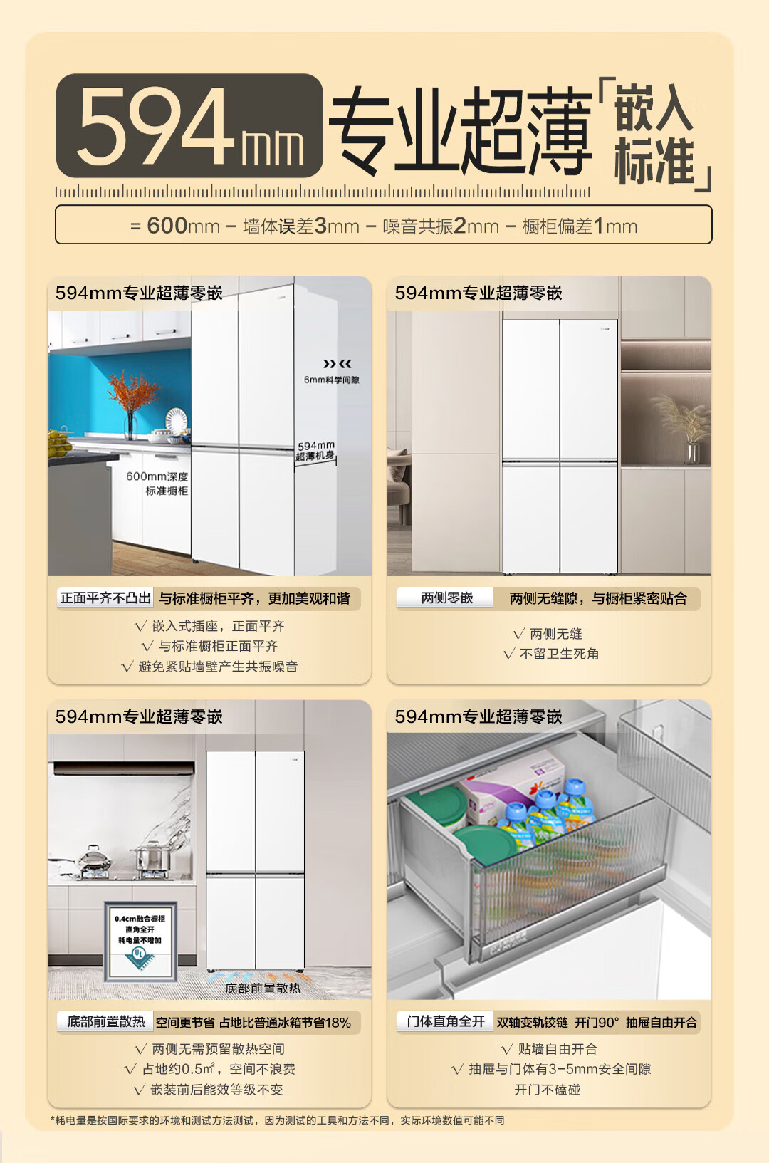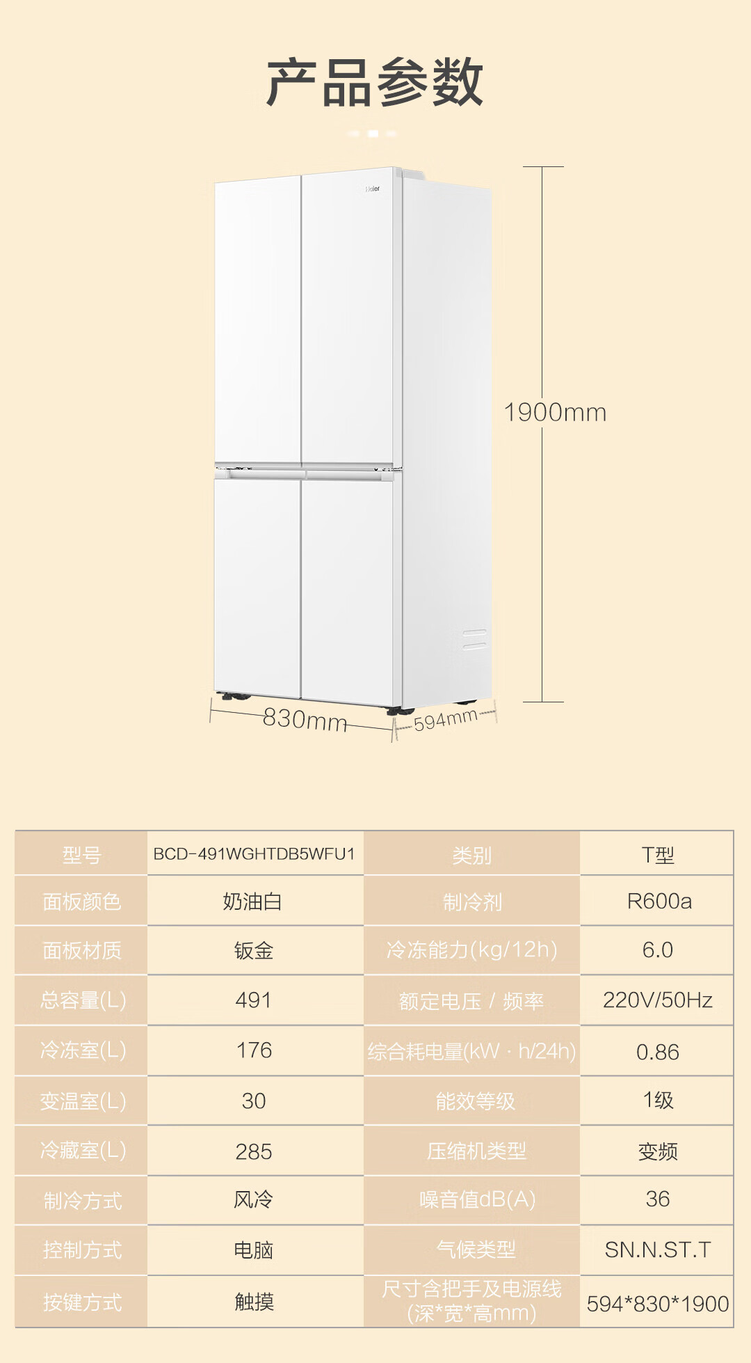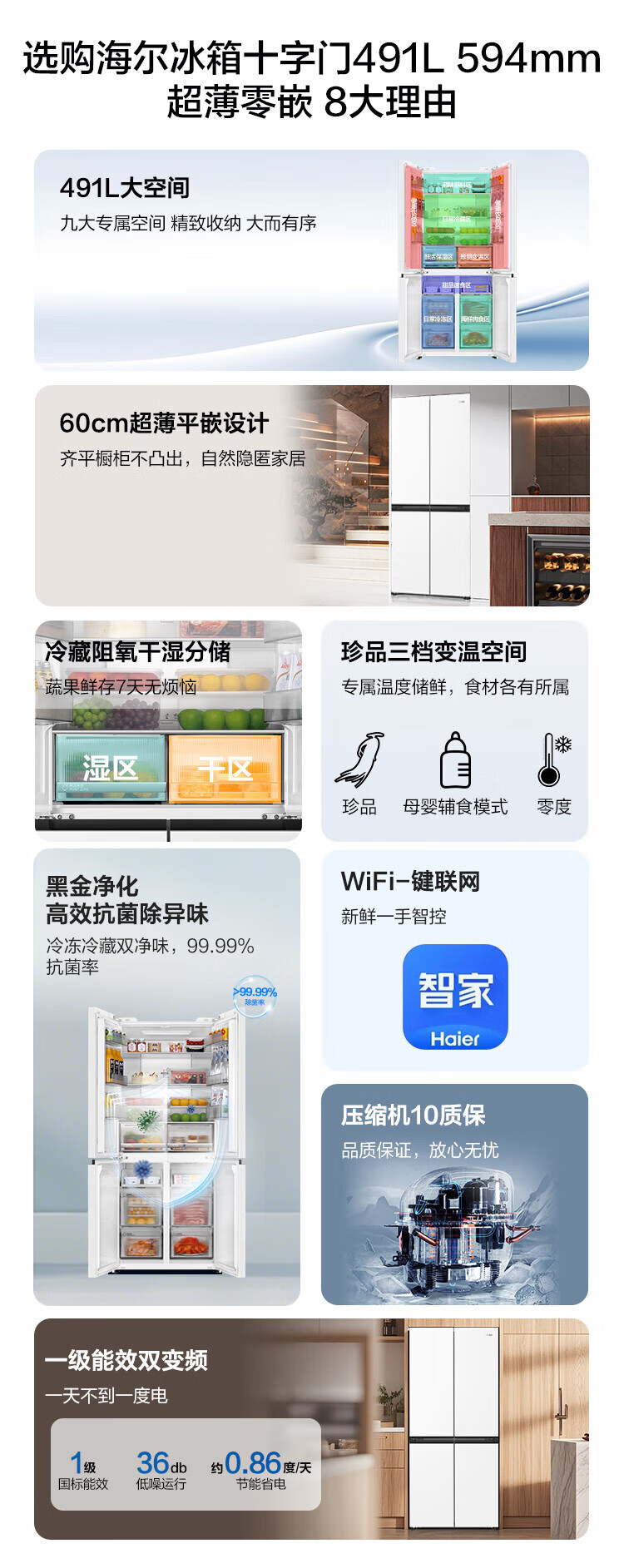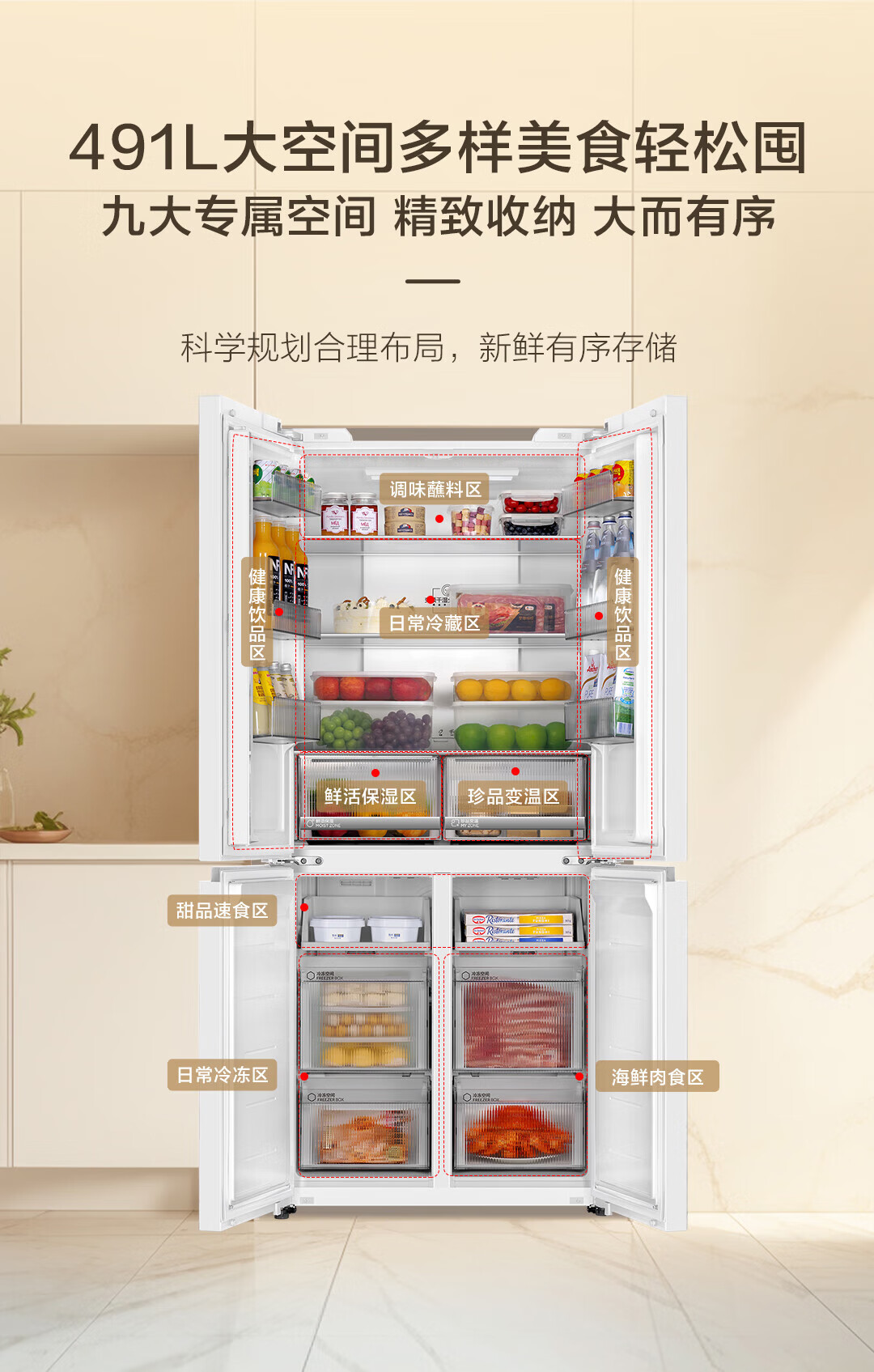 海尔【国家补贴20%】海尔冰箱491L大容量家用电器零嵌法式十字电冰箱风冷无霜超薄594cmm零嵌一级能效 491升超薄零嵌入式冰箱