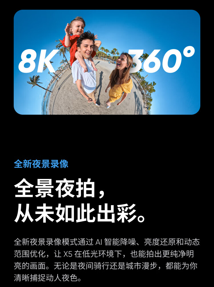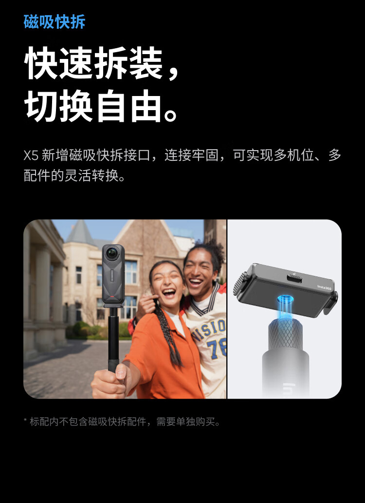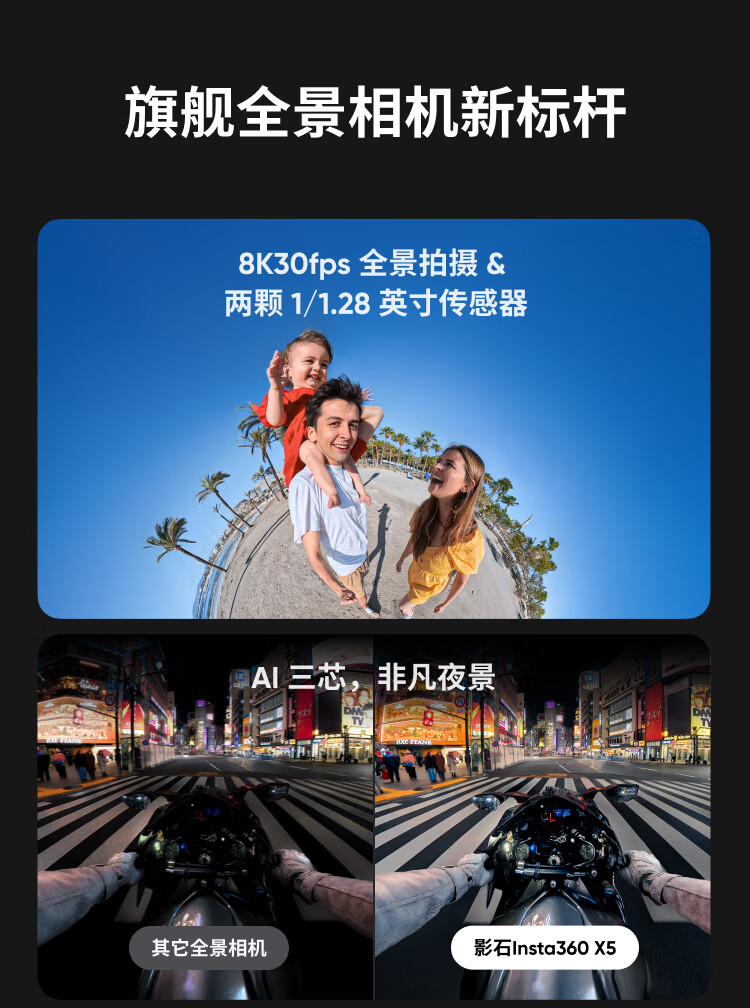 影石(Insta360)【新品】X5 全景运动相机8K高清防抖防水手持口袋摄像机旅行Vlog摩托车骑行滑雪相机(全能礼盒)