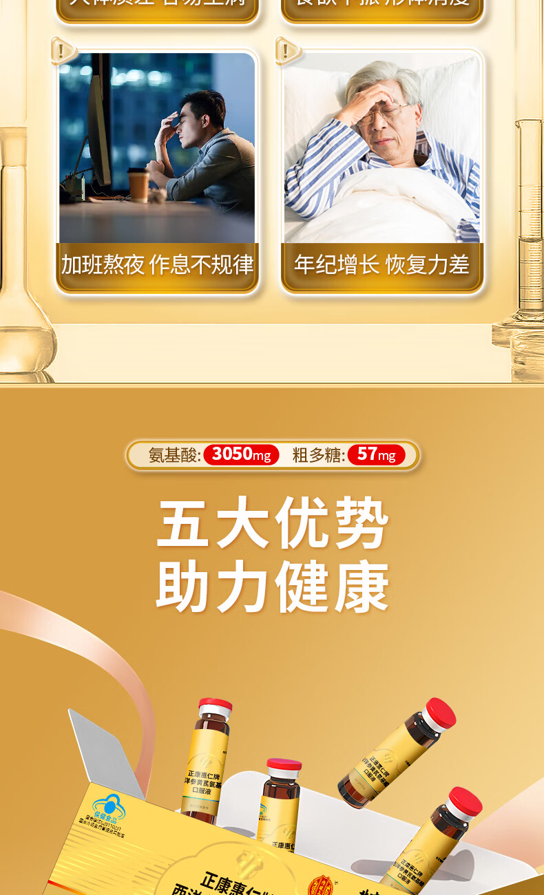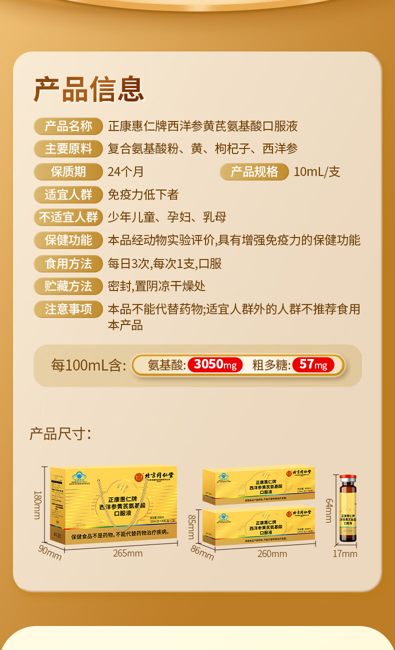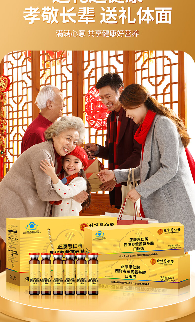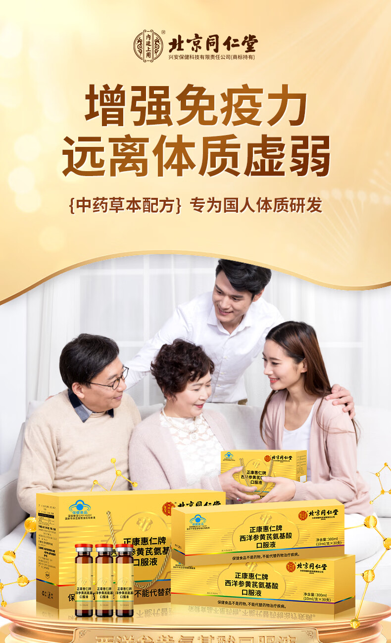 同仁堂西洋参黄芪氨基酸口服液中老年增强免疫10ml*30支*2盒送礼礼盒装