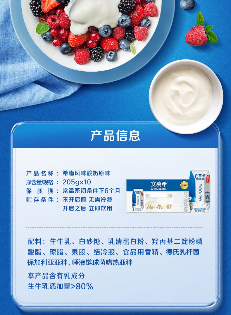 伊利安慕希原味酸奶205g*10盒/箱 常温酸奶营养早餐 205g*10盒/箱