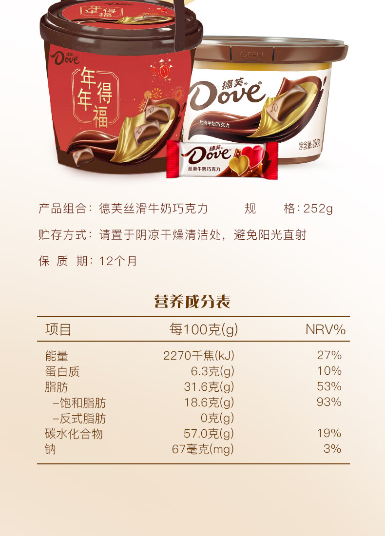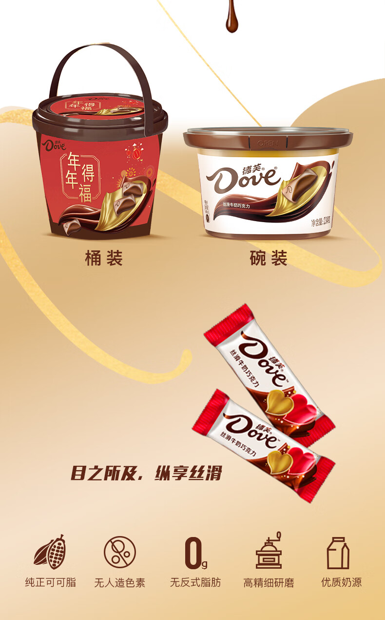 德芙(Dove)巧克力糖果礼盒生日礼物女生老婆女友零食tzt 德芙随机口味270g分享桶