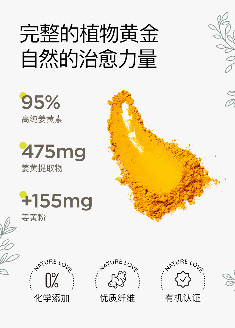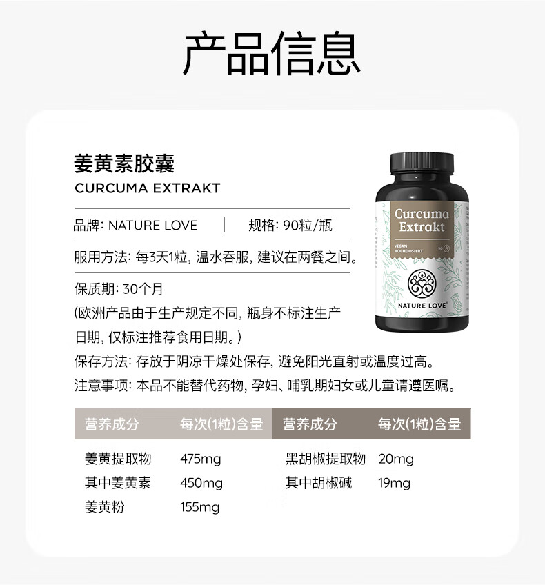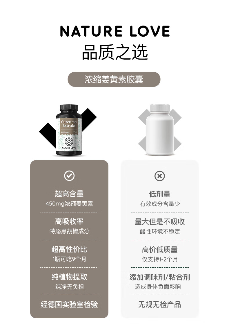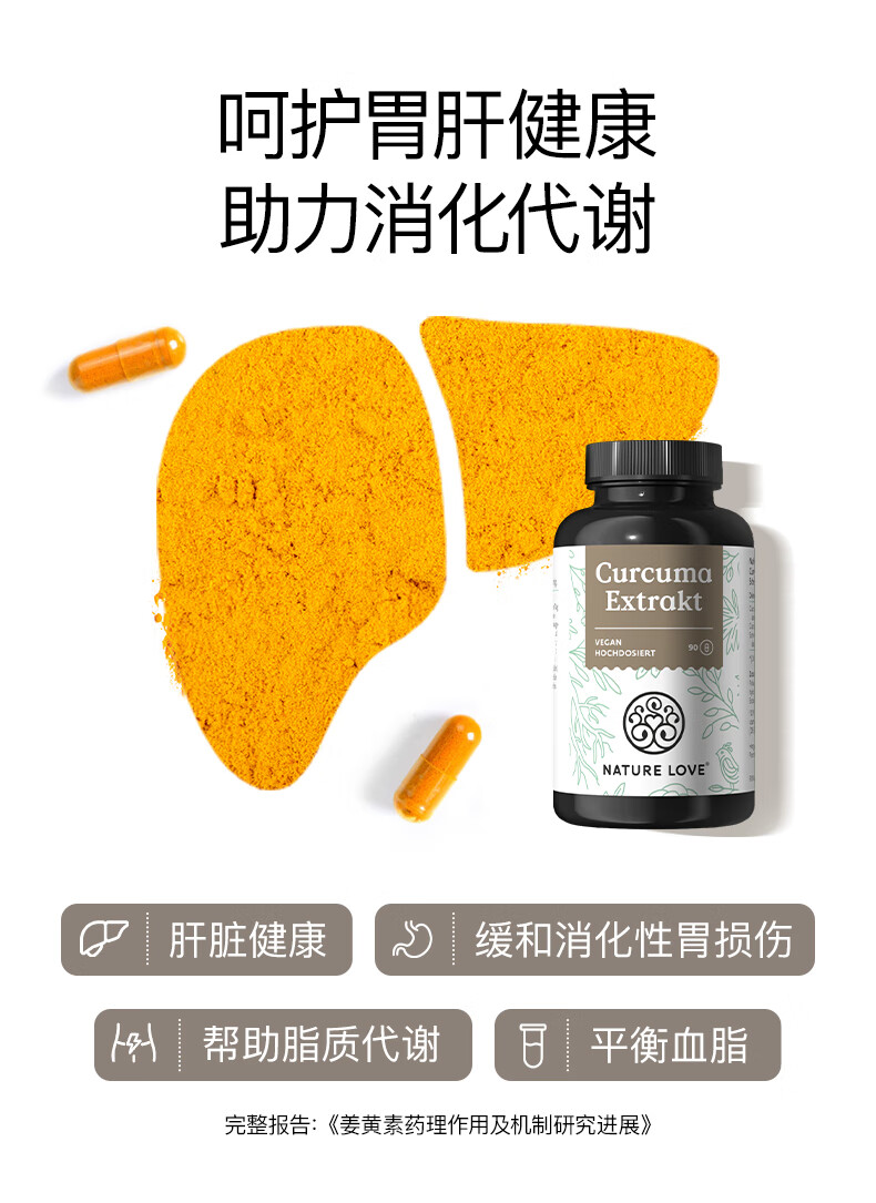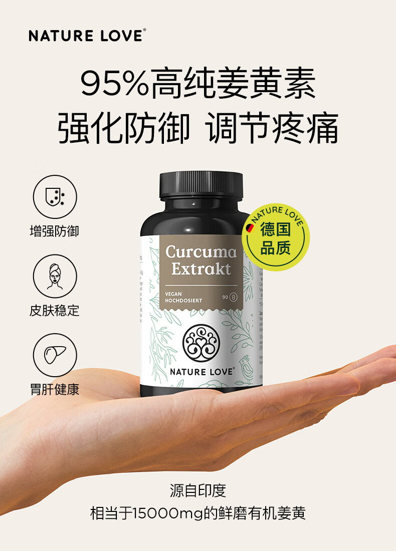 NATURE LOVE德国拜耳高含量高纯度护关节熬夜消化代谢有机姜黄素胶囊 90粒