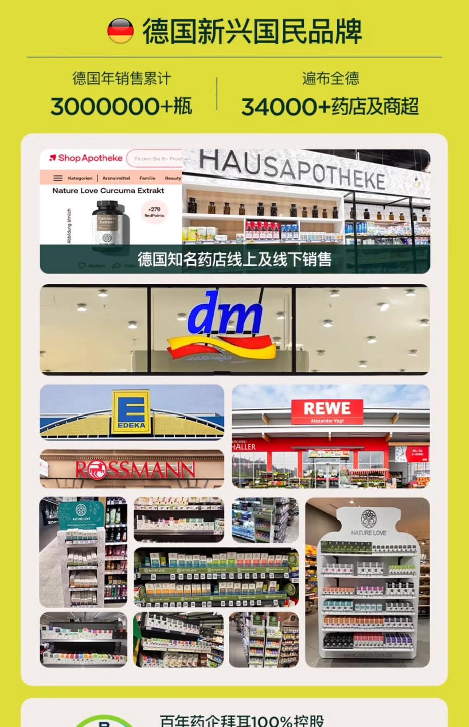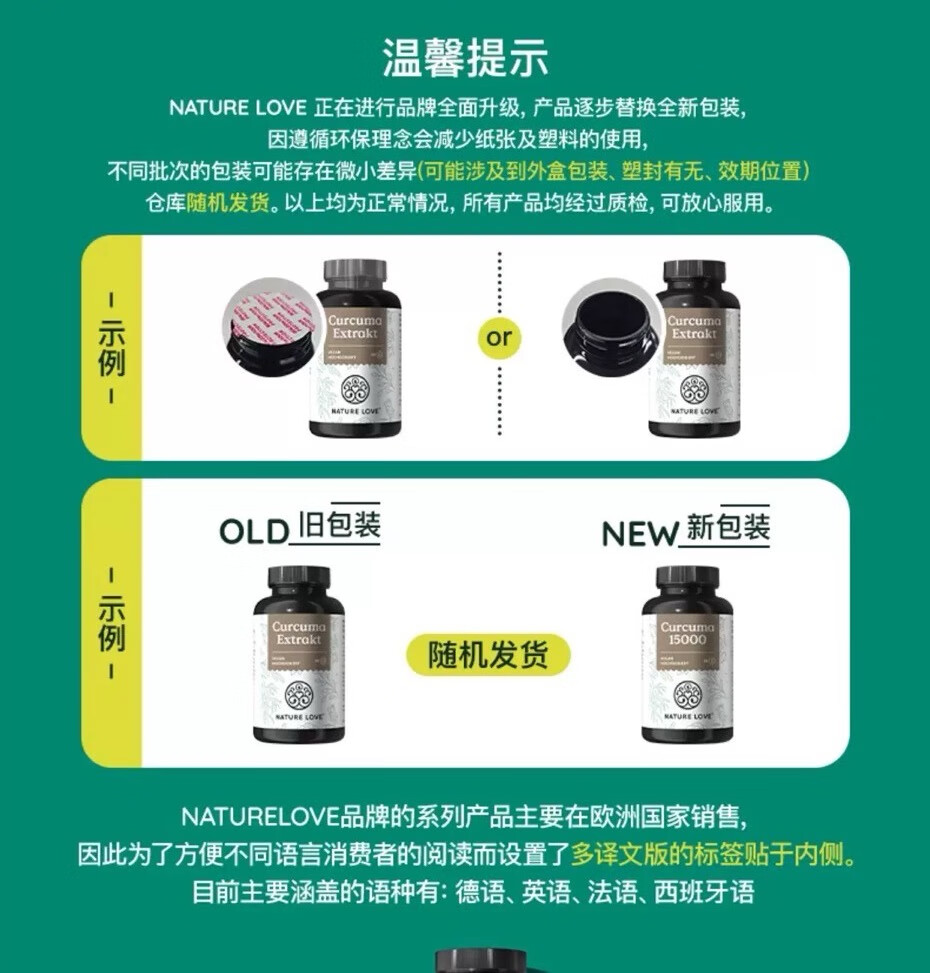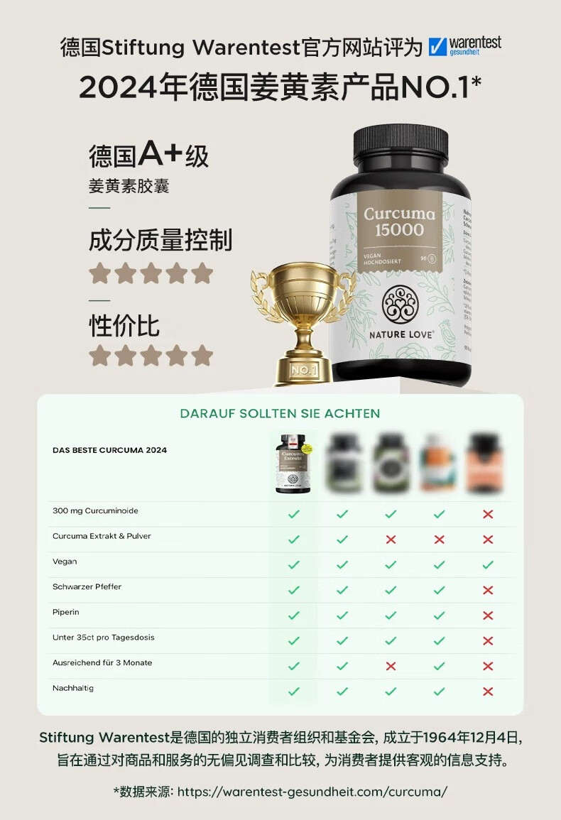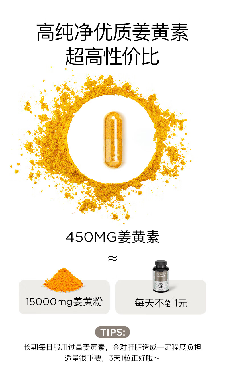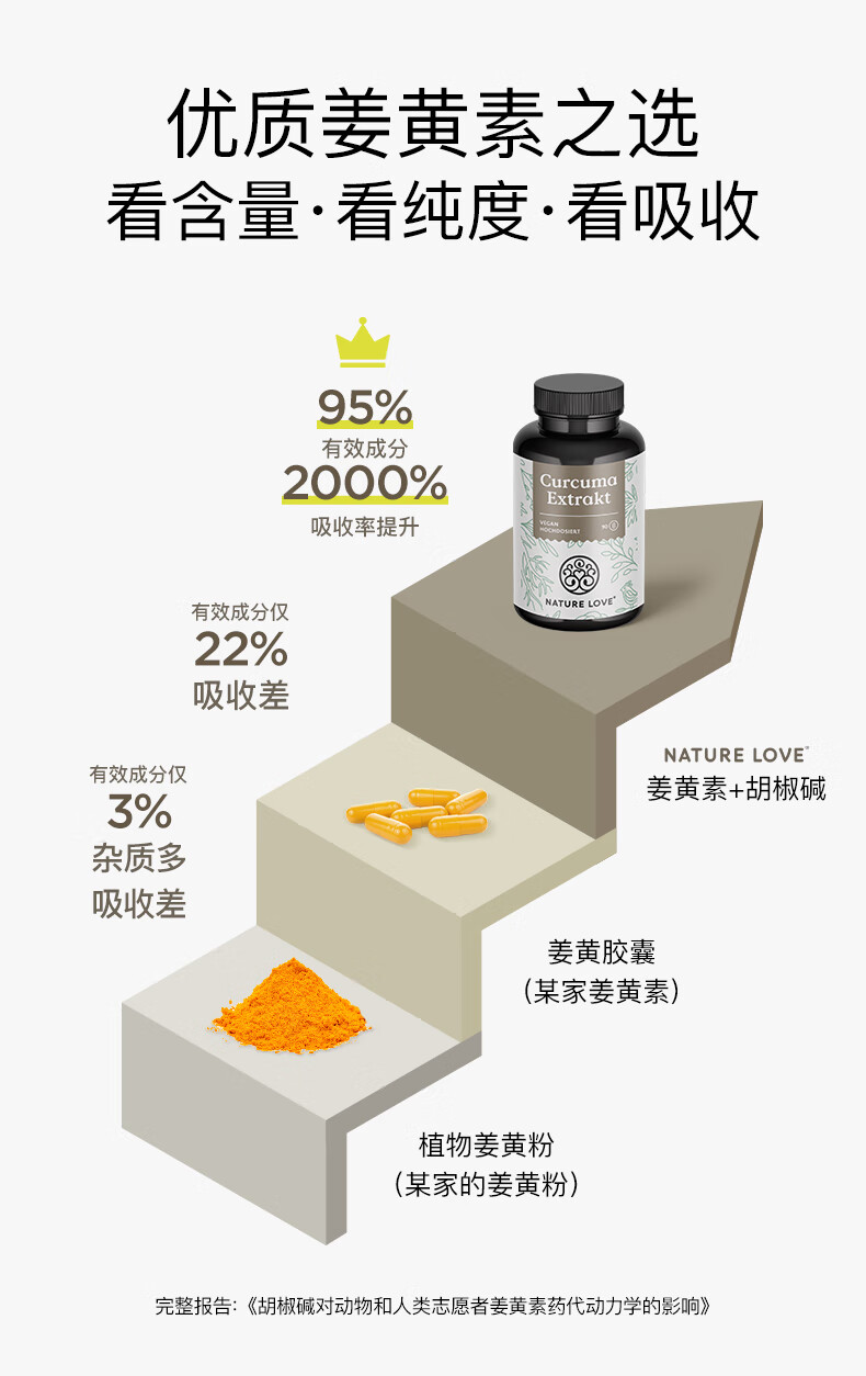 NATURE LOVE德国拜耳高含量高纯度护关节熬夜消化代谢有机姜黄素胶囊 90粒