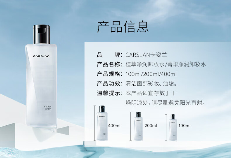 卡姿兰菁萃净润卸妆水深层清洁滋润肌肤温和不刺激清爽保湿眼唇脸三合一 菁萃净润卸妆水100ml