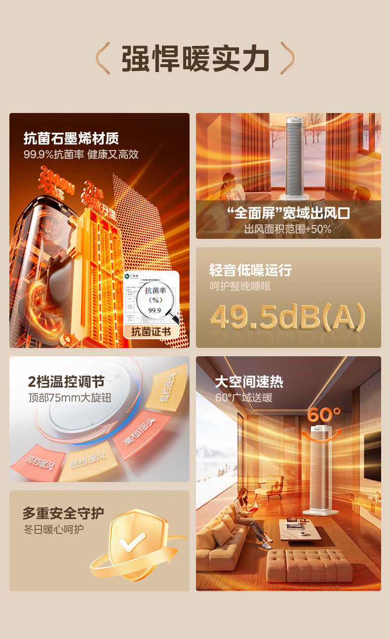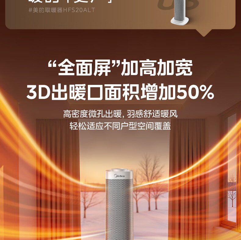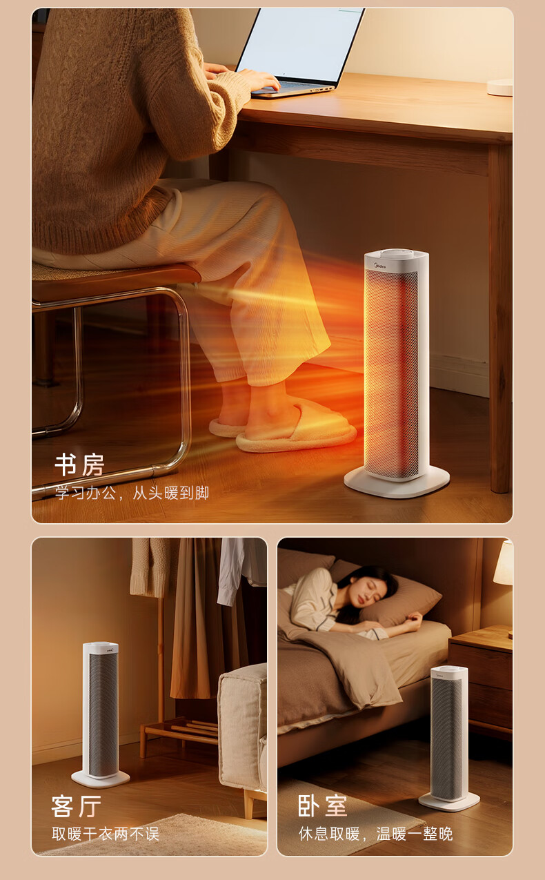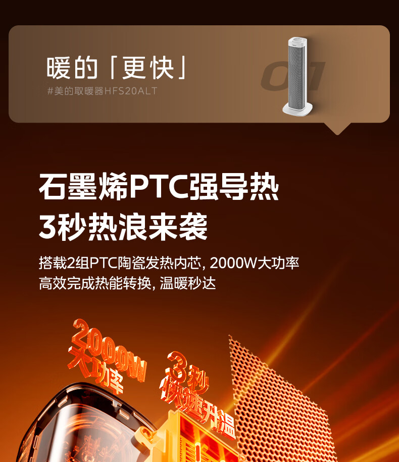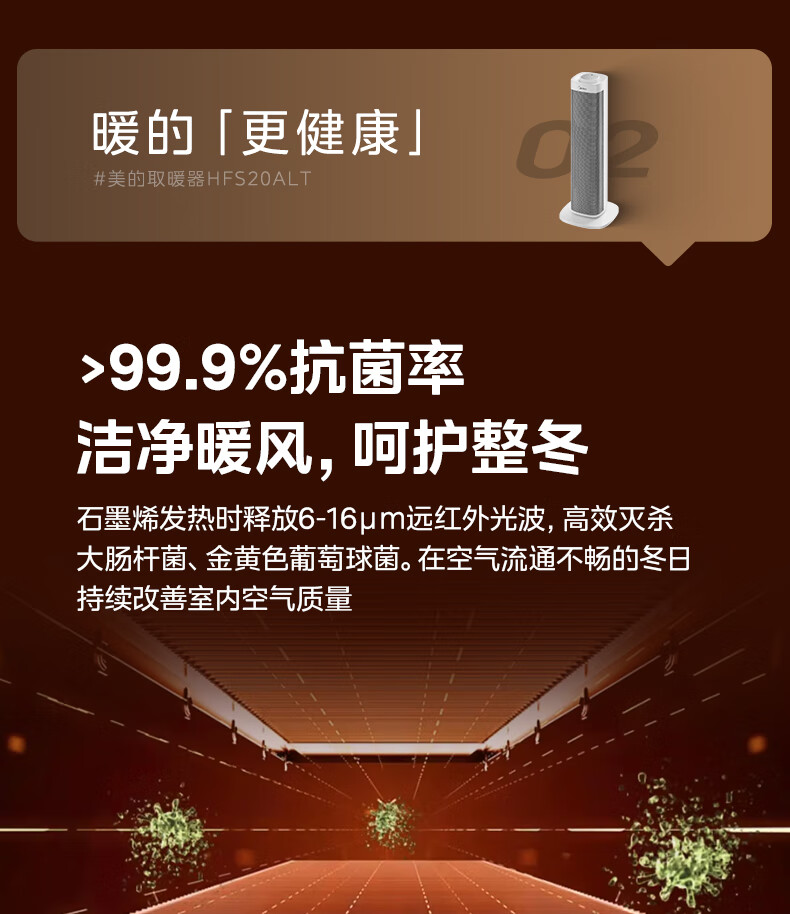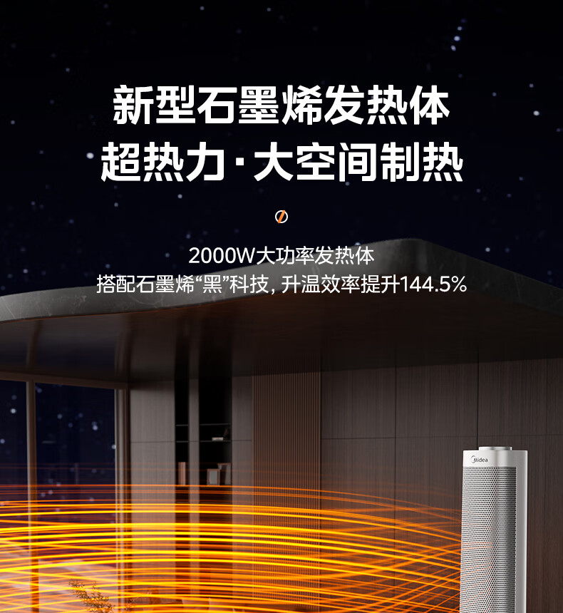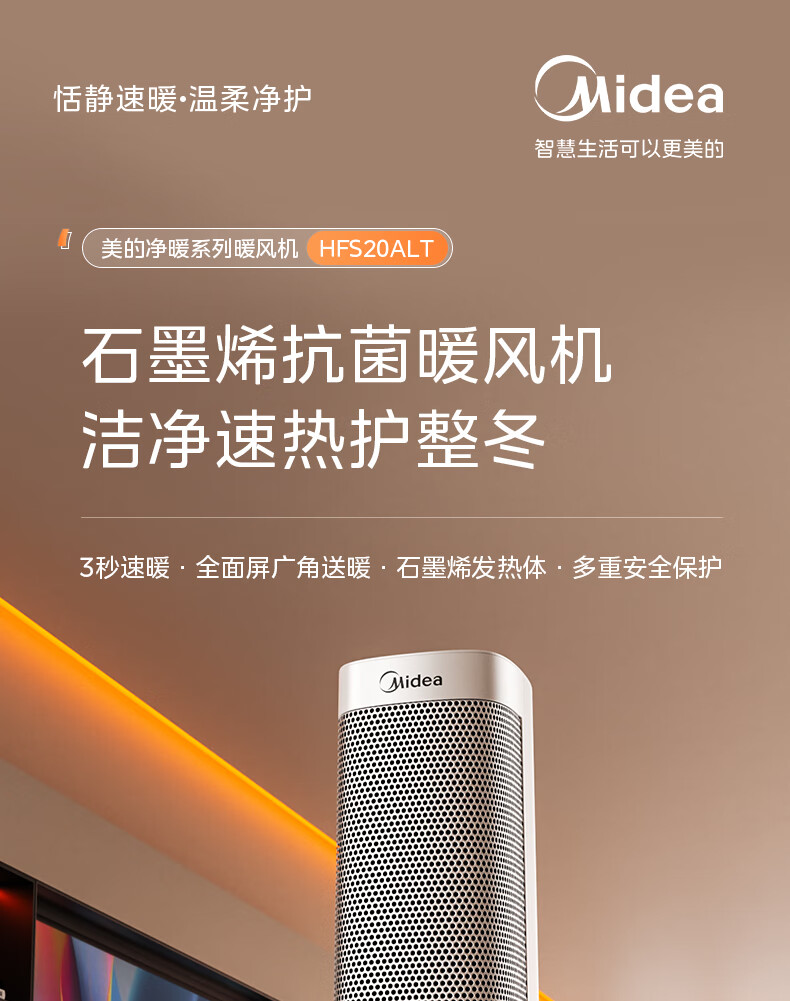 美的(Midea)石墨烯暖风机立式取暖器家用电暖器电暖风抗菌浴室小太阳节能电暖气热风机大功率HFS20ALT
