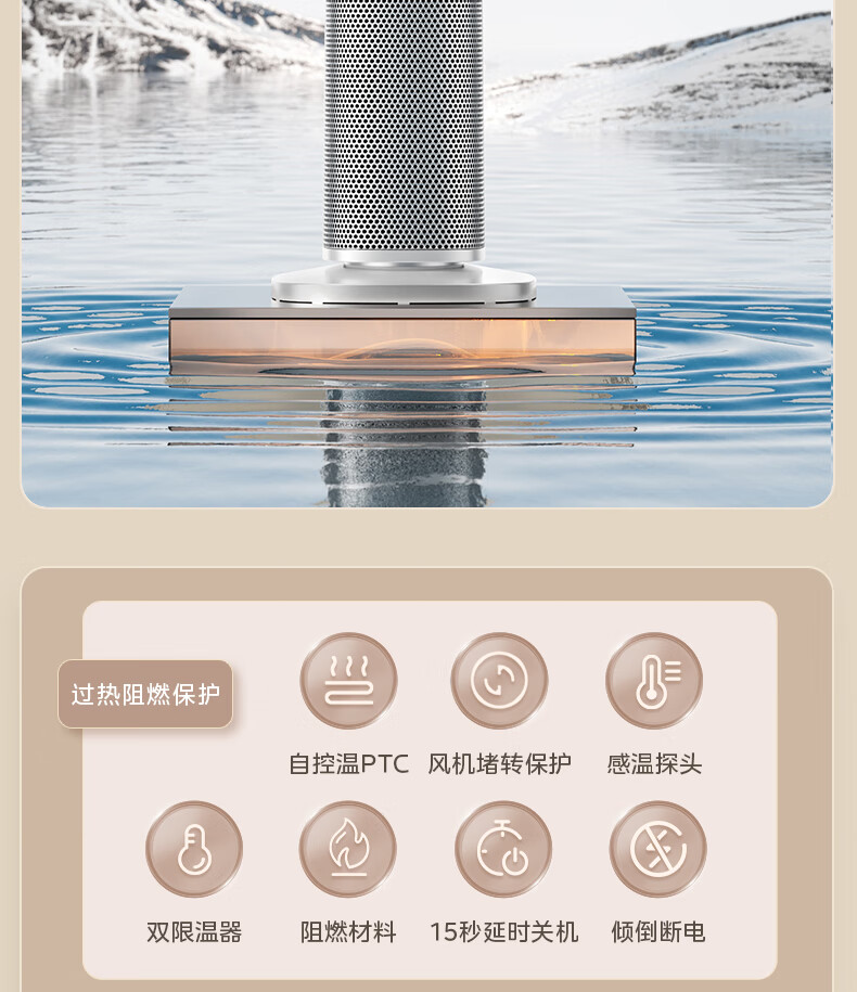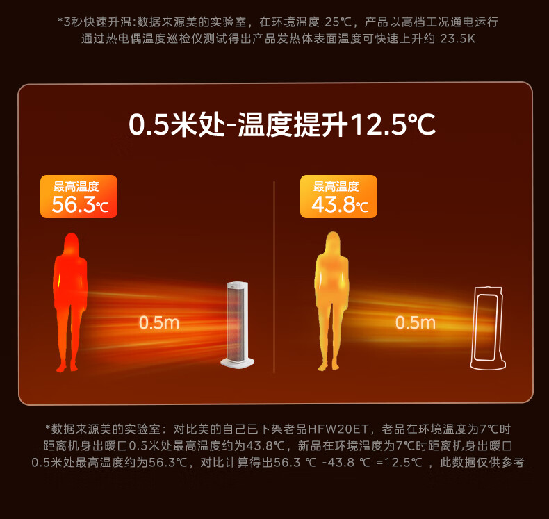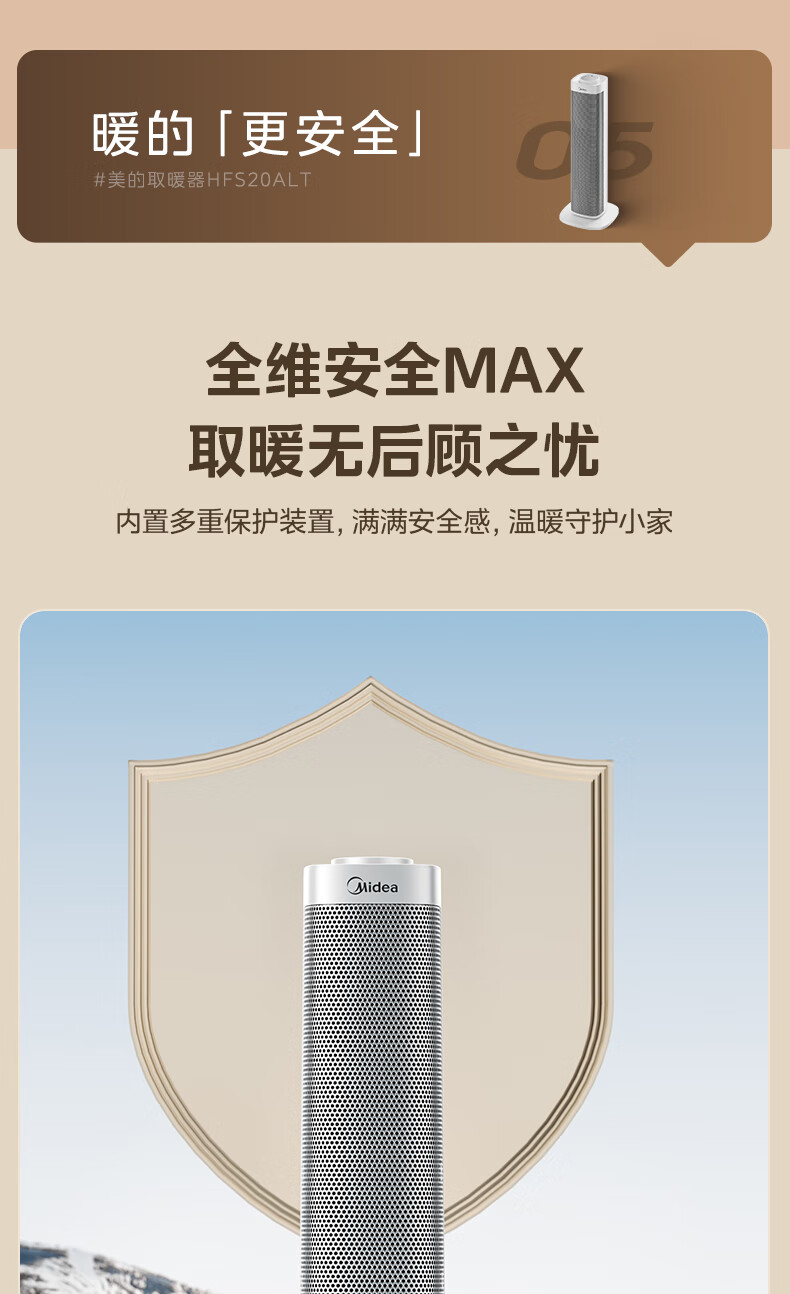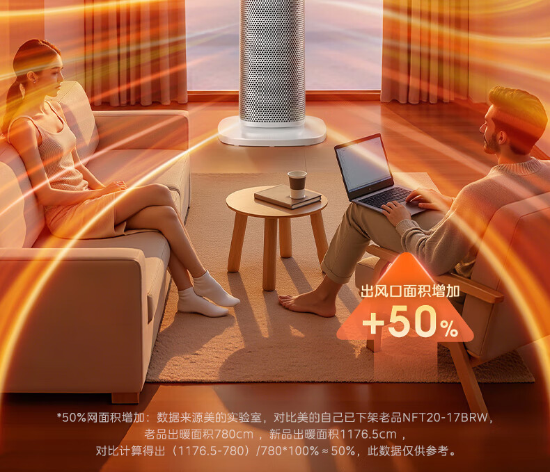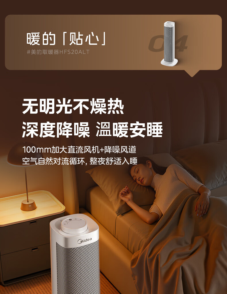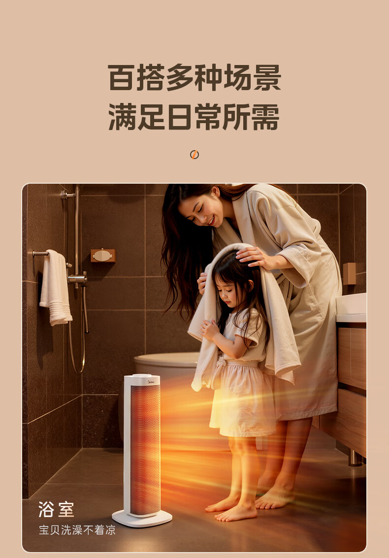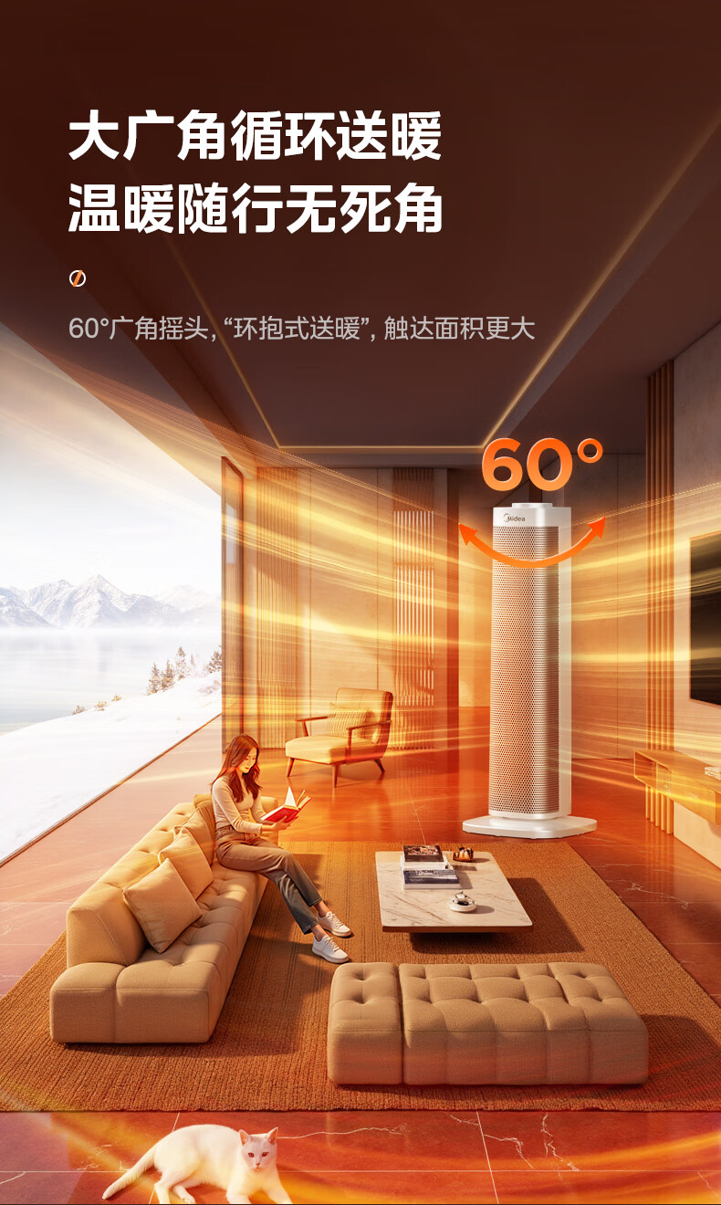 美的(Midea)石墨烯暖风机立式取暖器家用电暖器电暖风抗菌浴室小太阳节能电暖气热风机大功率HFS20ALT
