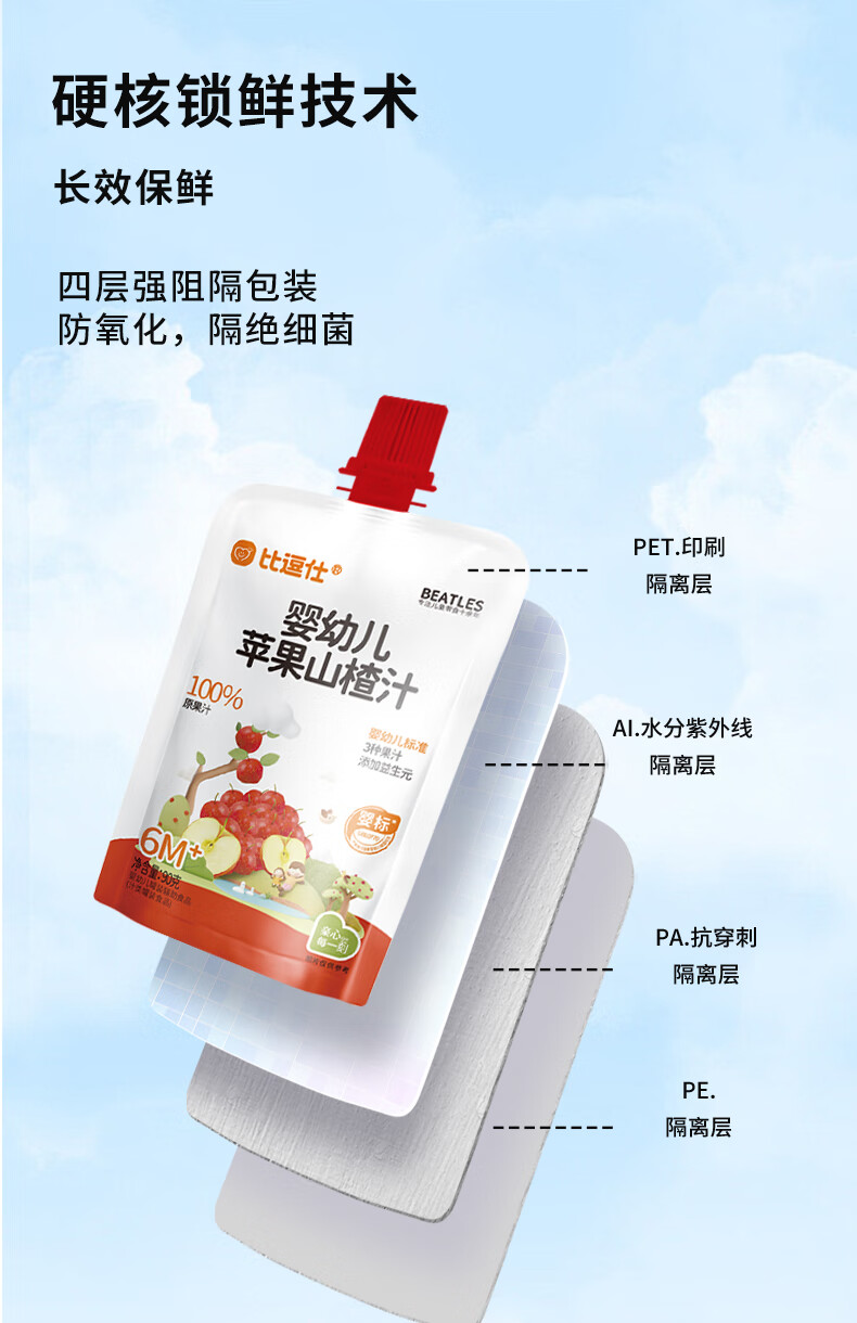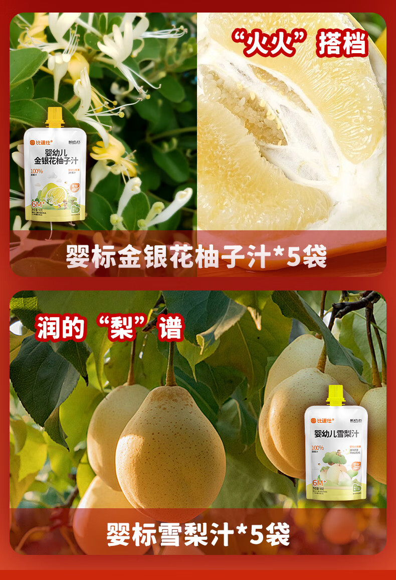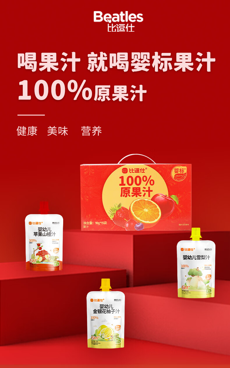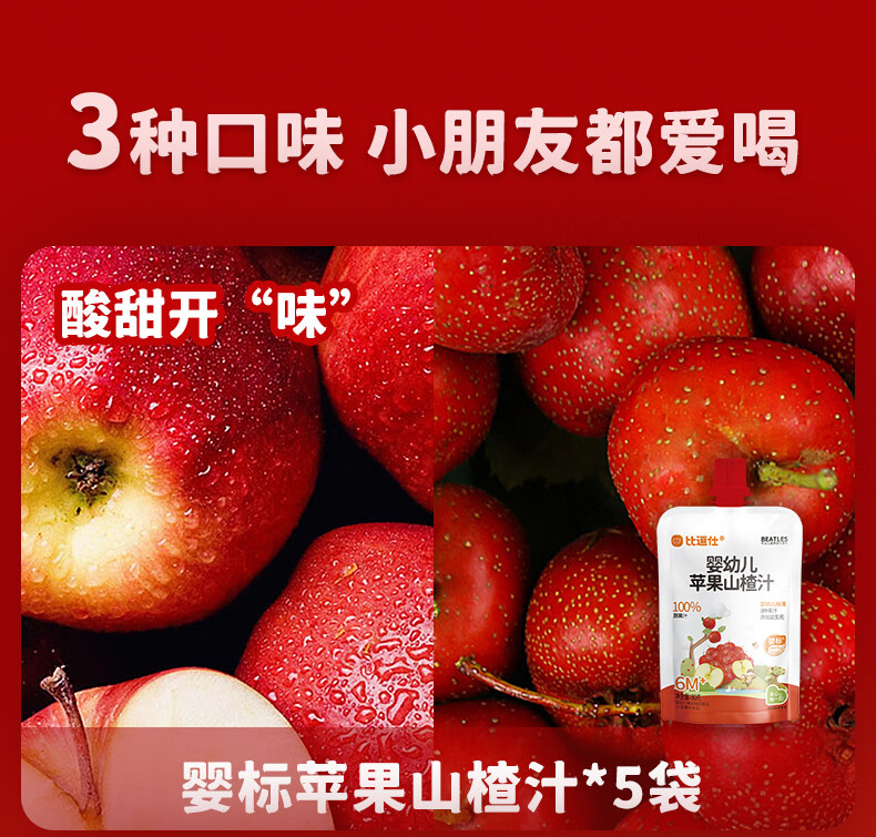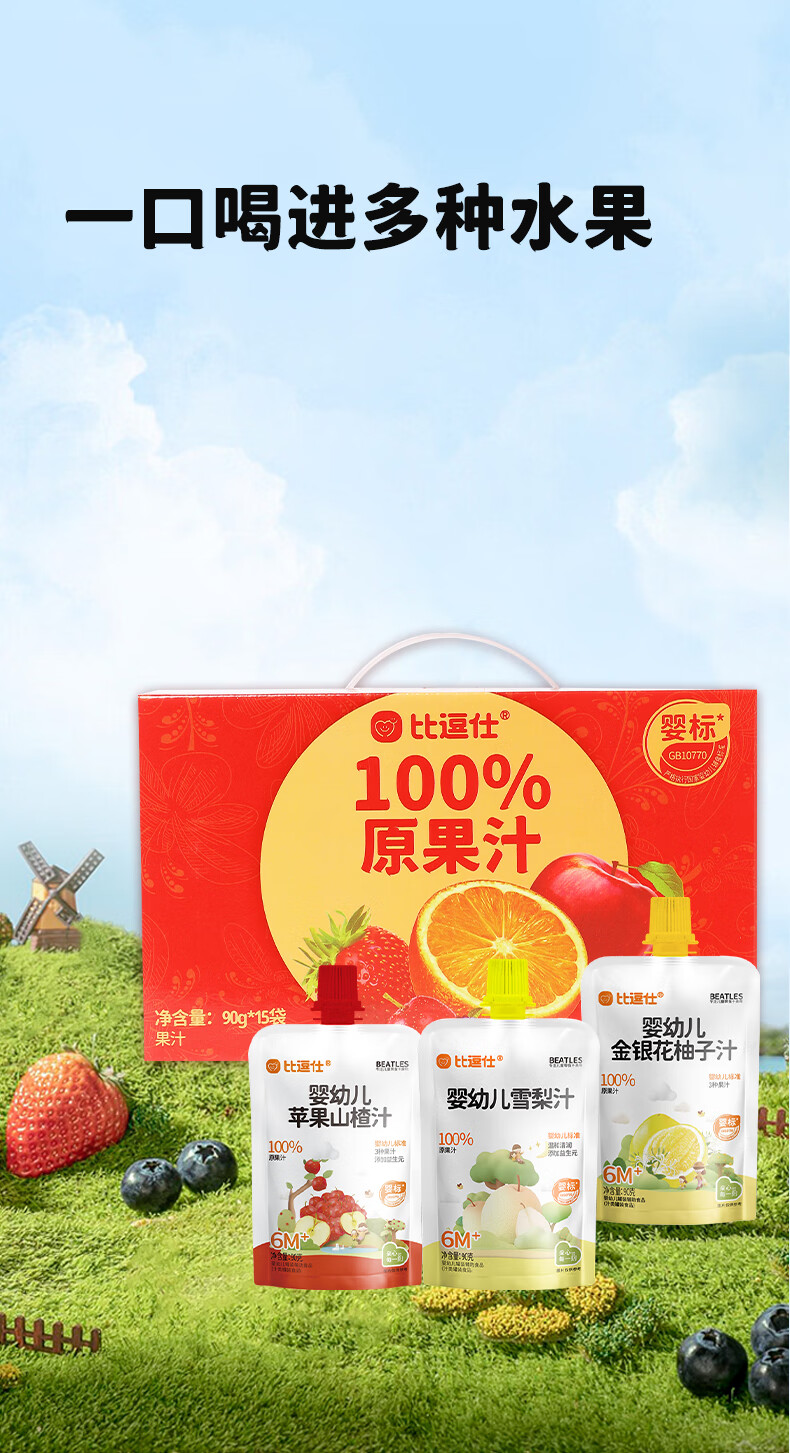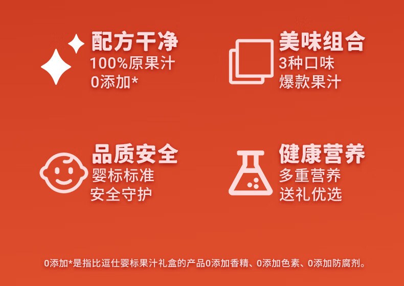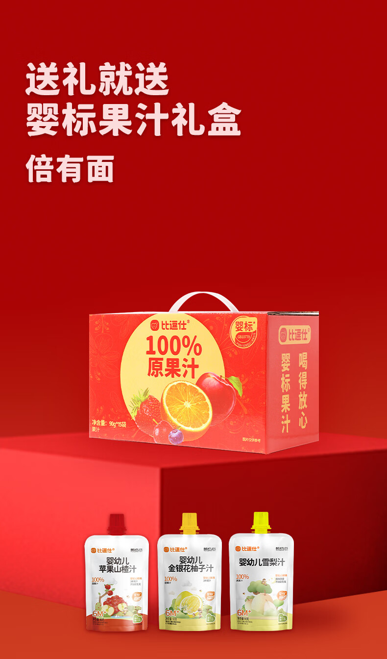 比逗仕婴幼儿苹果山楂汁金银花柚子汁雪梨汁礼盒装儿童100%原果汁