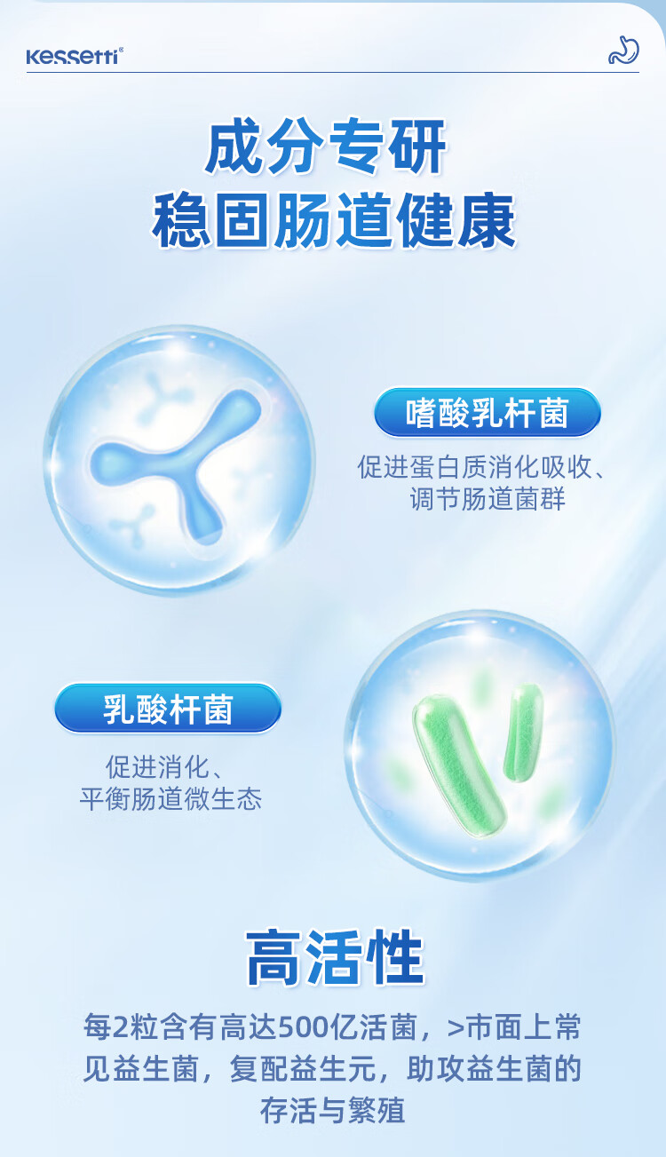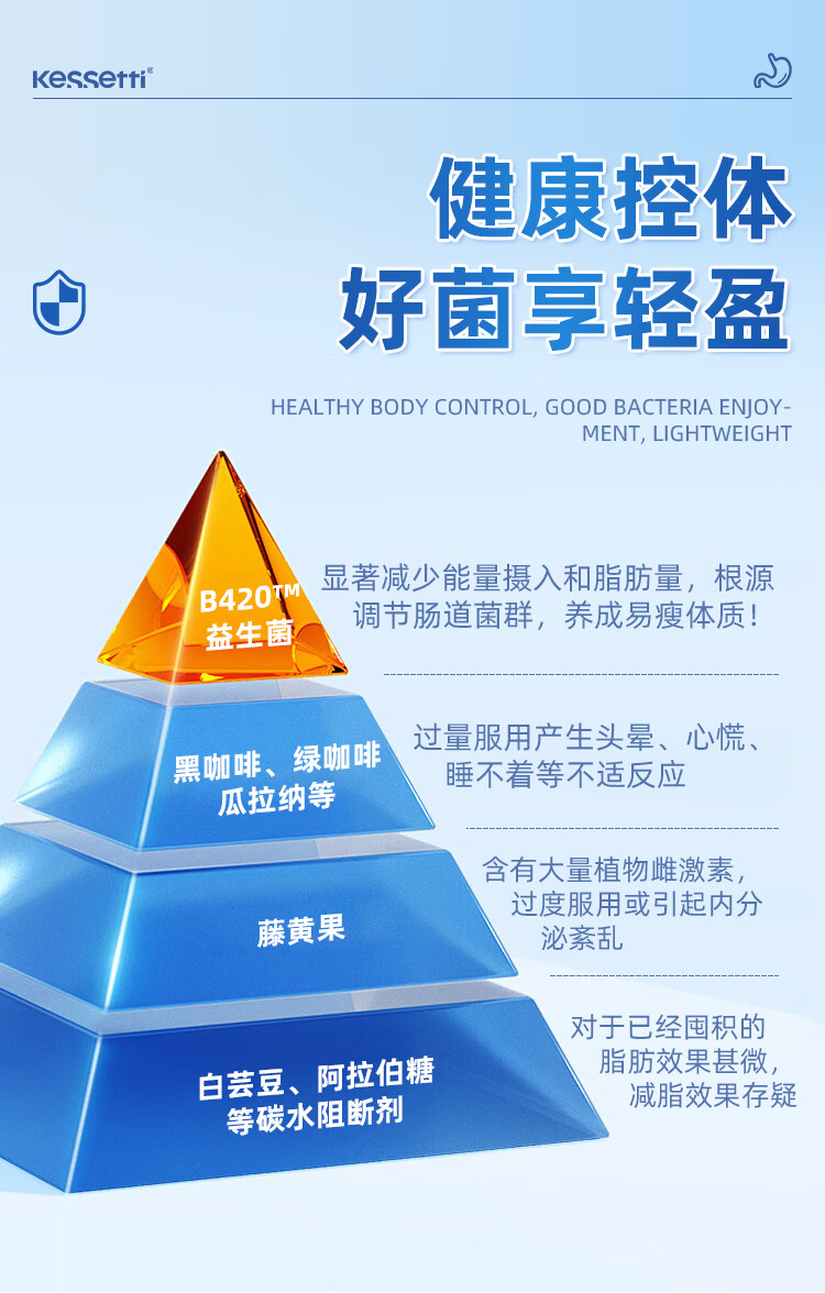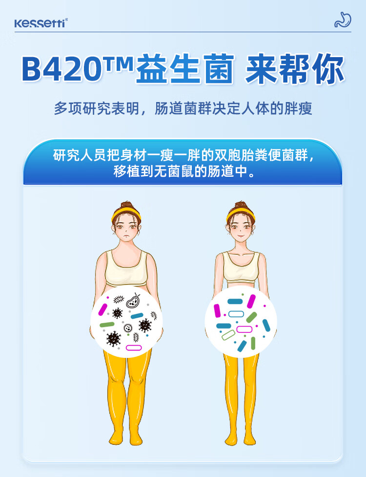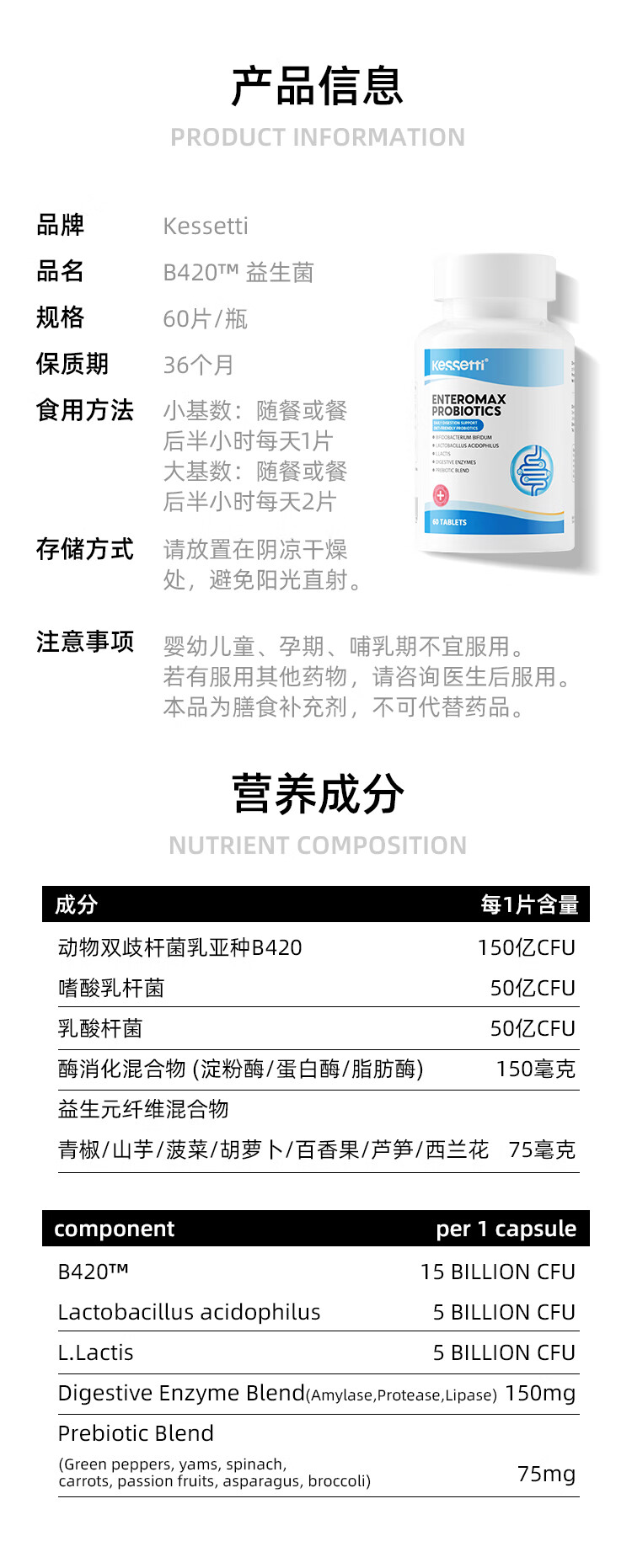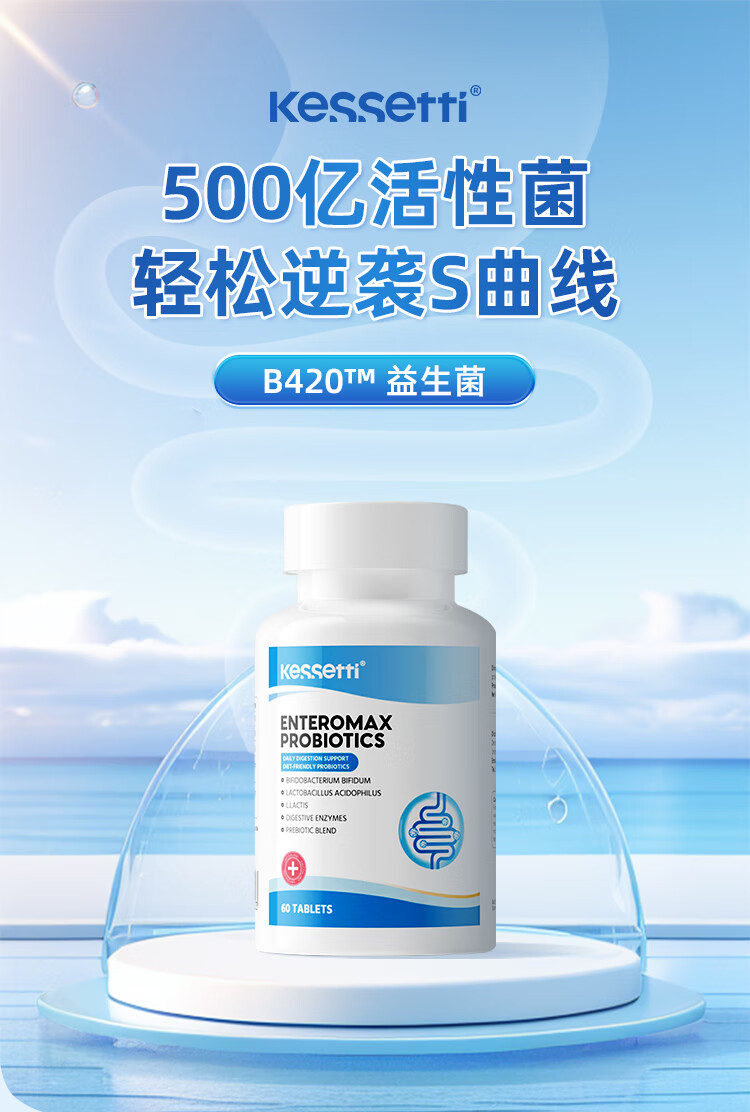 KessettiB420塑身益生菌消化酶瘦子菌 每2粒500亿CFU高活性减肥 60片/瓶 三瓶周期装(日补250亿CFU,每日1.1元/粒)