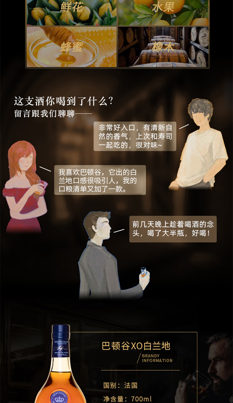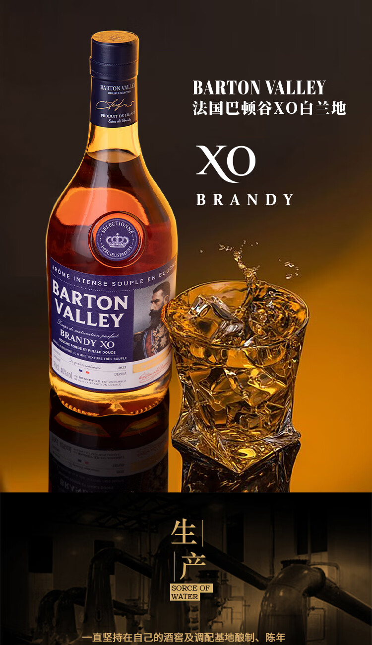 巴顿谷法国 白兰地40度洋酒烈酒餐酒家庭聚会 700ml单支礼盒装送礼佳品 单支装 700mL 1瓶