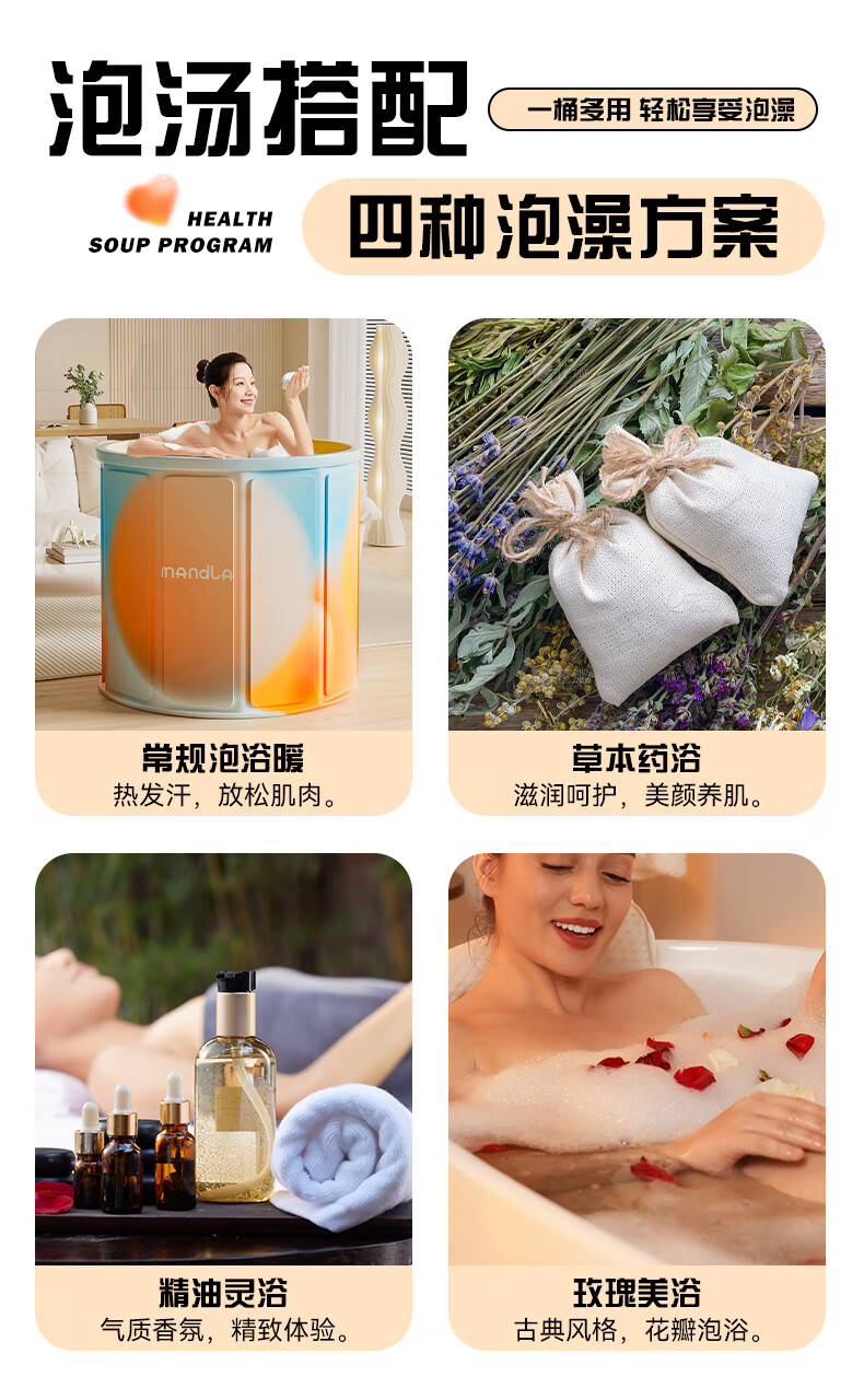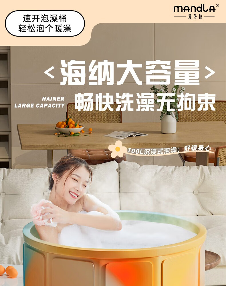 百易特泡澡桶冬季折叠成人专用洗澡盆儿童全身沐浴缸可坐游泳泡浴浴缸 【保温款】排水管+坐垫+浴袋5+收纳袋+保温盖