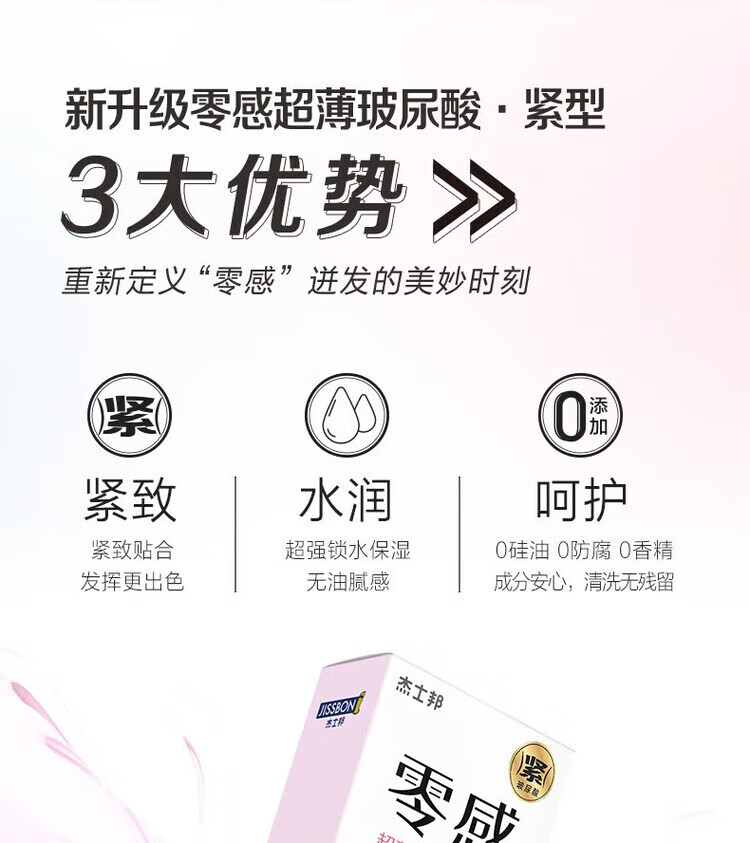 杰士邦(JISSBON)001小号套玻尿酸紧型49mm零感ZERO紧绷型0.01特小号男专用安全套 【小号】一盒12只