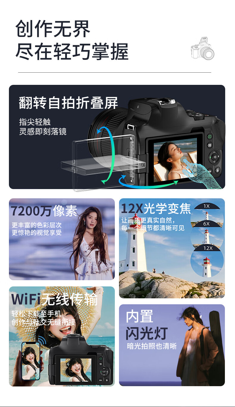 墨雪卿数码微单相机专业级7200W像素入门级单反相机拍照旅游专用12倍光学变焦相机学生摄影相机G700T 套餐四【128G内存卡】 (两块电池)超值套餐