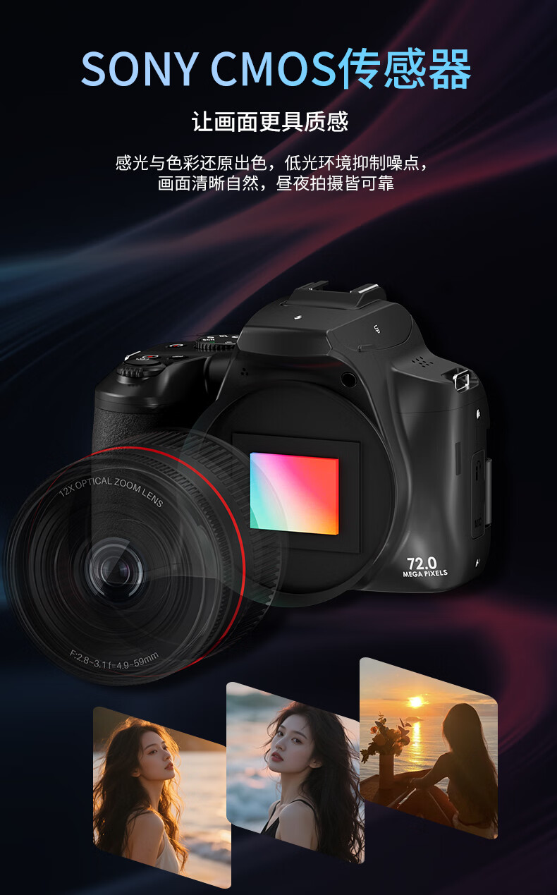 松典【1/2英寸传感器+索尼旗舰双芯+触摸屏】微单数码相机学生入门级微单照相机相机拍照旅游专用相机 【1/2寸传感+索尼旗舰双芯+3.2寸触摸屏】黑色 256G内存