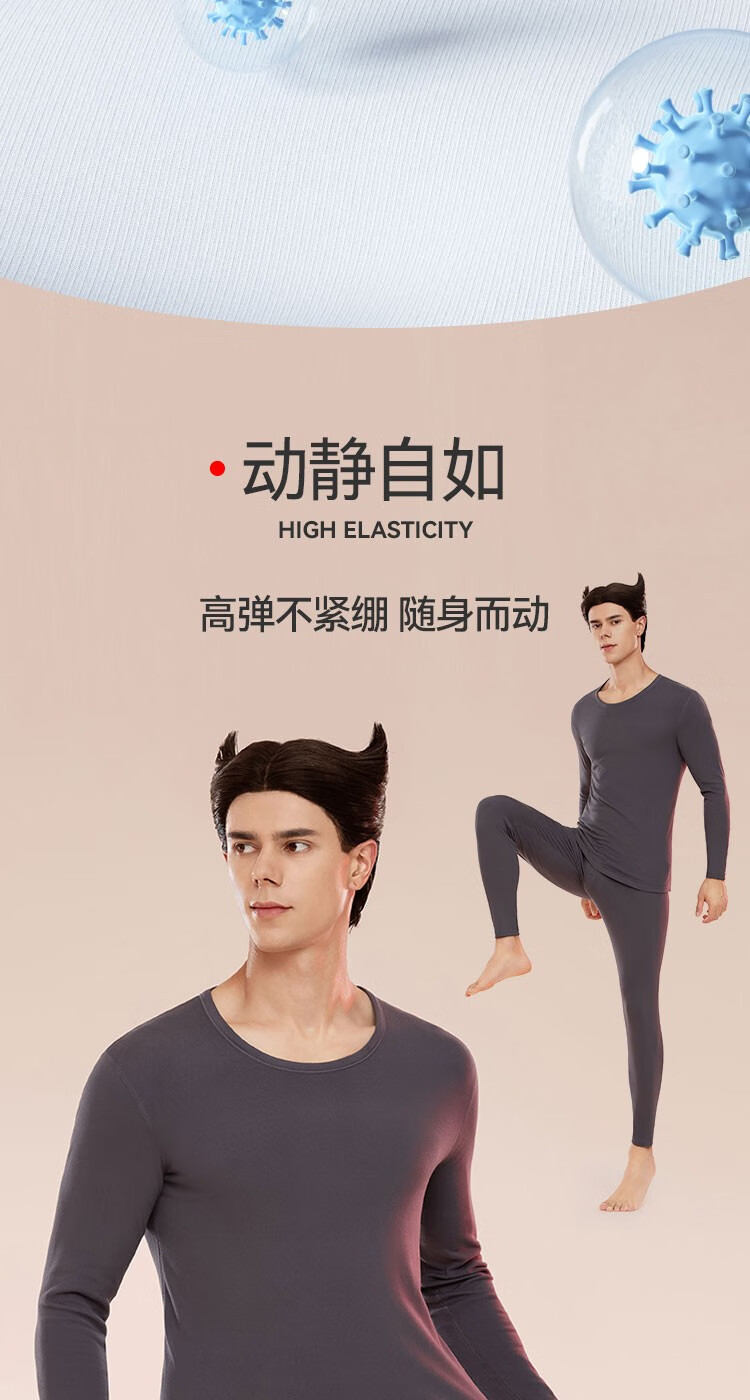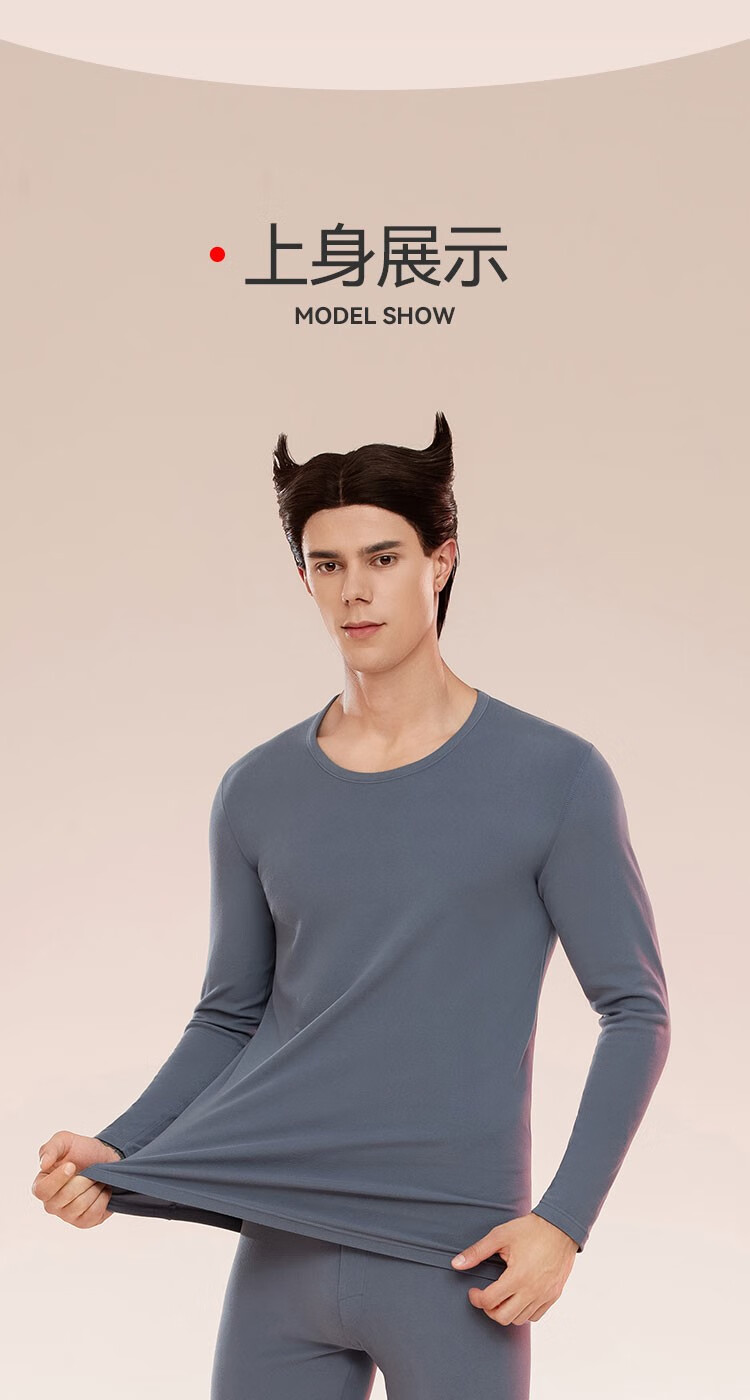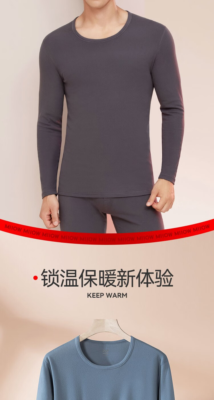 猫人秋衣秋裤男薄款抗菌亲肤双面磨绒保暖内衣打底套装 男款高级灰 3XL