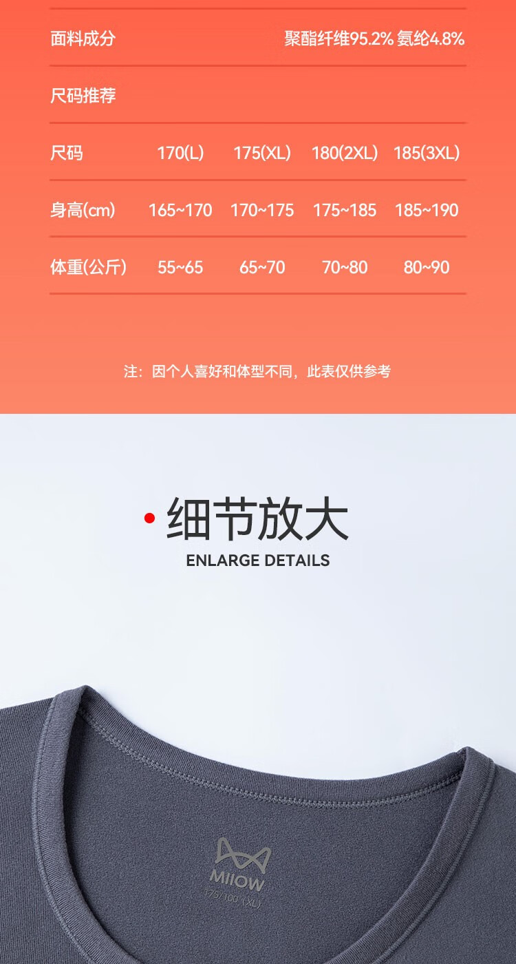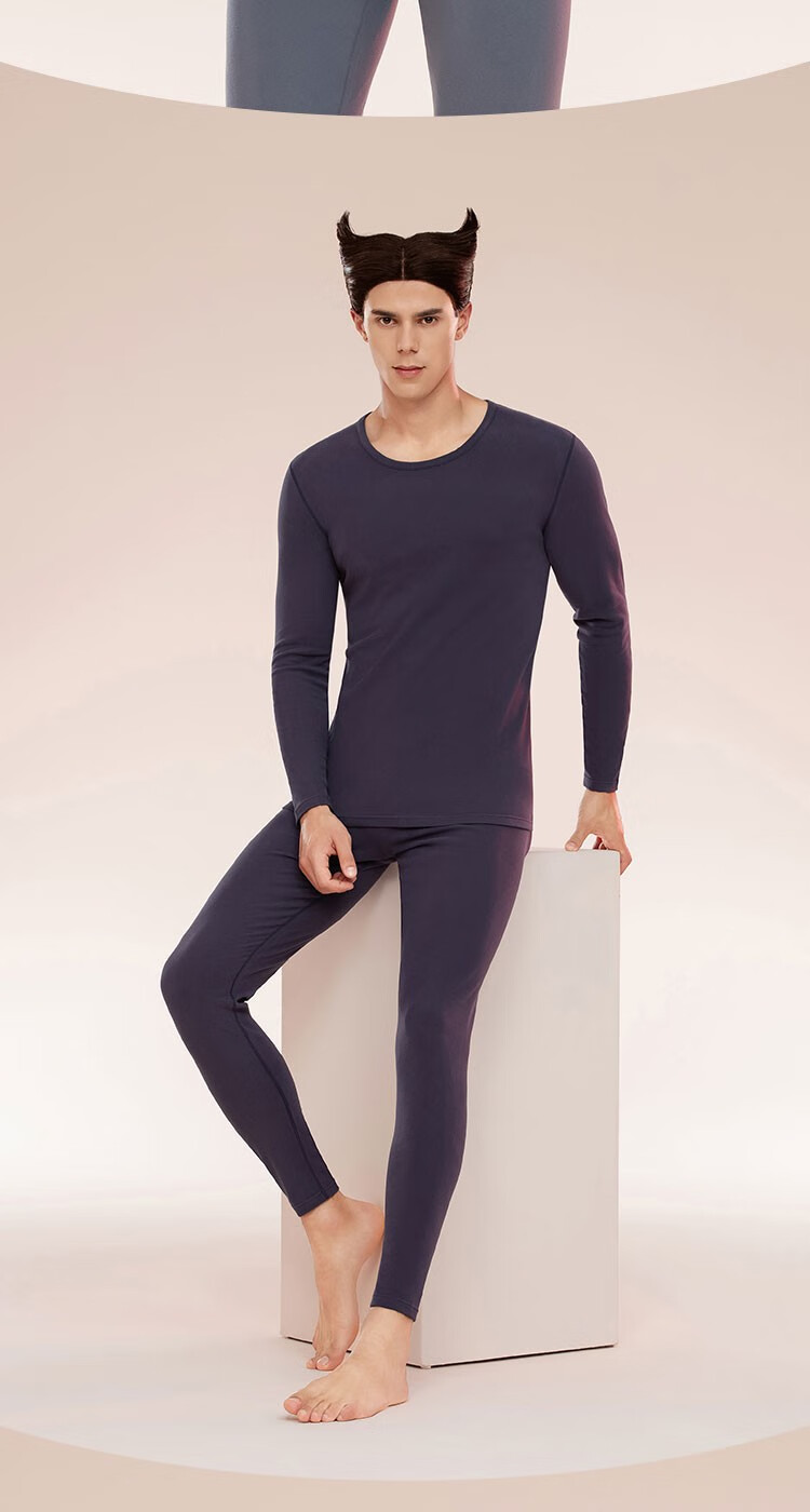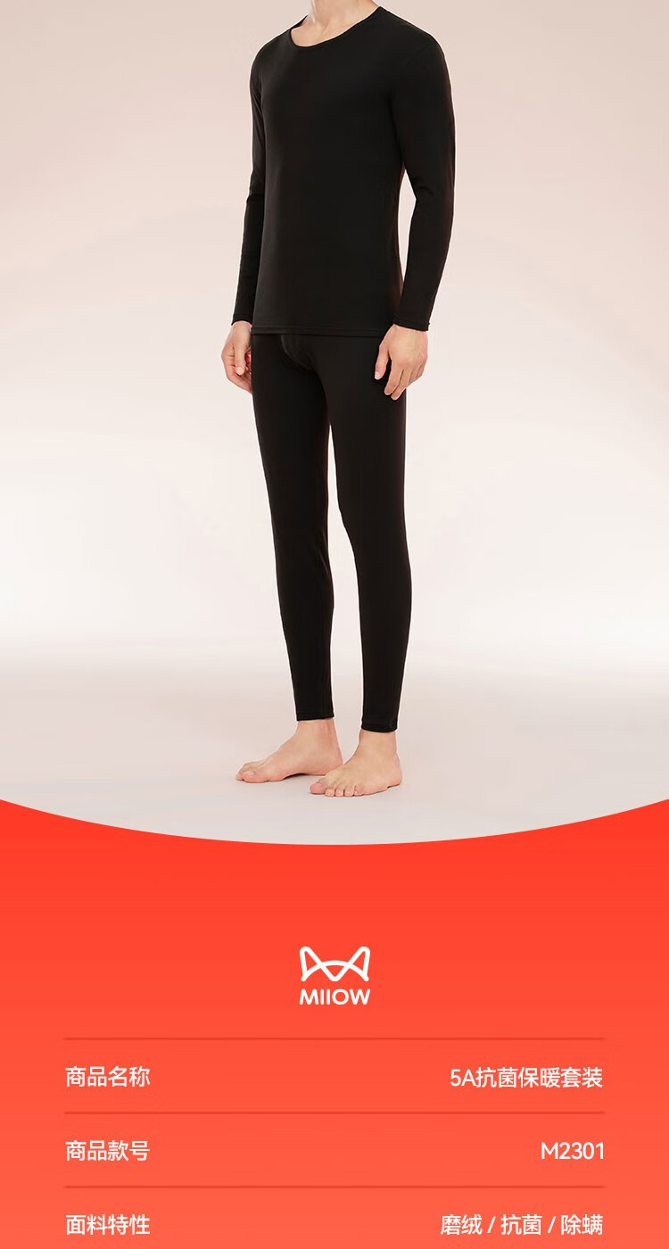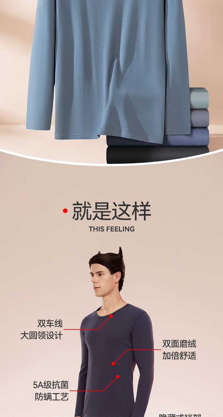 猫人秋衣秋裤男薄款抗菌亲肤双面磨绒保暖内衣打底套装 男款高级灰 3XL